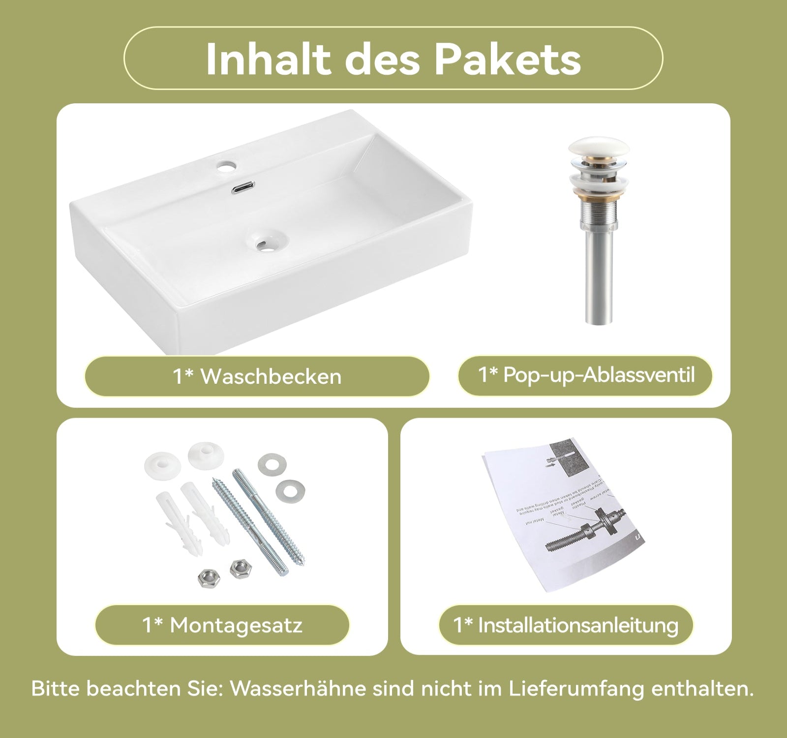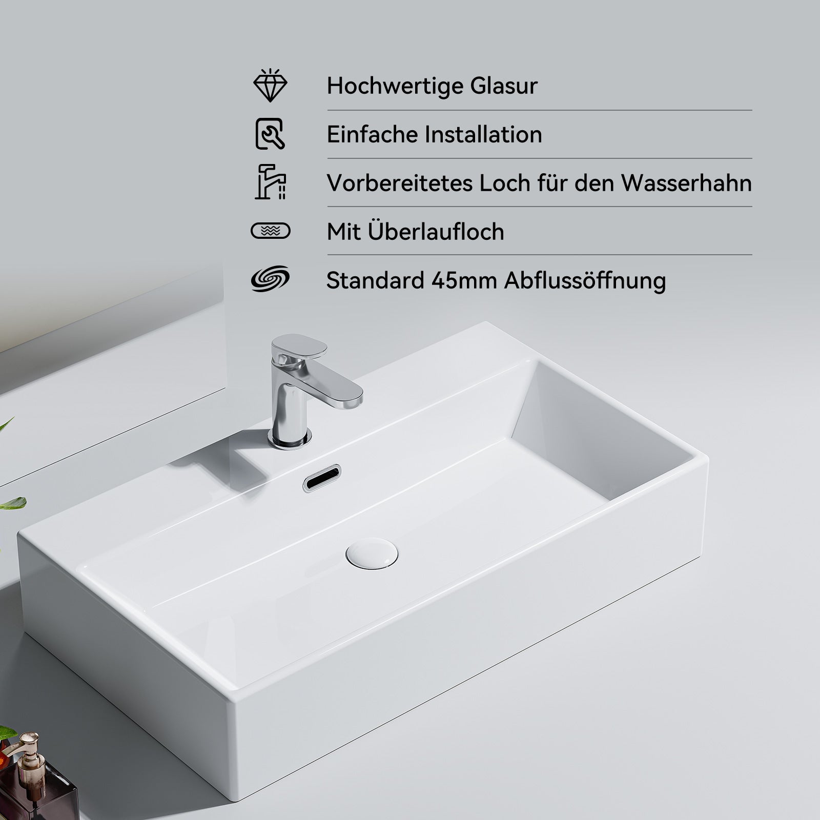 HOROW UV7542W Waschbecken 75 x 42 x 14 cm