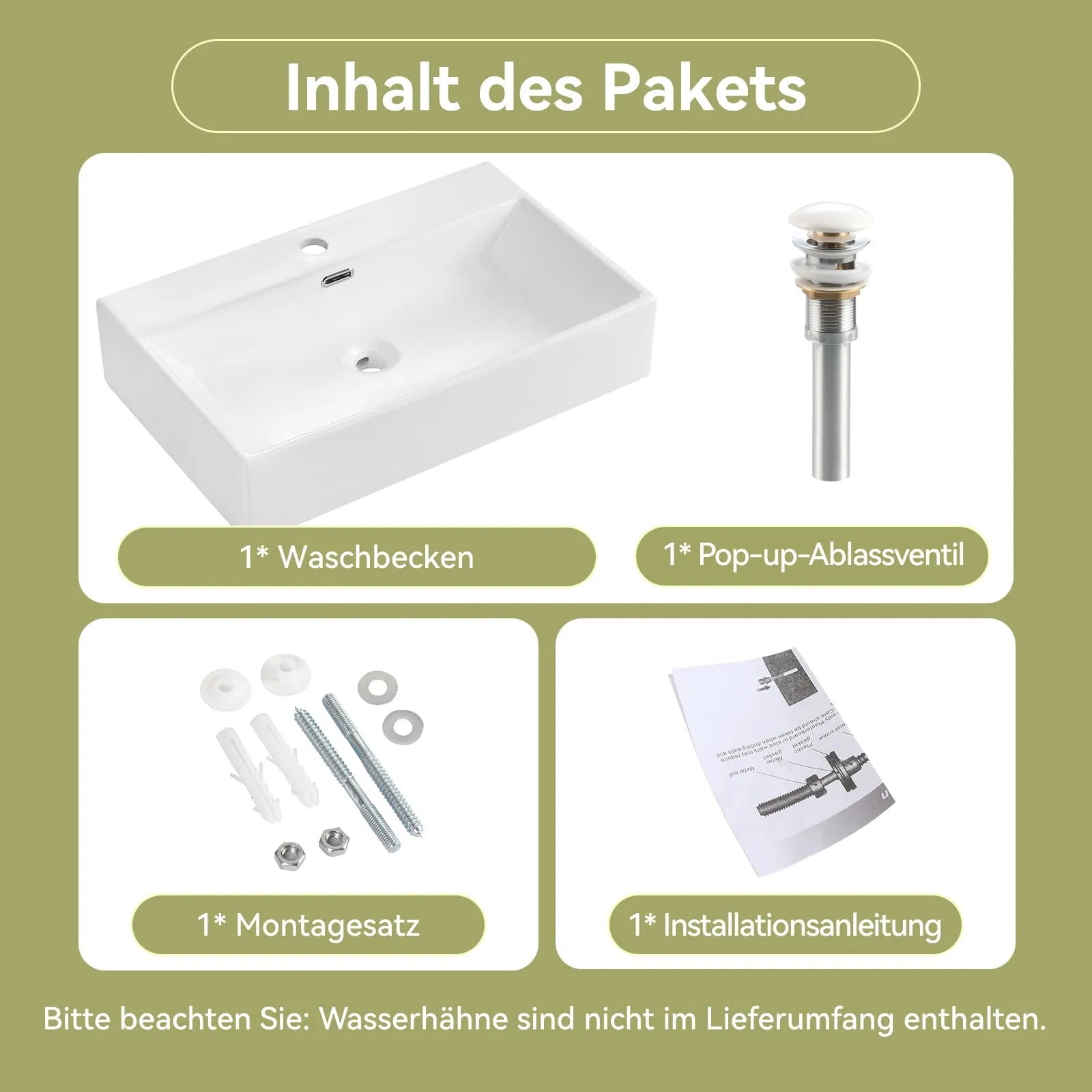 Wahlweise Wand- oder Aufsatzmontage möglich. Wandbefestigung mit Schrauben im Lieferumfang enthalten.