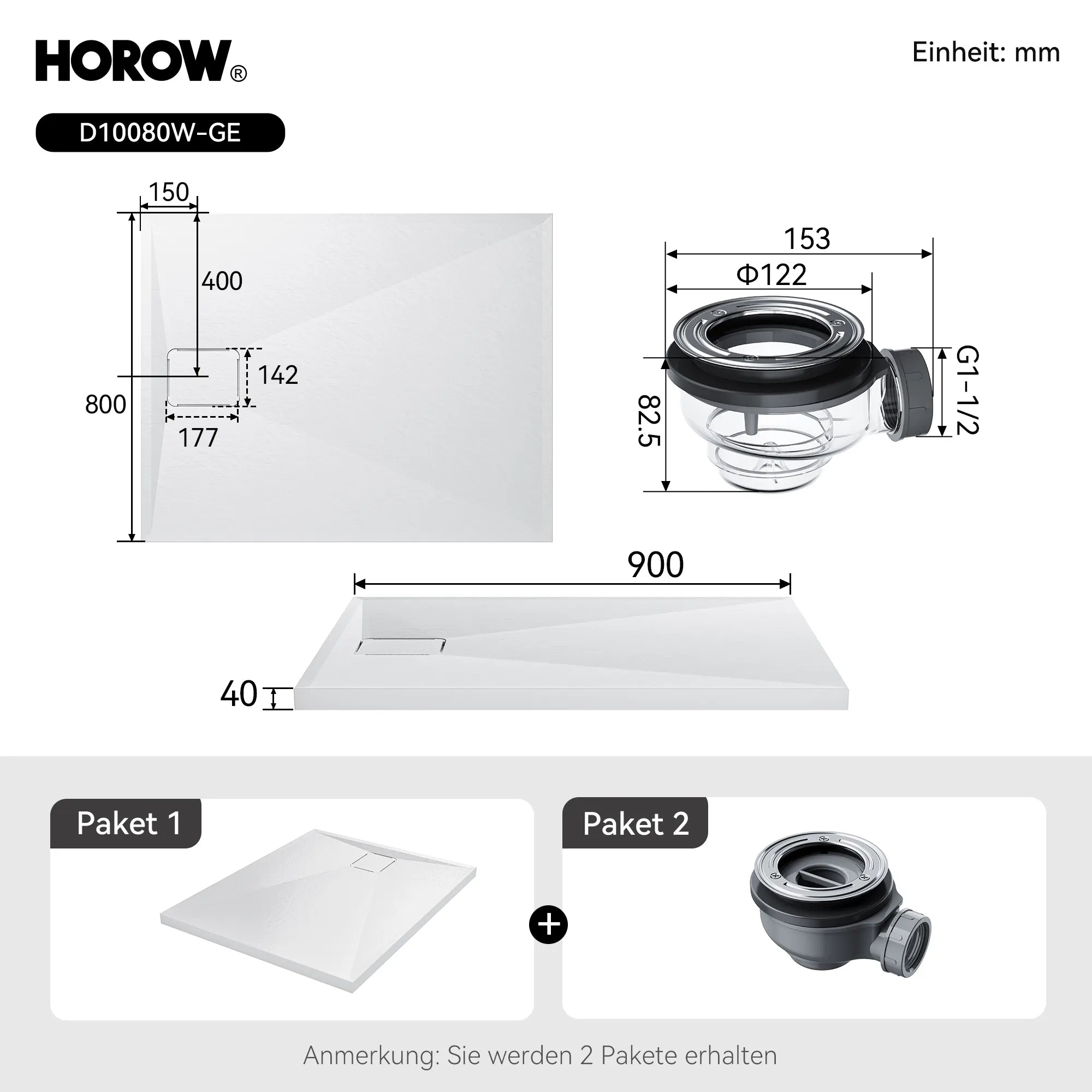 HOROW D9080W – Modernes Duschtassen-Design für jedes Badezimmer