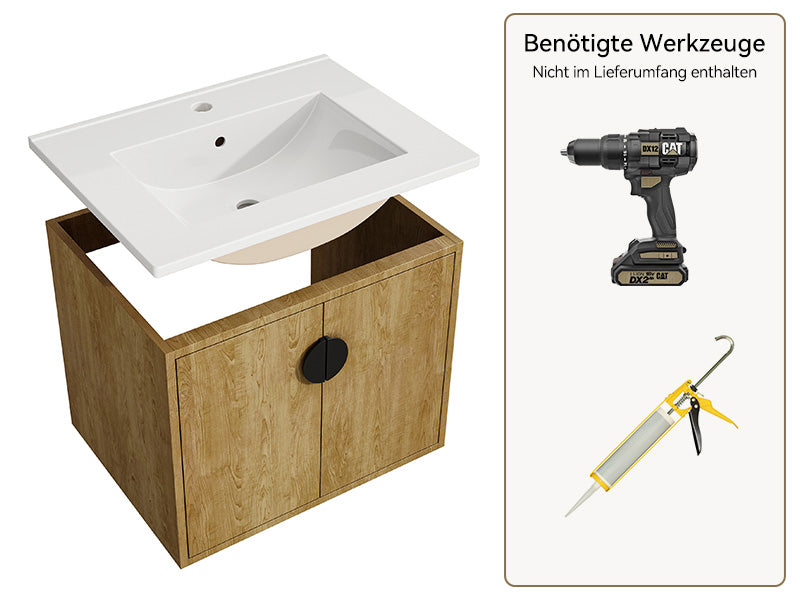 HOROW Y60-H2 Waschbecken und Unterschrank 60cm Badmöbel Set