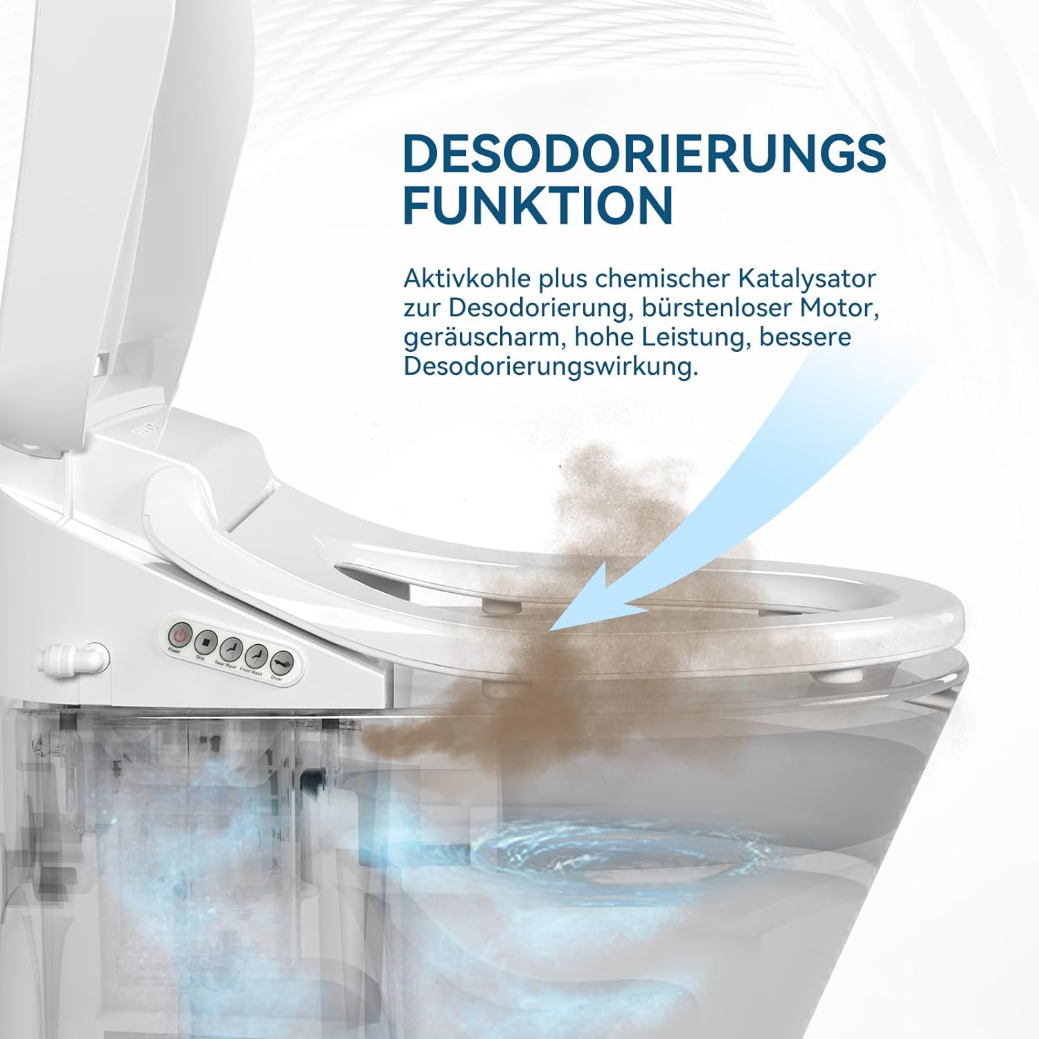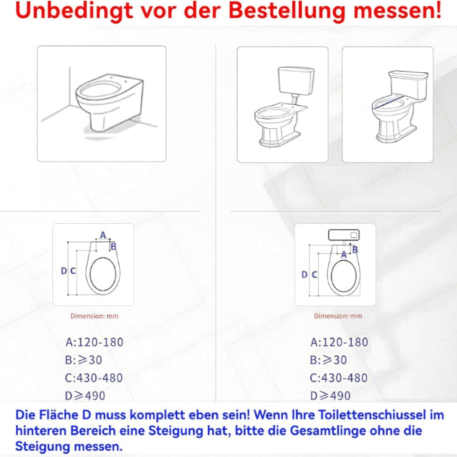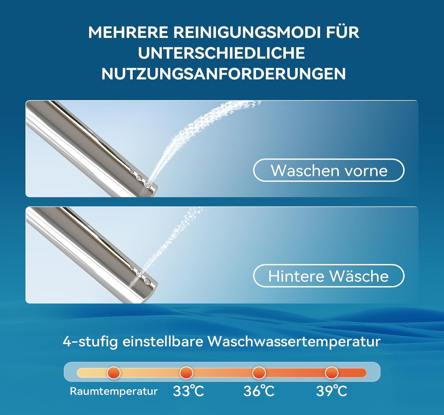 Smart Bidet-Sitz mit antibakterieller Edelstahl-Düse und selbstreinigender Funktion. Reinigung vorne und hinten per Fernbedienung einstellbar.
