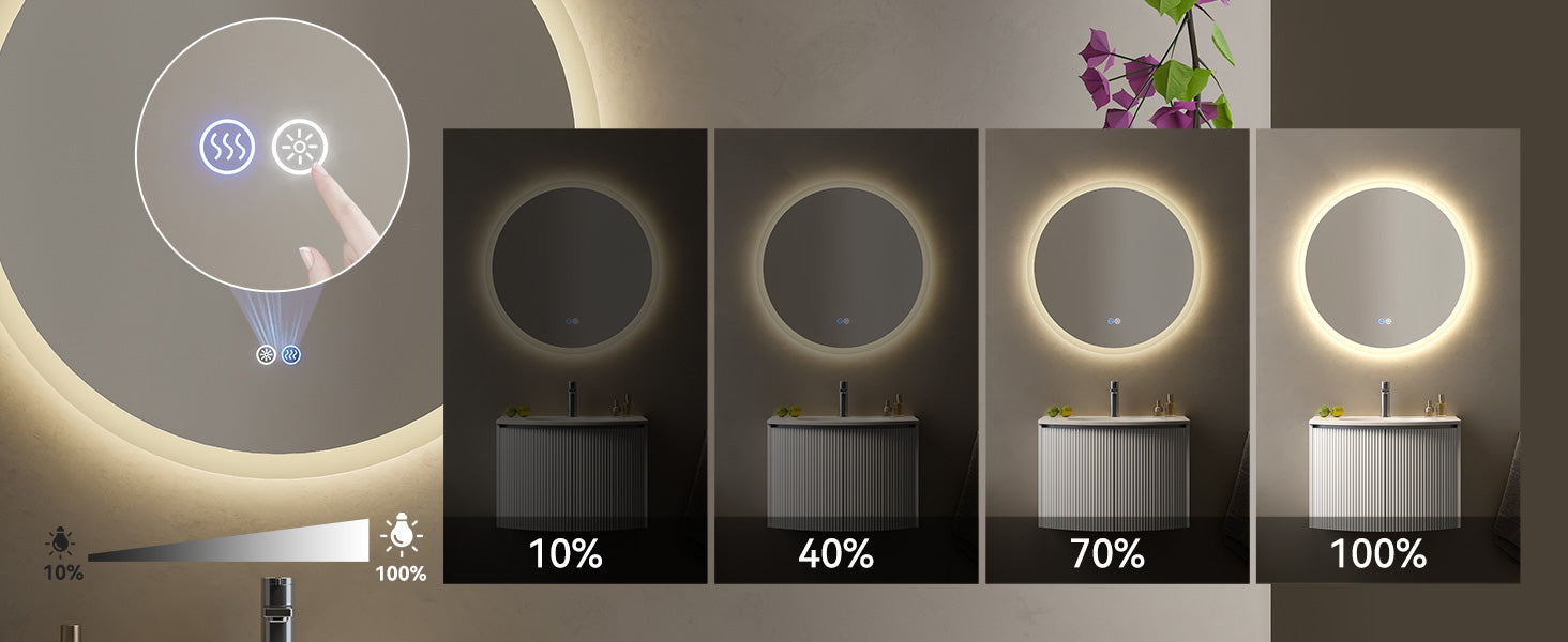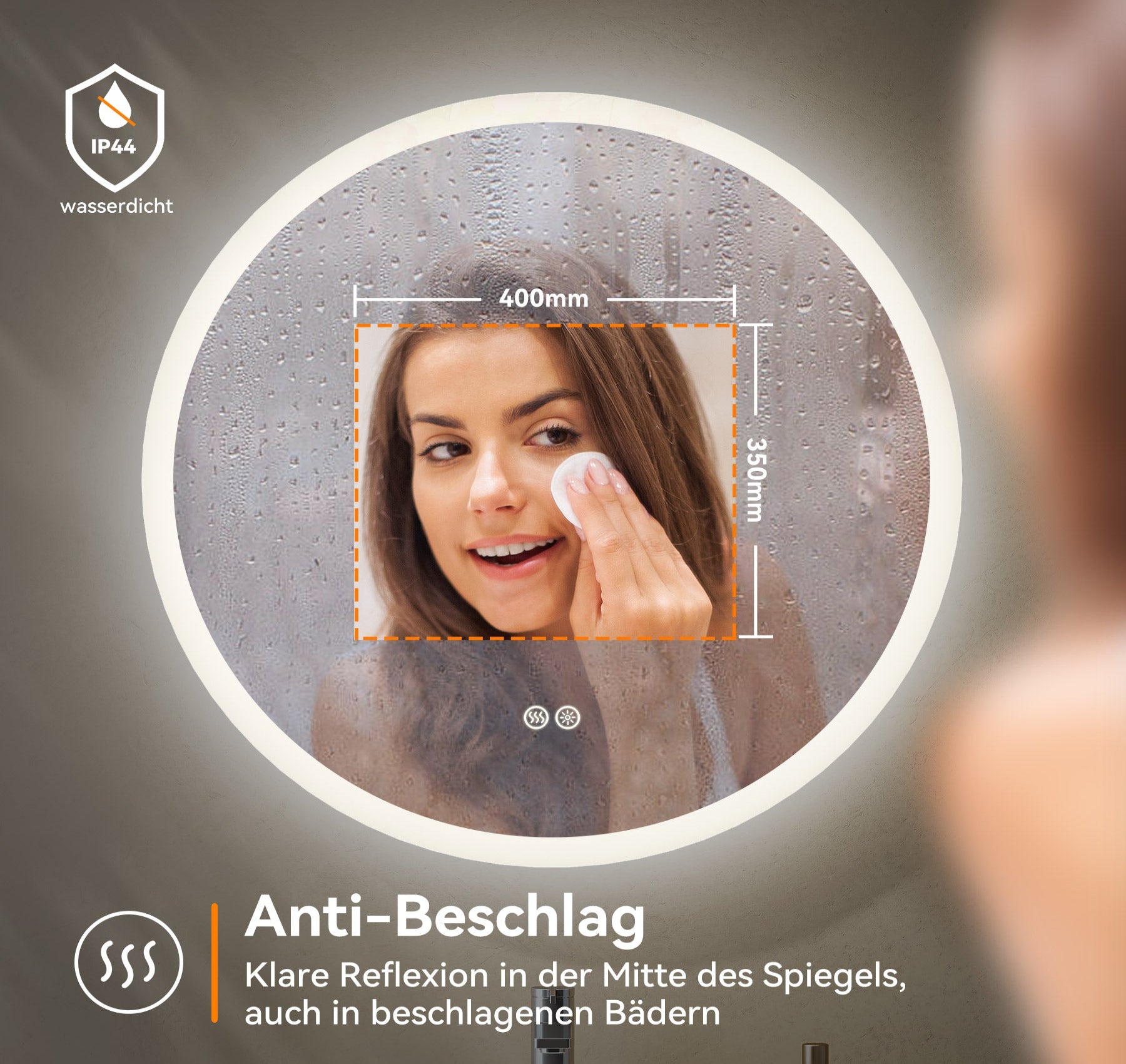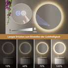 Hochwertiger, bleifreier Spiegel mit präzisem Kantenschliff für bessere Korrosionsbeständigkeit und Reflexion. - Dimmbar & 3-Farb-Beleuchtung: