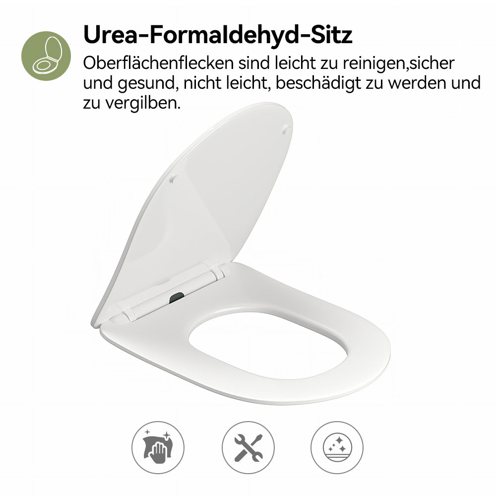 Der Toilettensitz mit Absenkautomatik sorgt für leises Schließen. Aus UF-Material – langlebig, kratzfest und farbbeständig. -