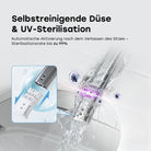 Die Edelstahl-Düse mit antibakterieller Beschichtung reinigt sich automatisch und kann bei Bedarf leicht abgenommen werden.
