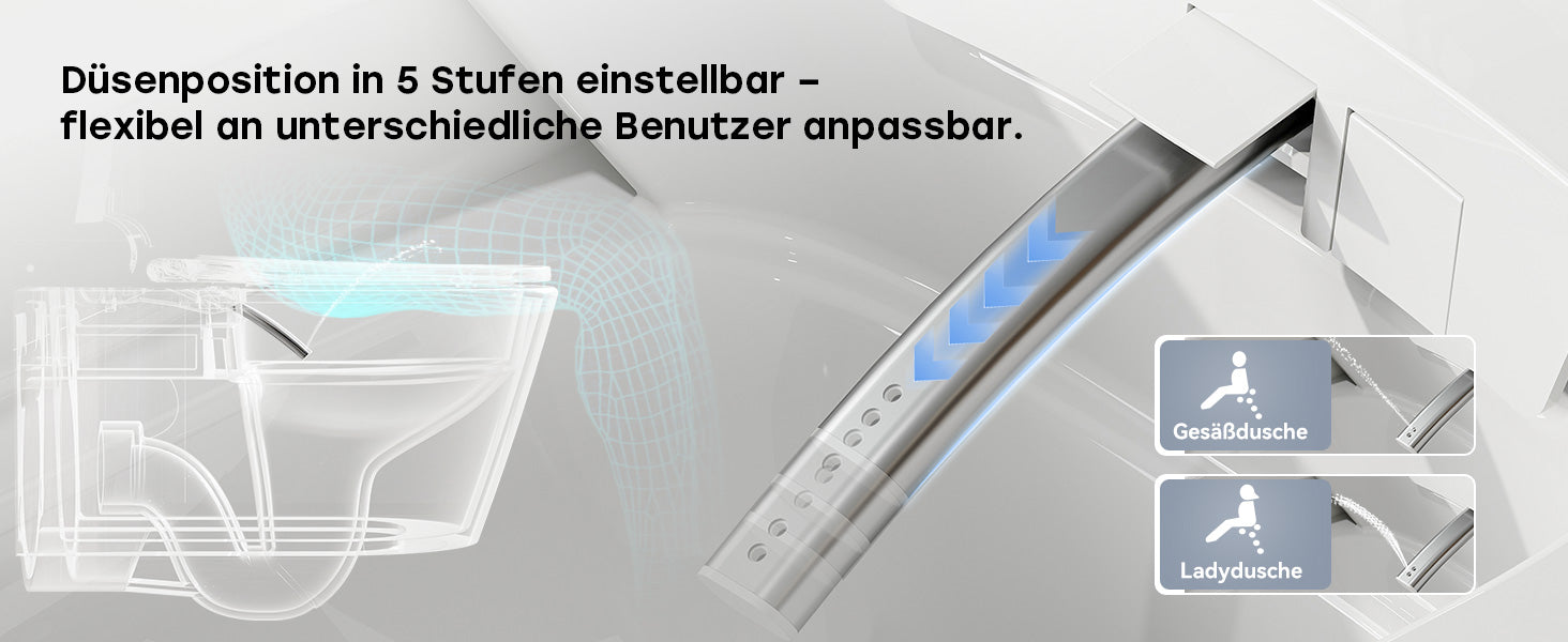 Mit Hinter-, Damen- und Kinderreinigung sowie Massagespülung sorgt der G06-GE für ein rundum sauberes Gefühl – sanft, hygienisch und hautfreundlich.