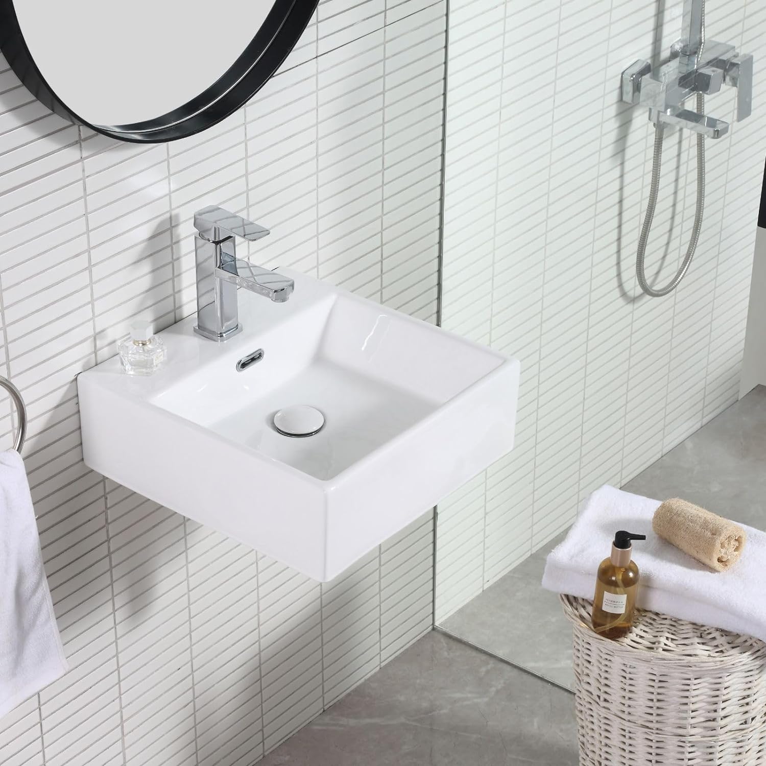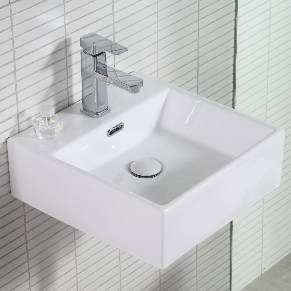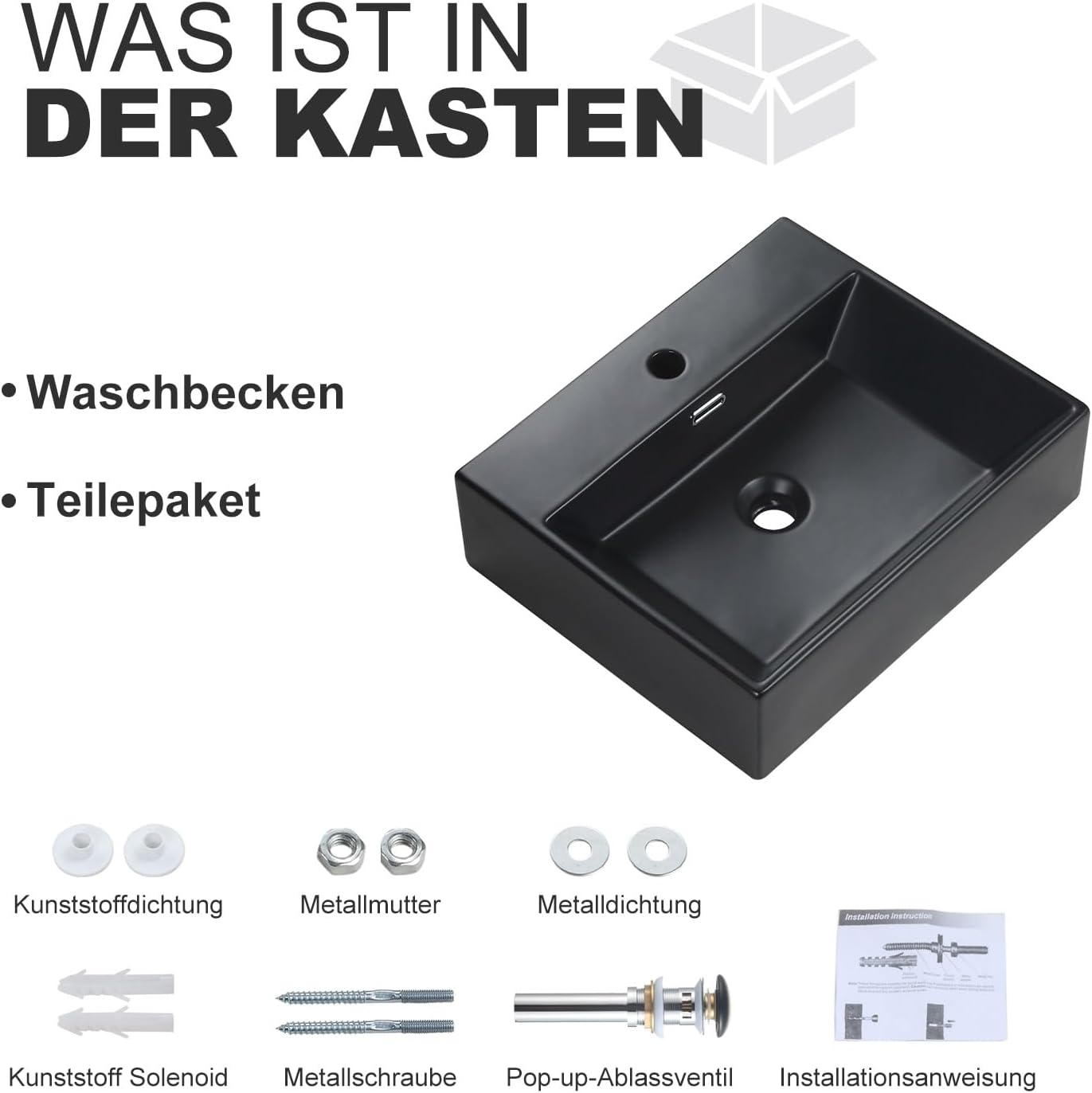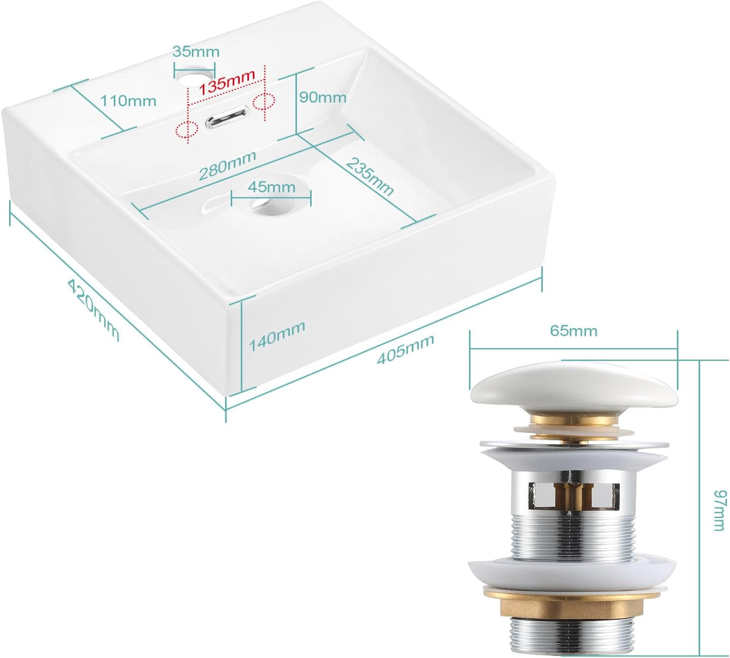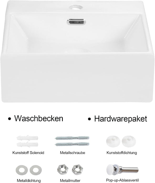 HOROW UV4042W Waschbecken aus Keramik – Eckig, 40,5 x 42 x 14 cm