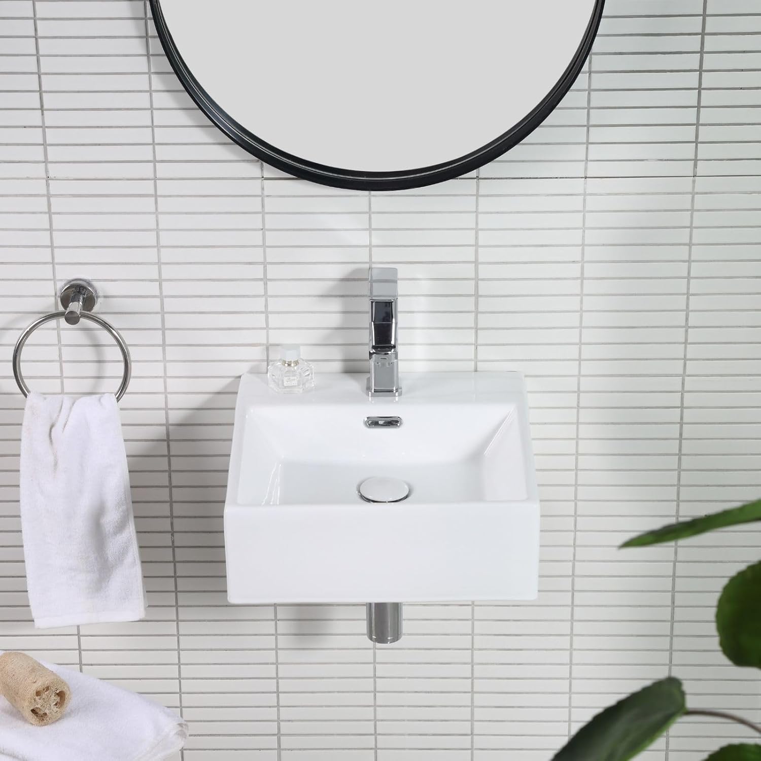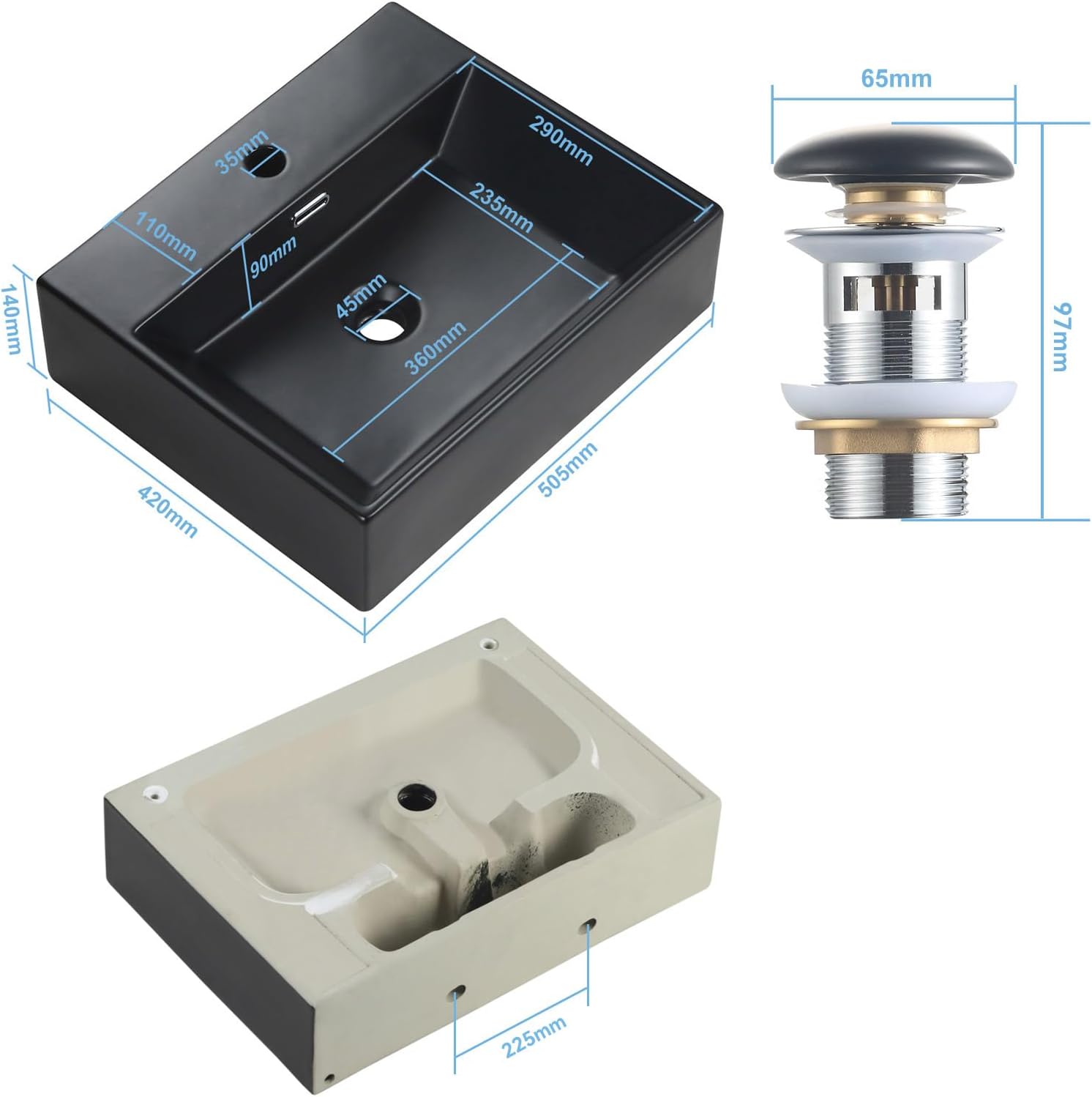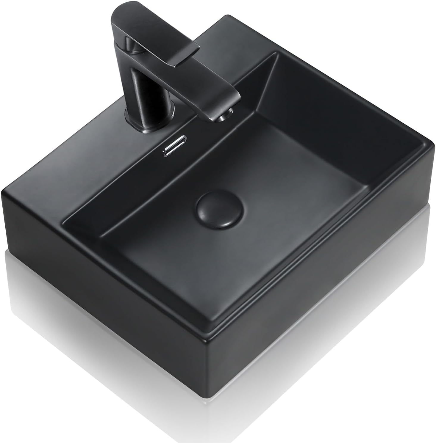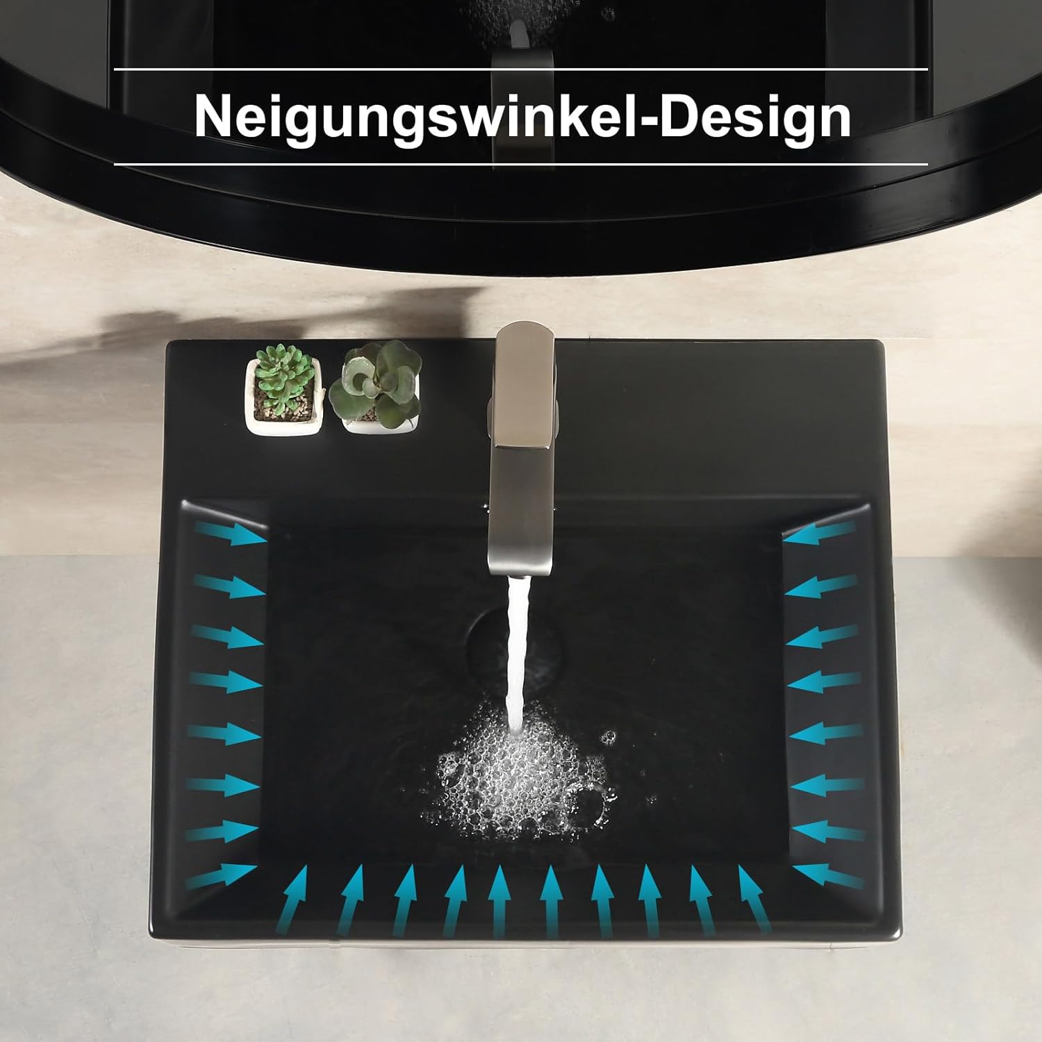 HOROW UV4042W Waschbecken aus Keramik – Eckig, 40,5 x 42 x 14 cm