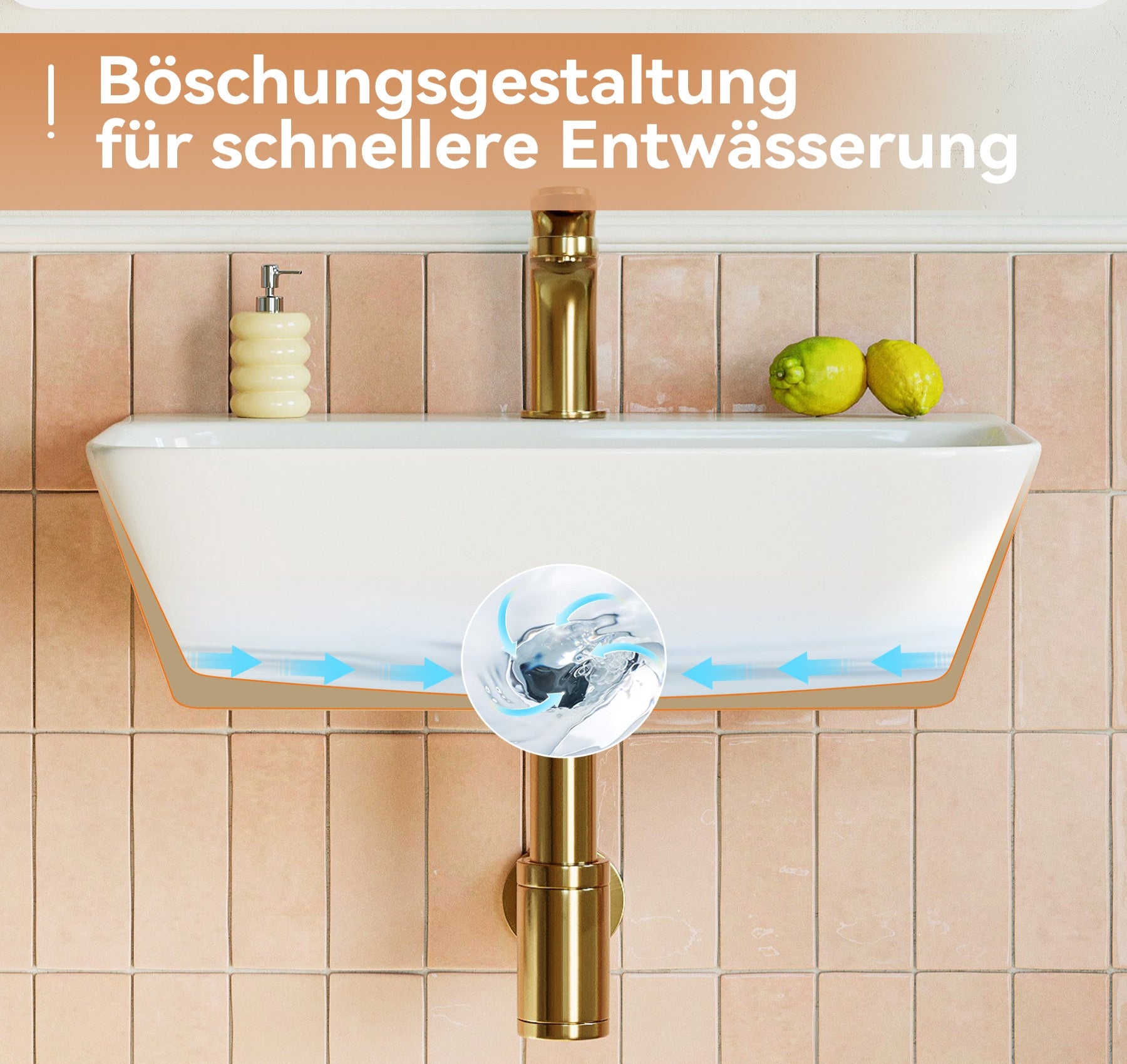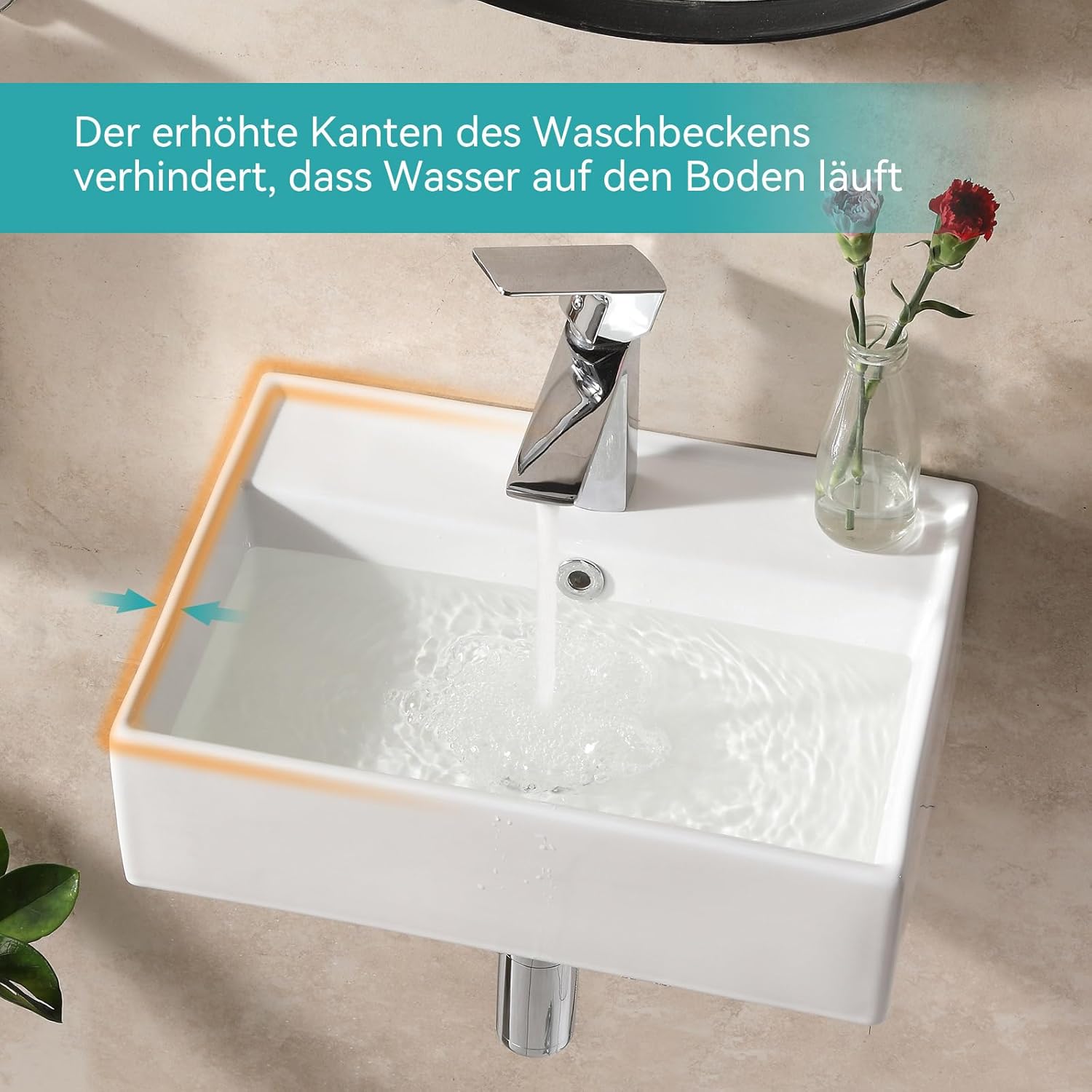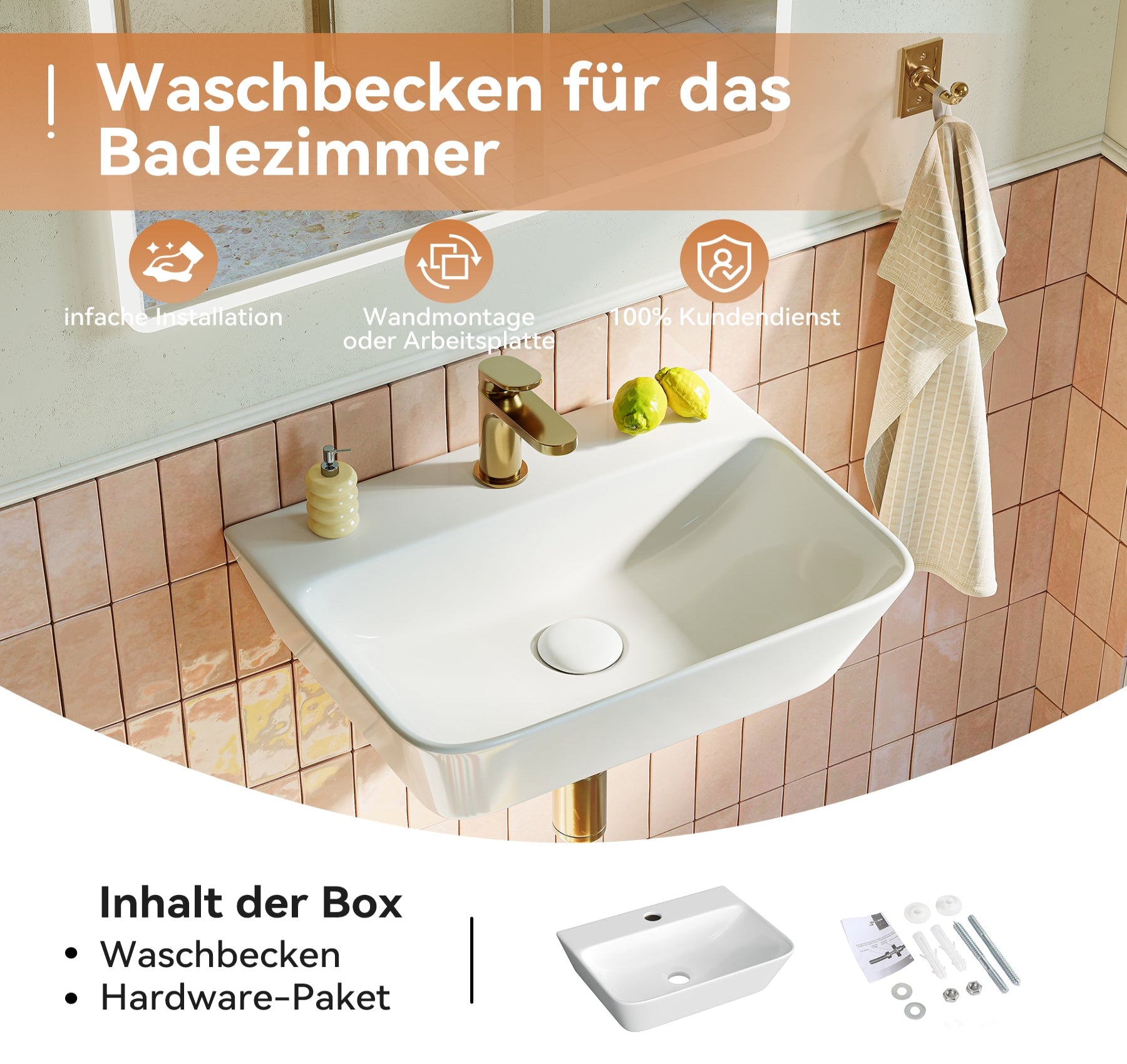HOROW F11A-S4522L Waschbecken mit Hahnloch & Überlauf, 45 cm Weiße Keramik