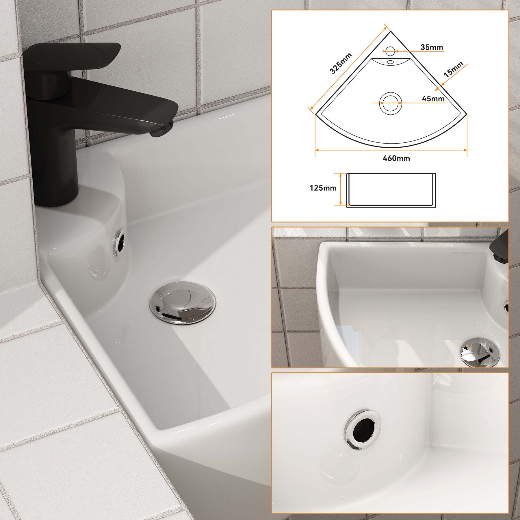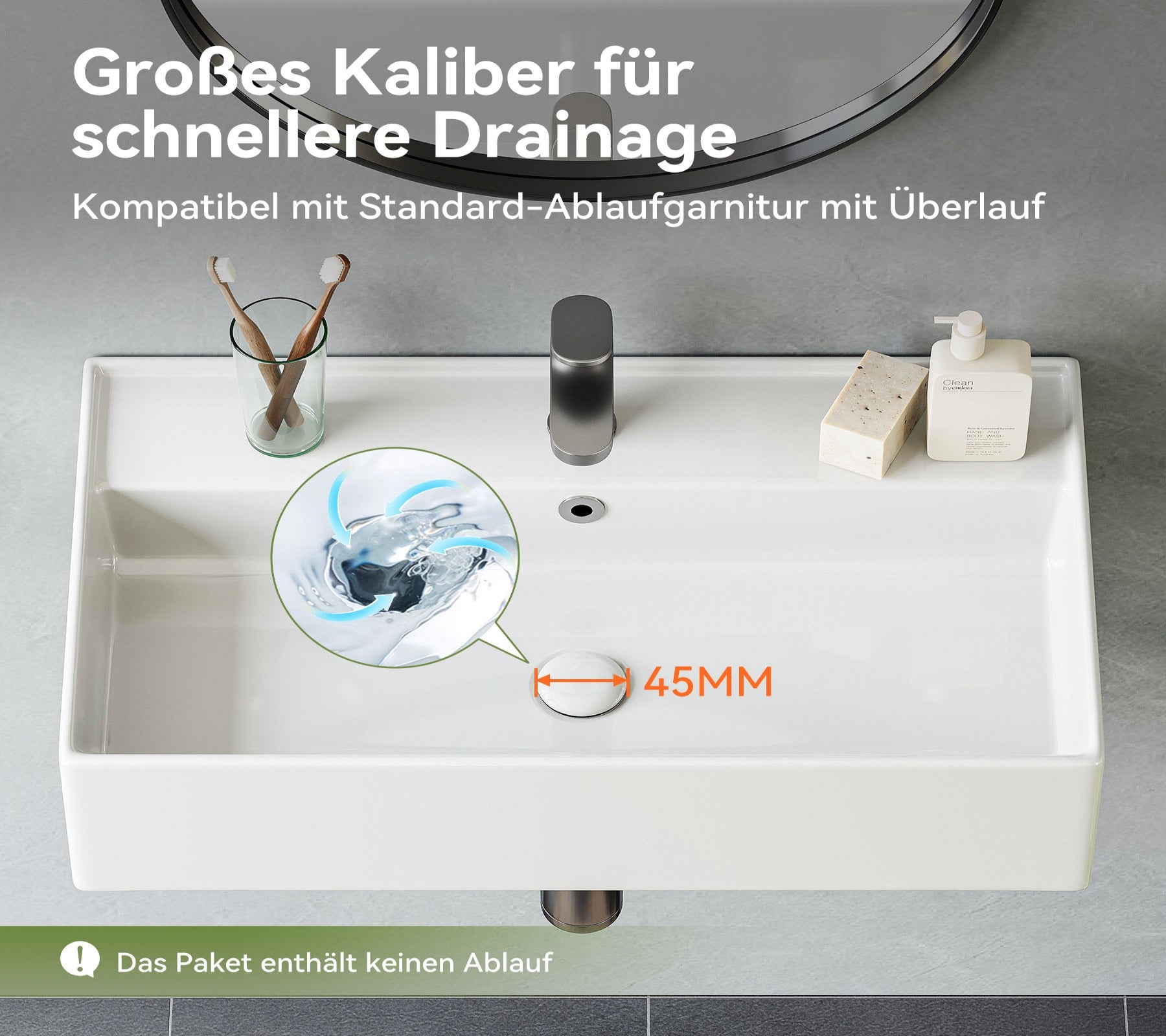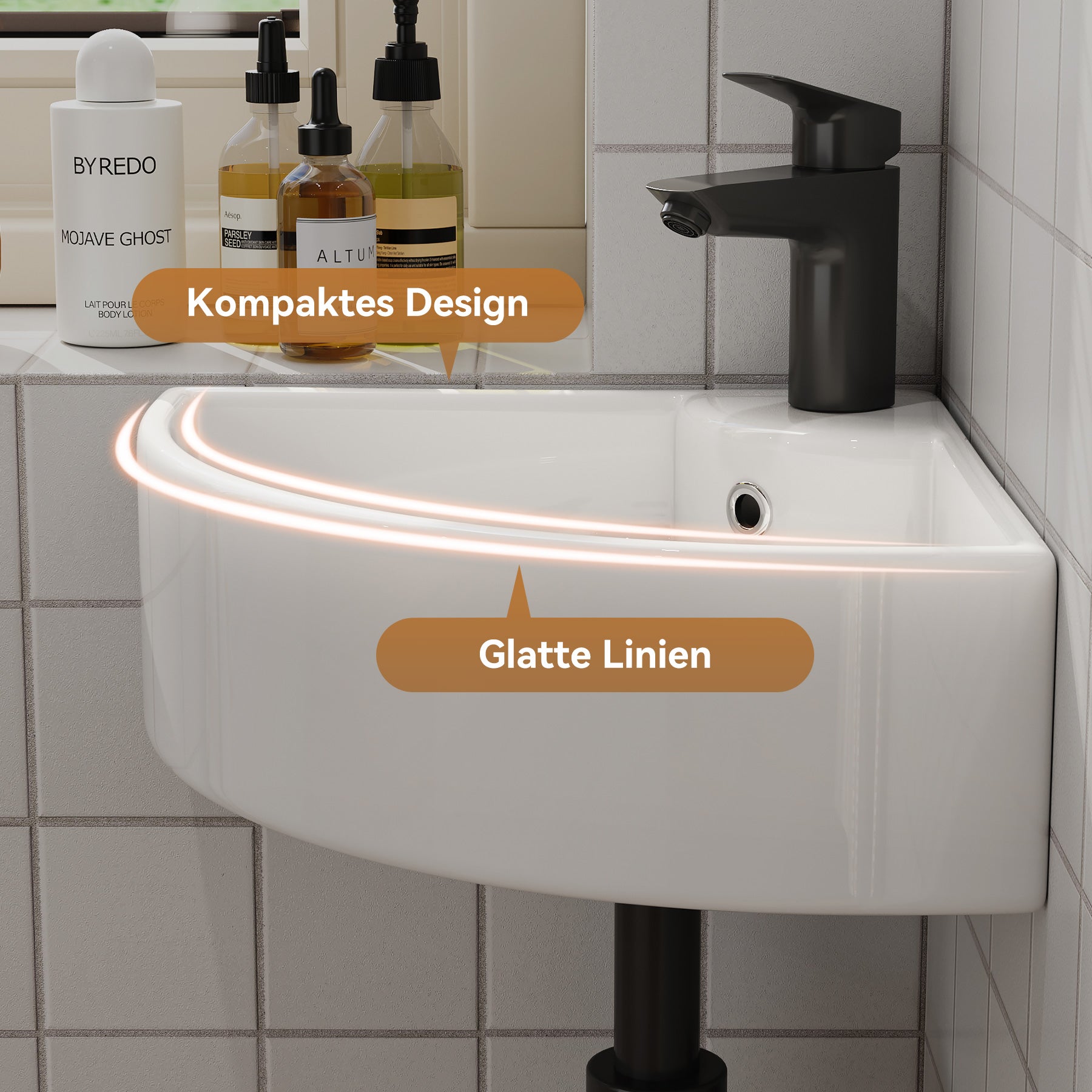 HOROW F11A-S4522L Waschbecken mit Hahnloch & Überlauf, 45 cm Weiße Keramik
