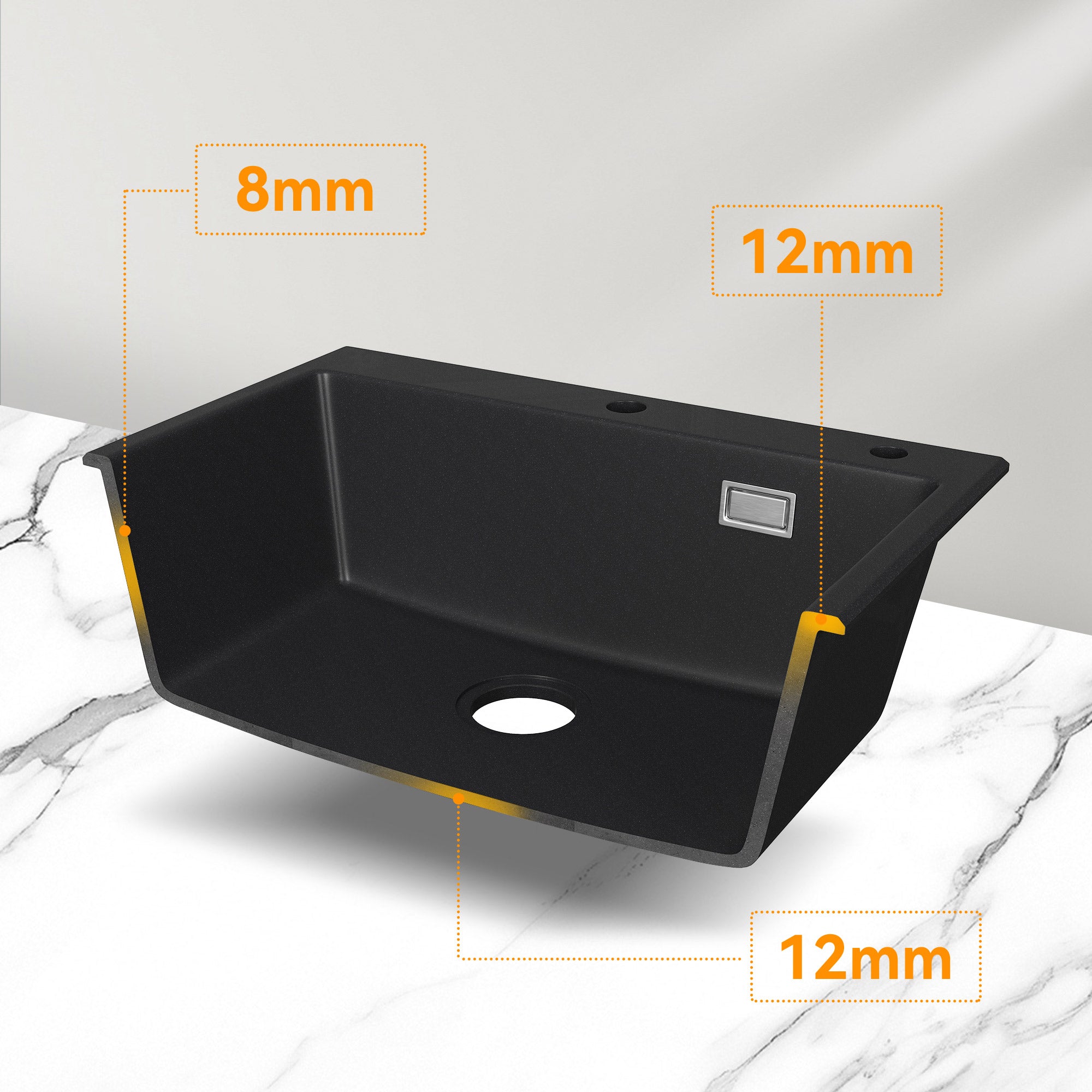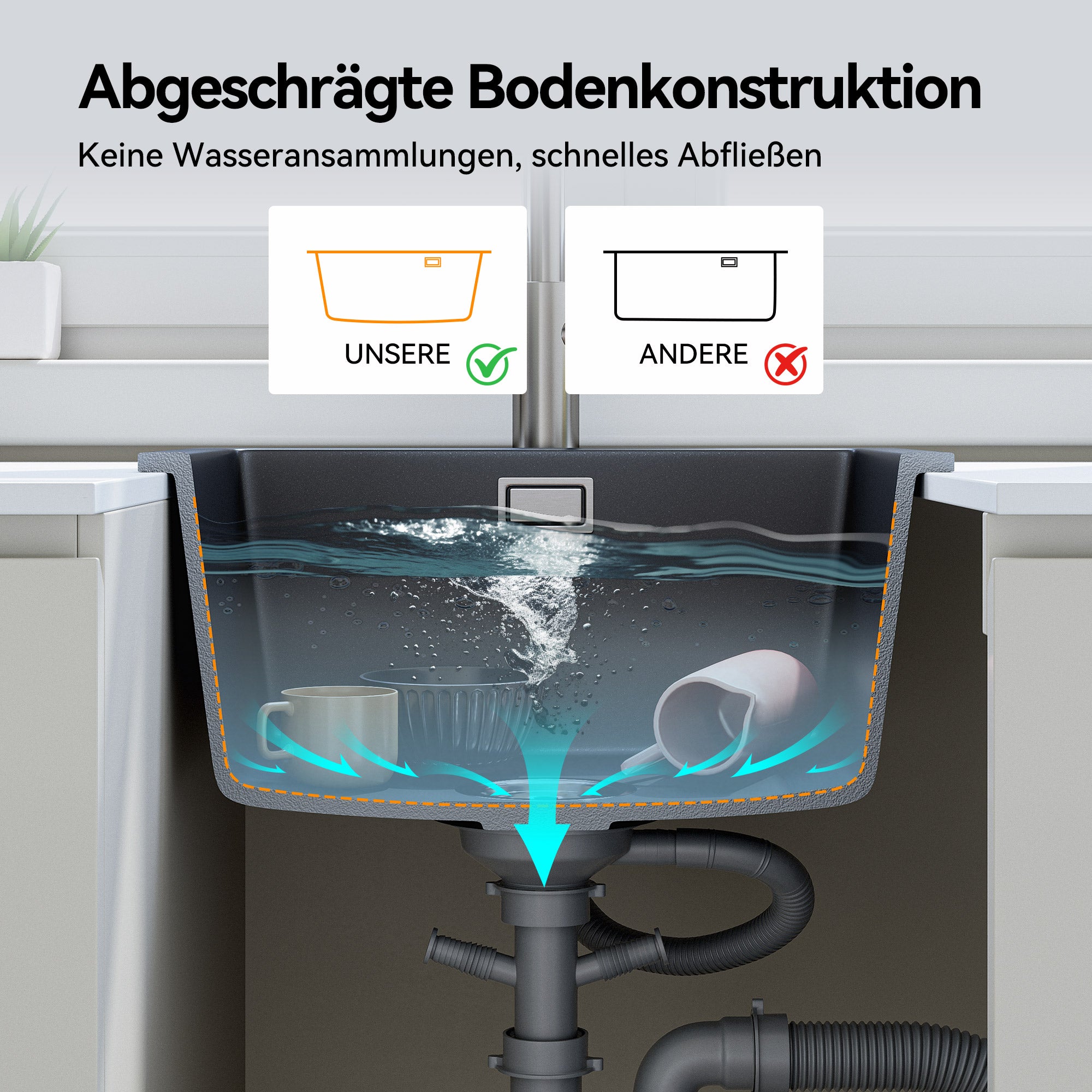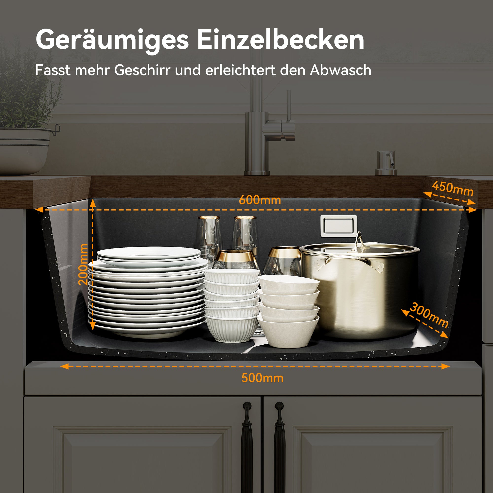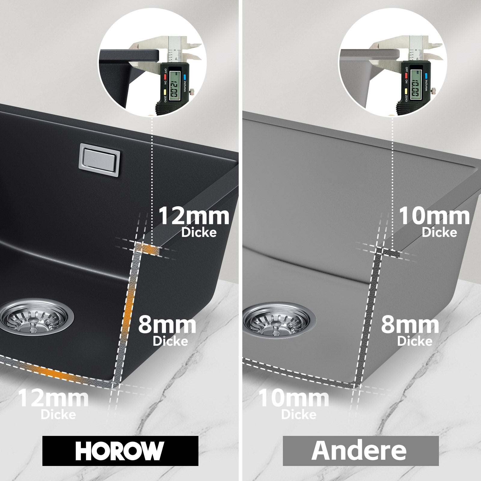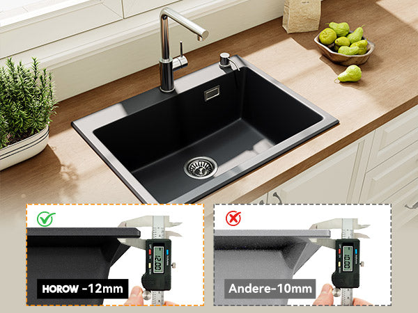 HOROW A02R-S5643B Granitspüle Schwarz 56×43 cm, Kratzfest, eckig, pflegeleicht