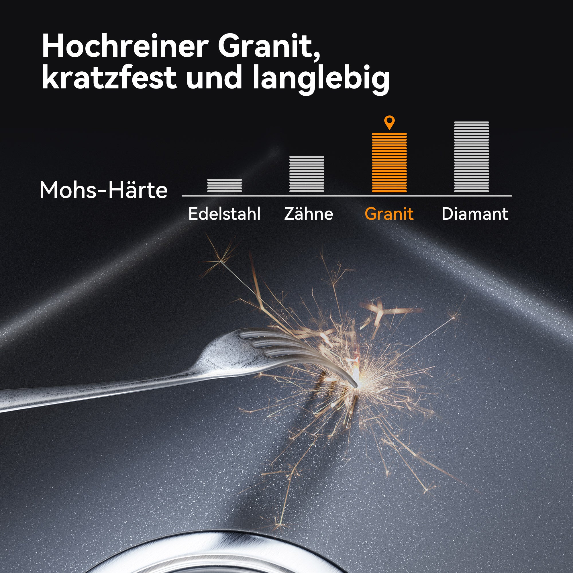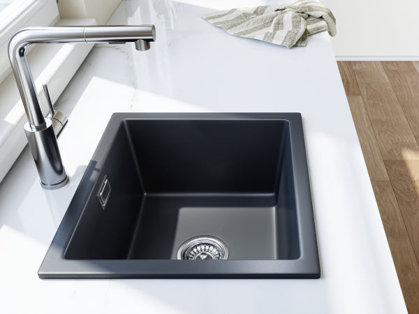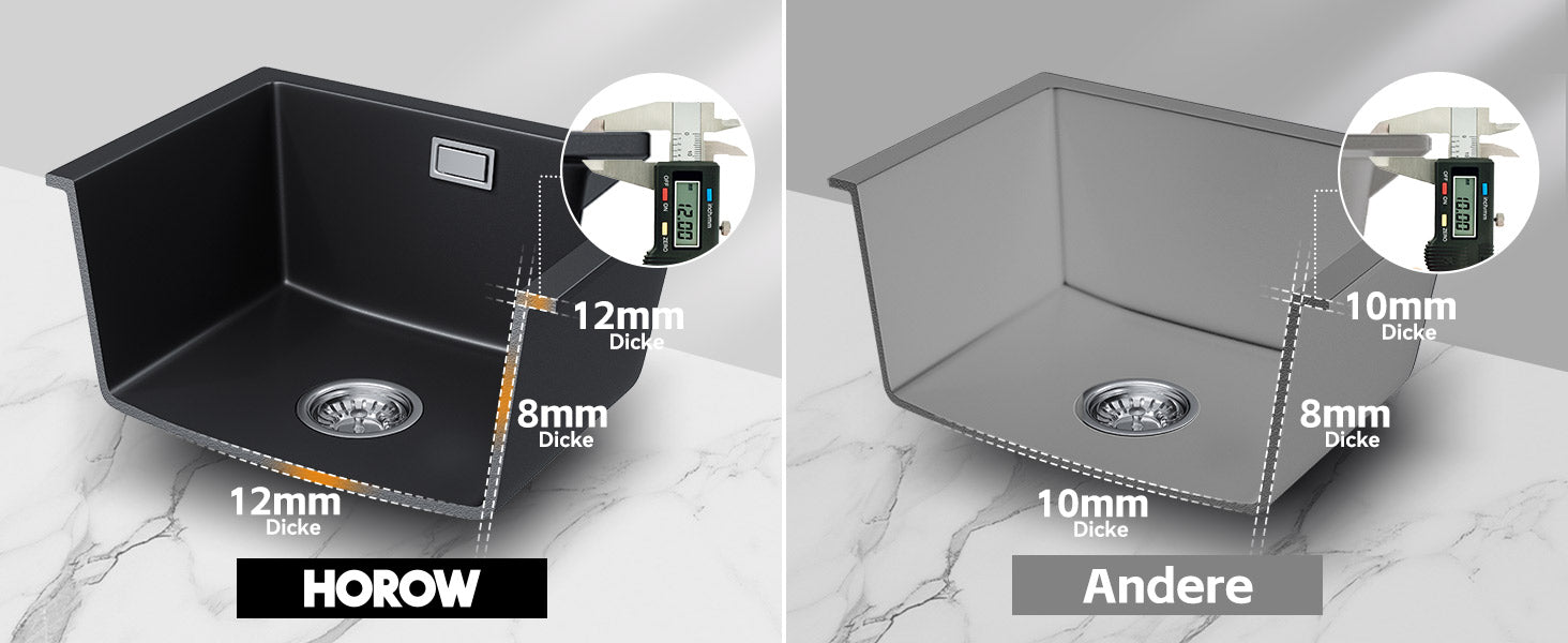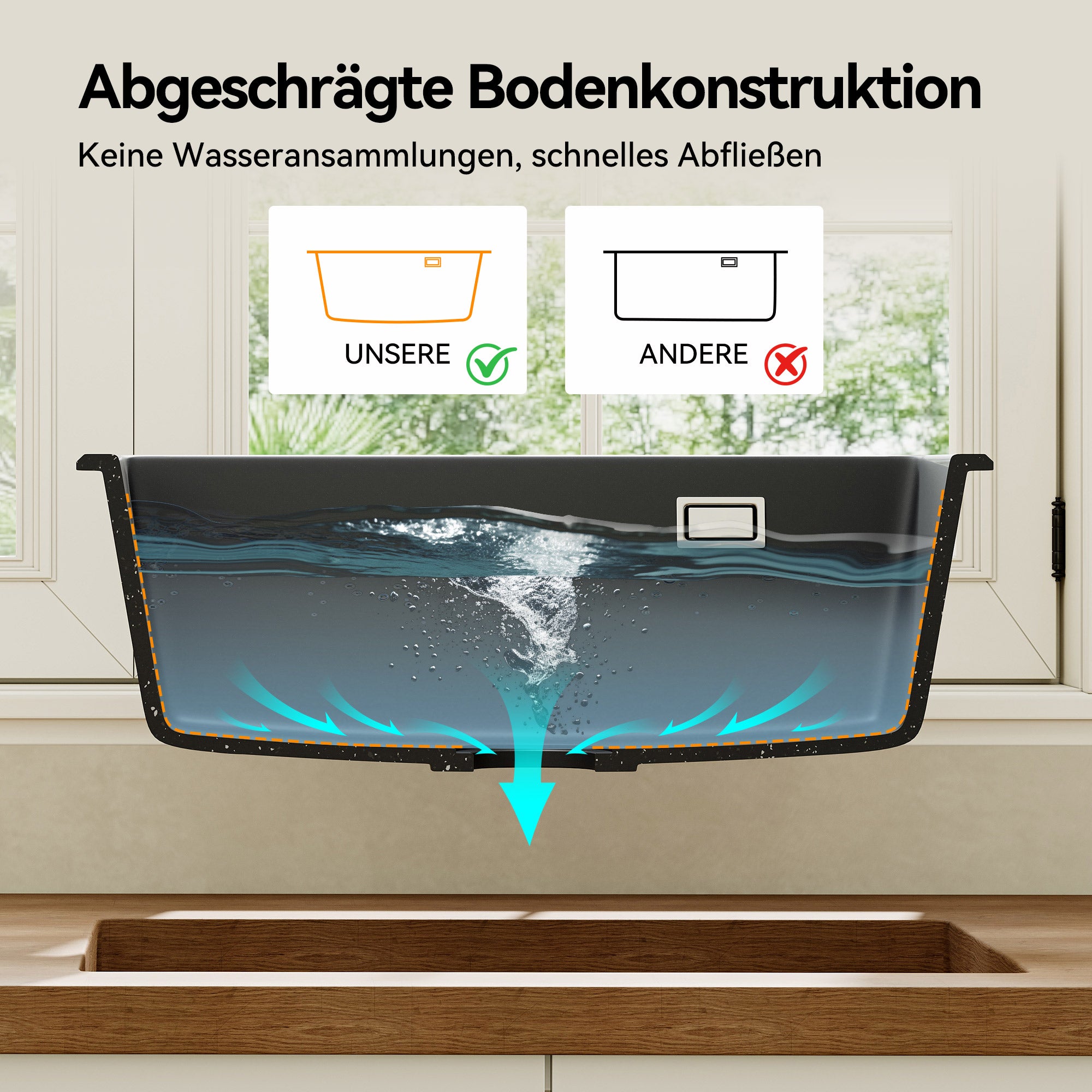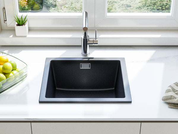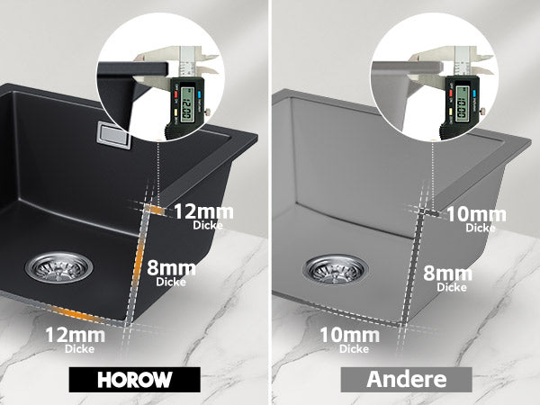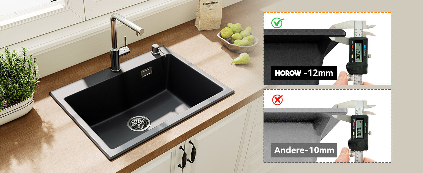HOROW A02R-S5643B Granitspüle Schwarz 56×43 cm, Kratzfest, eckig, pflegeleicht