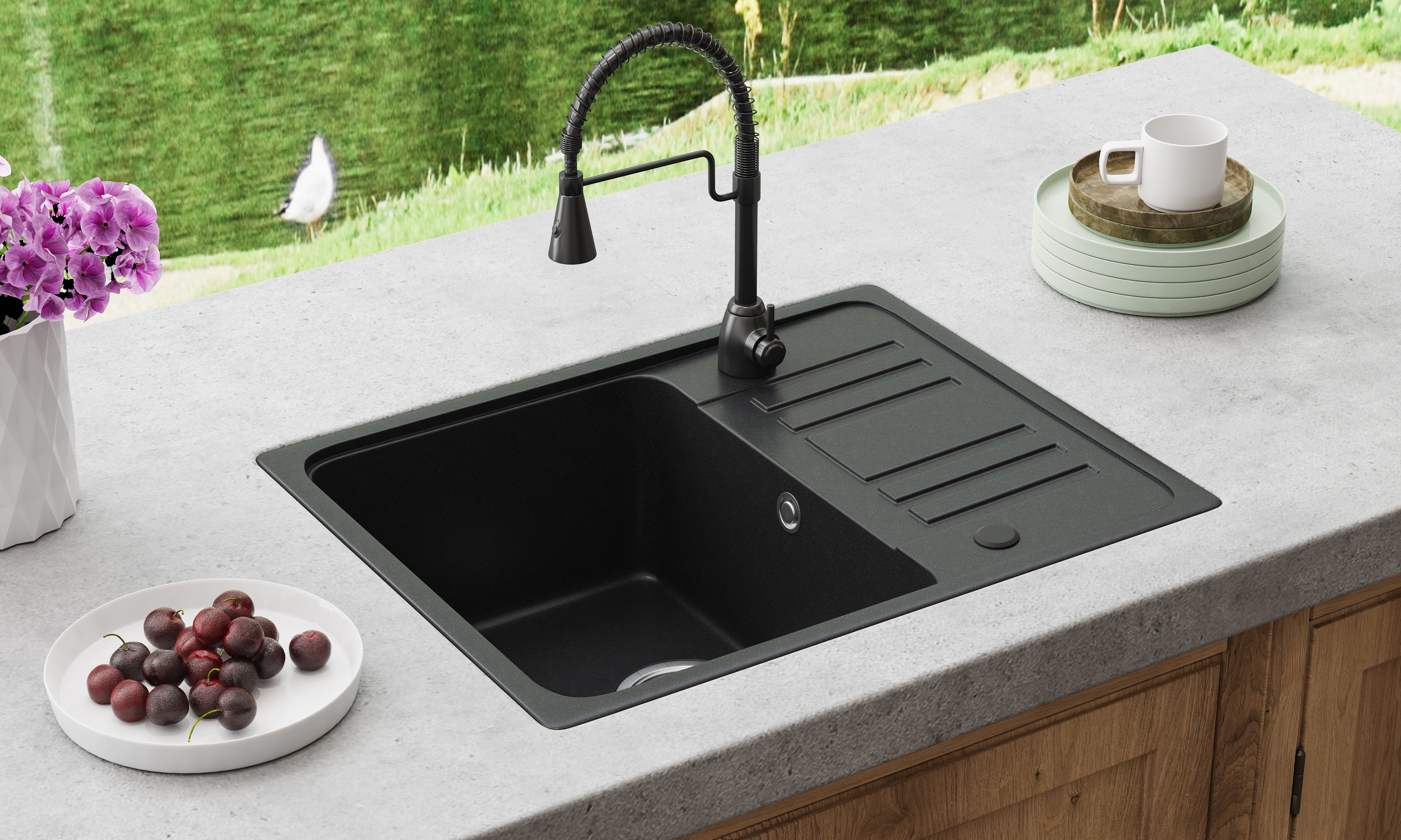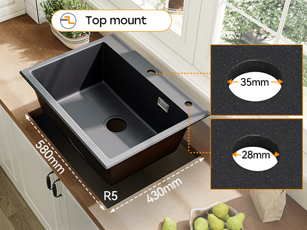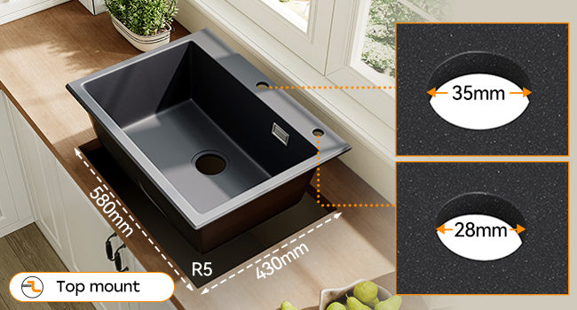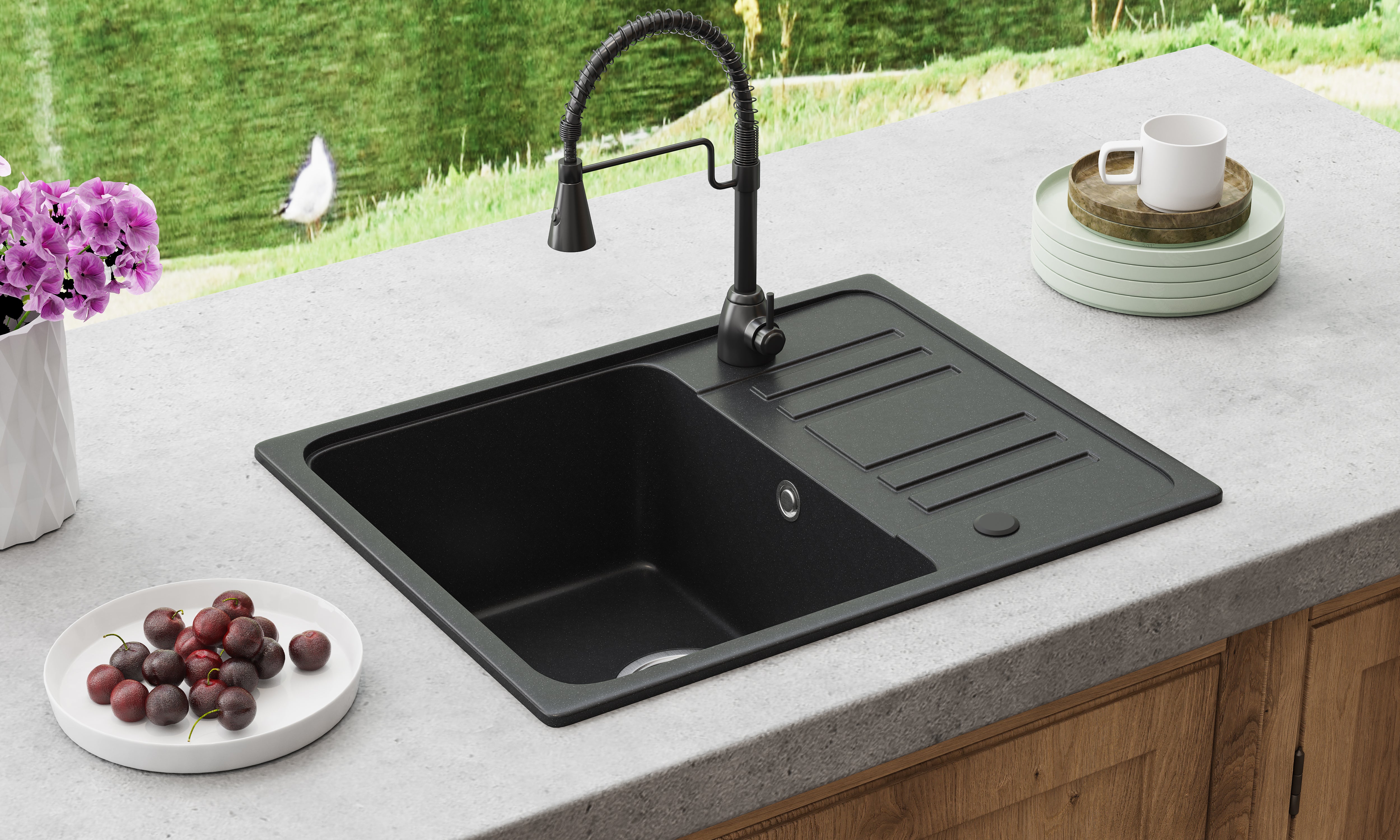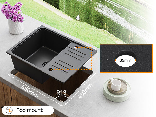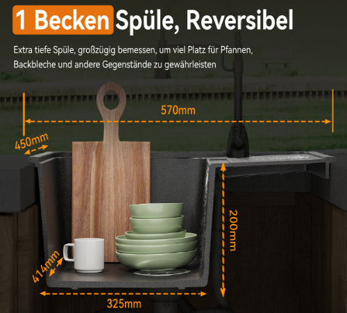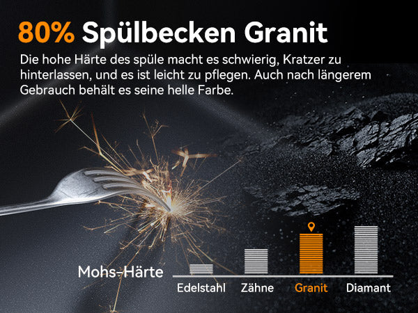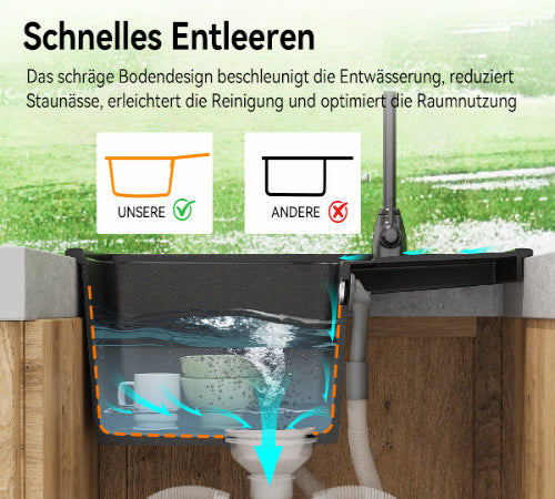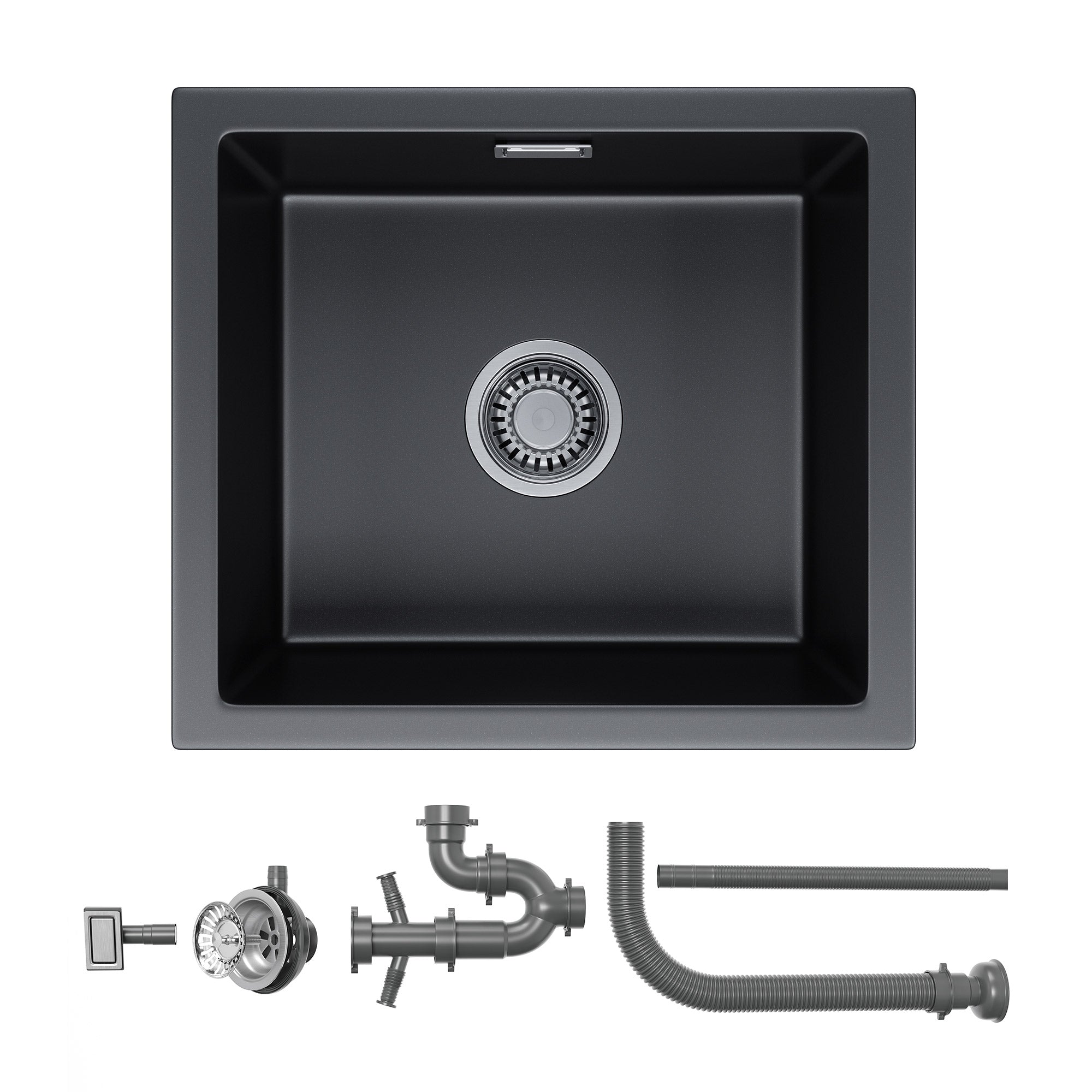 HOROW A02R-S5643B Granitspüle Schwarz 56×43 cm, Kratzfest, eckig, pflegeleicht