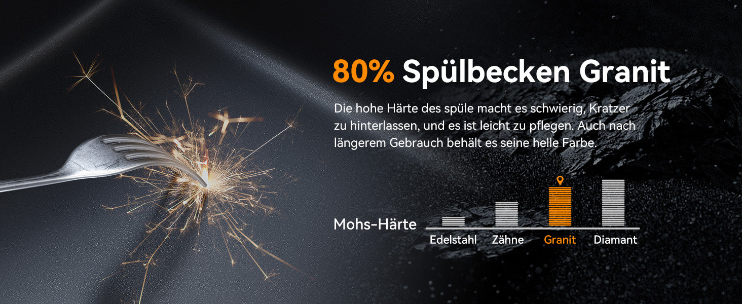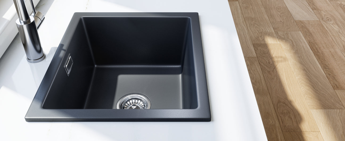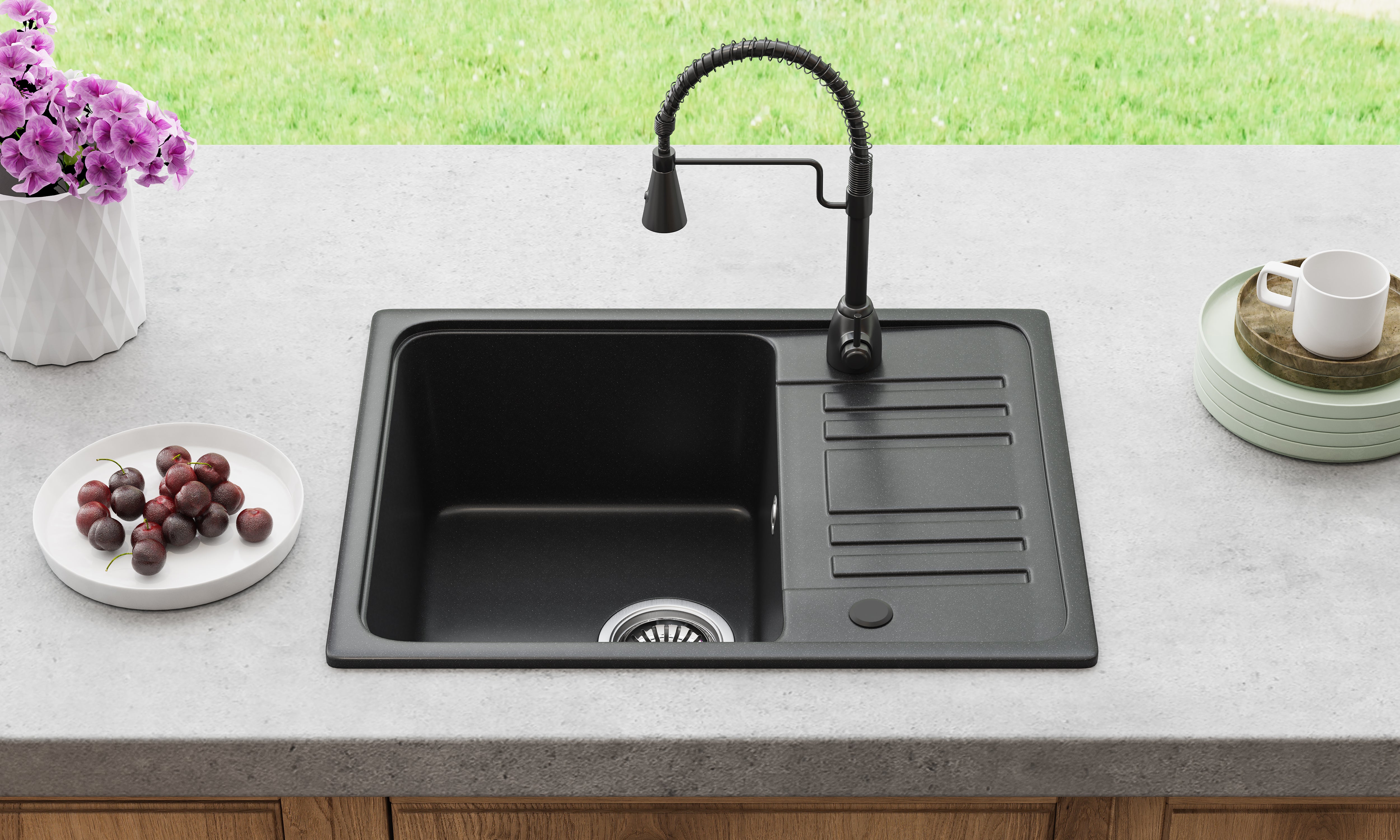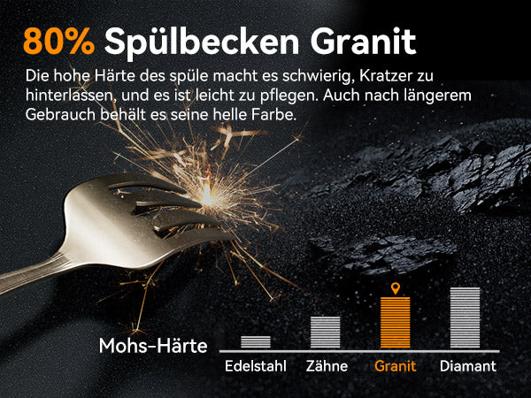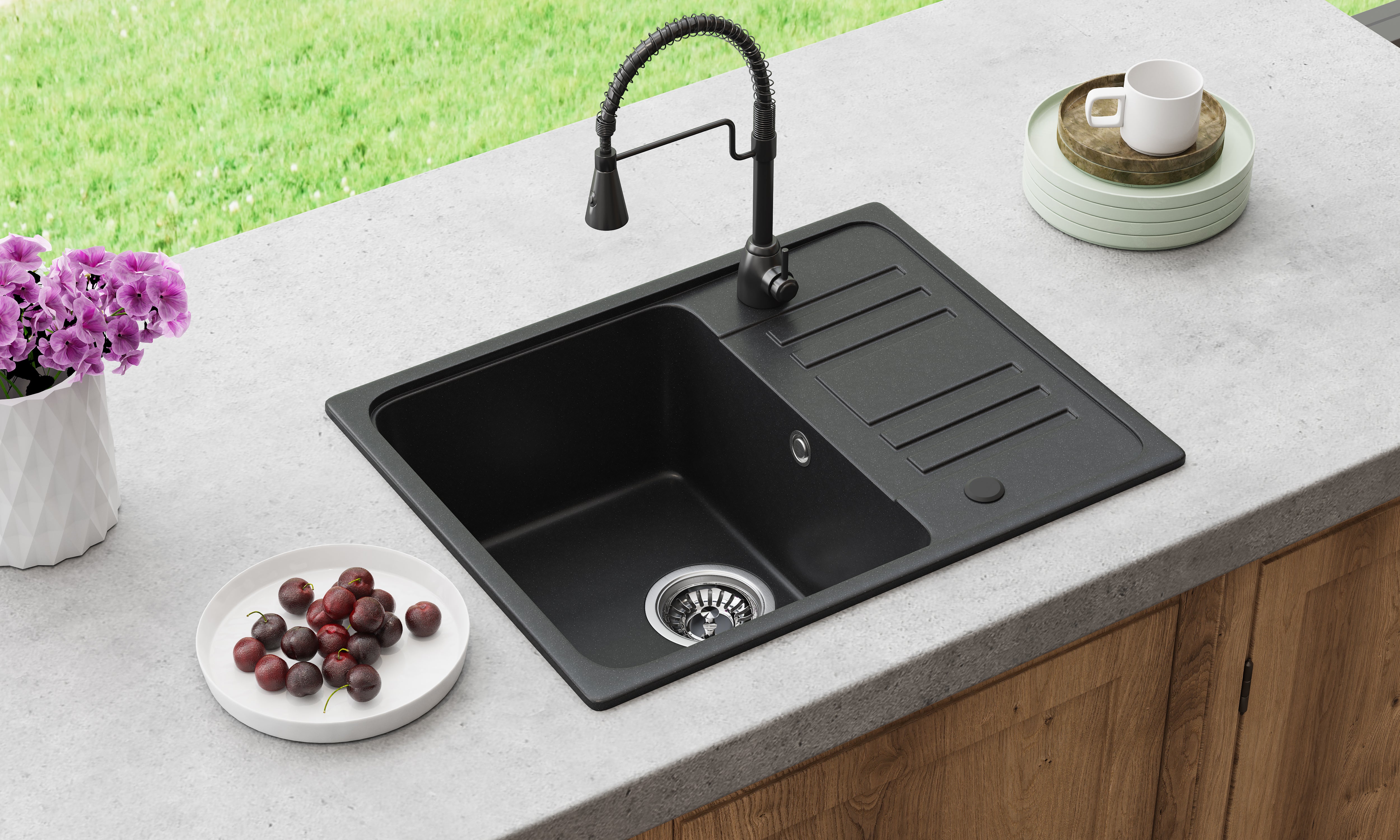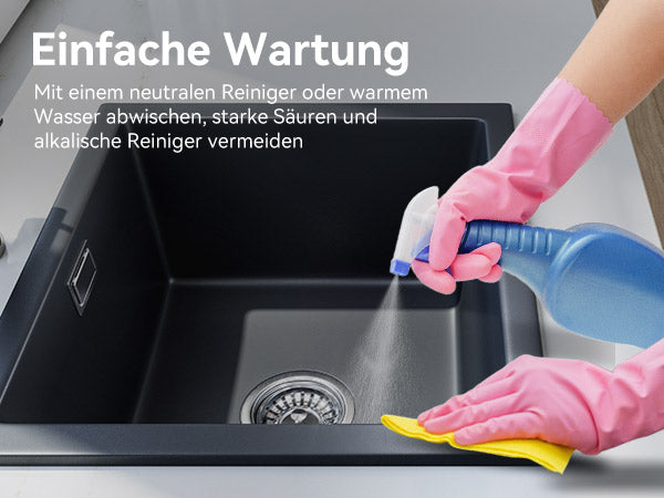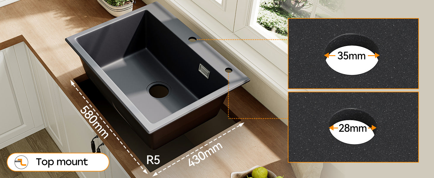 HOROW A02R-S5643B Granitspüle Schwarz 56×43 cm, Kratzfest, eckig, pflegeleicht