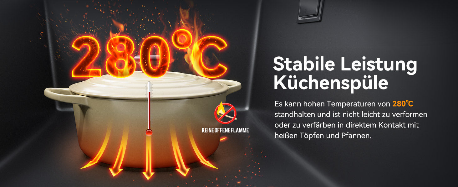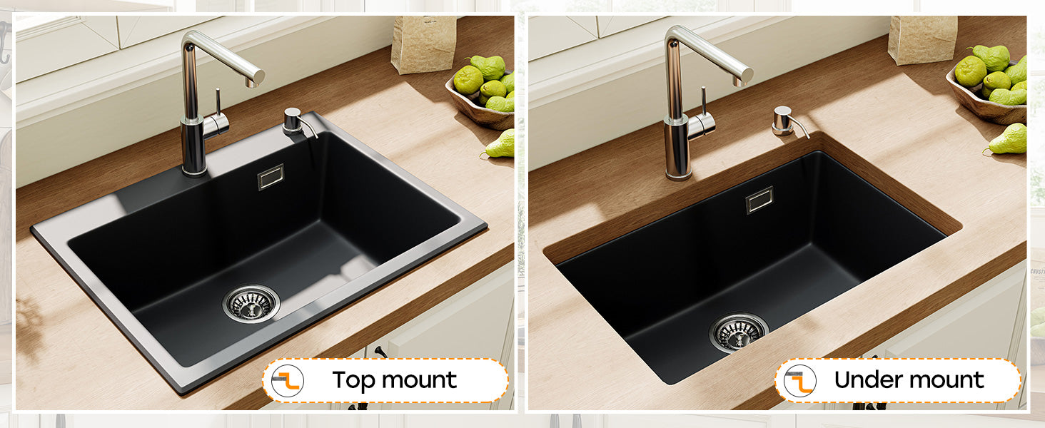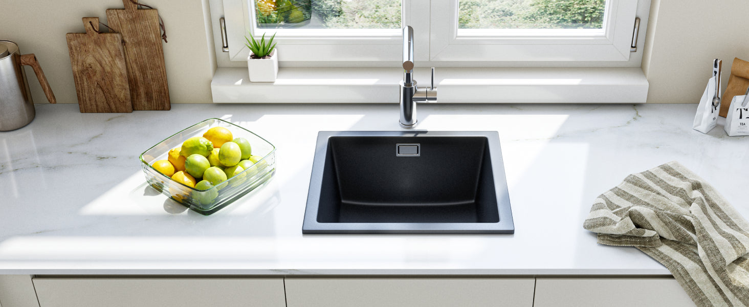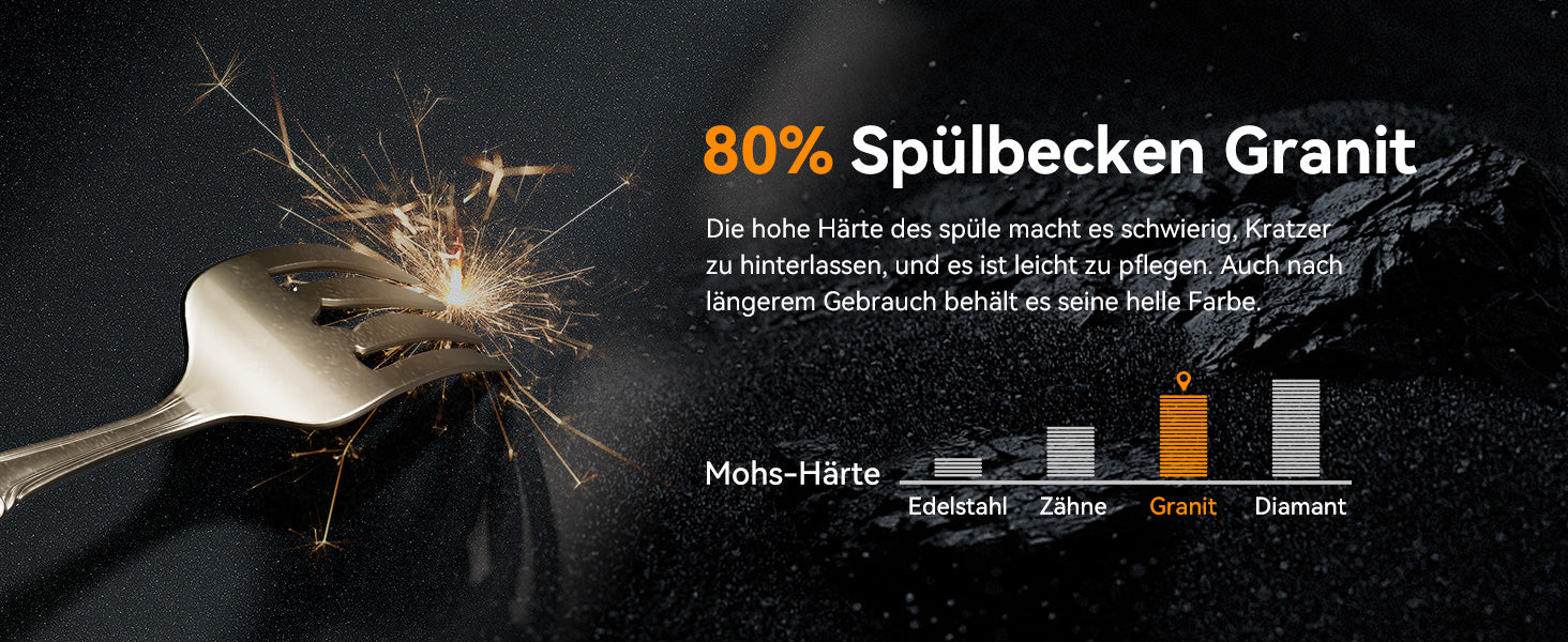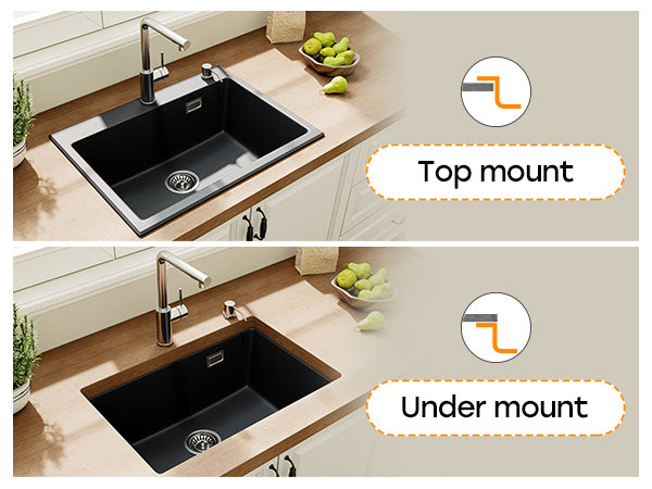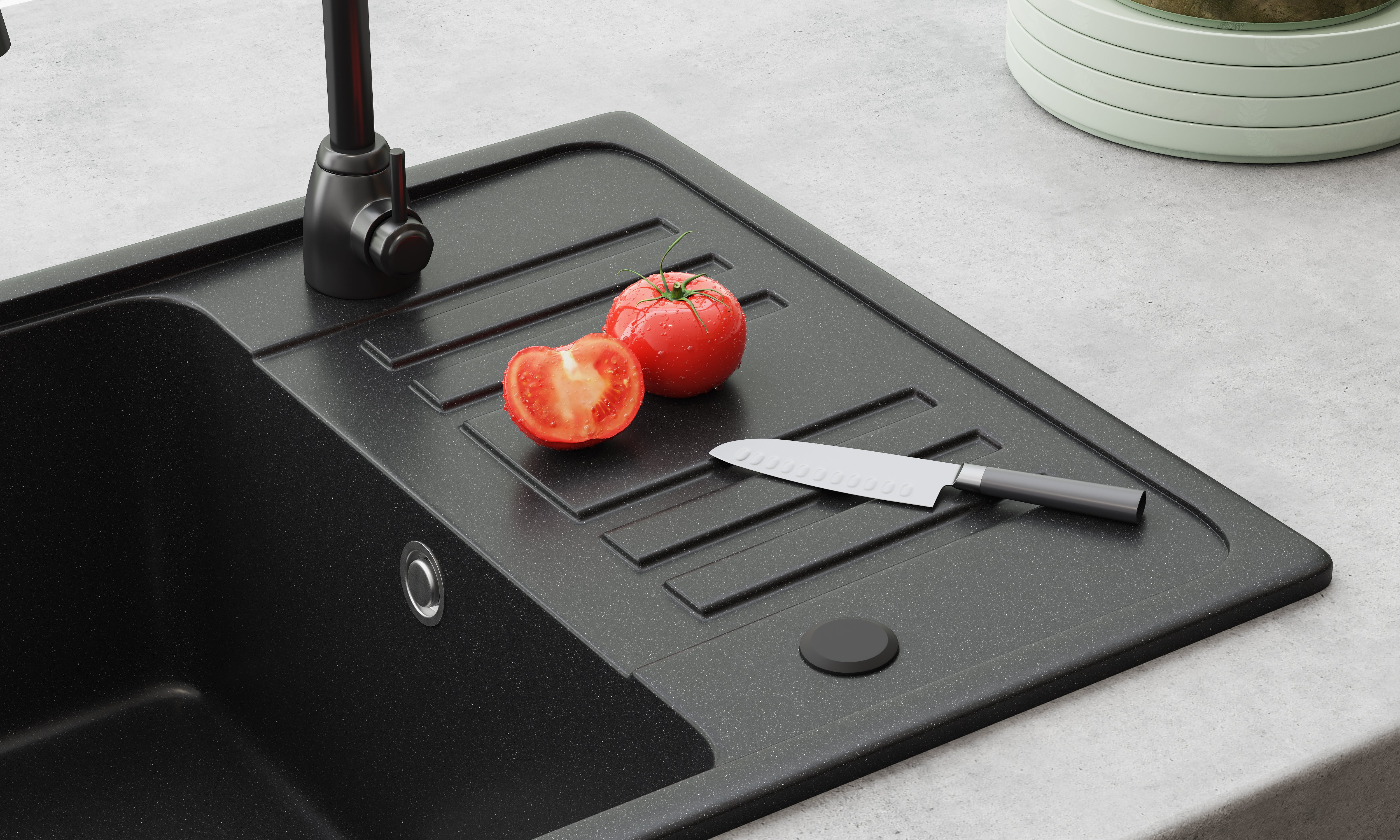 HOROW A02R-S5643B Granitspüle Schwarz 56×43 cm, Kratzfest, eckig, pflegeleicht