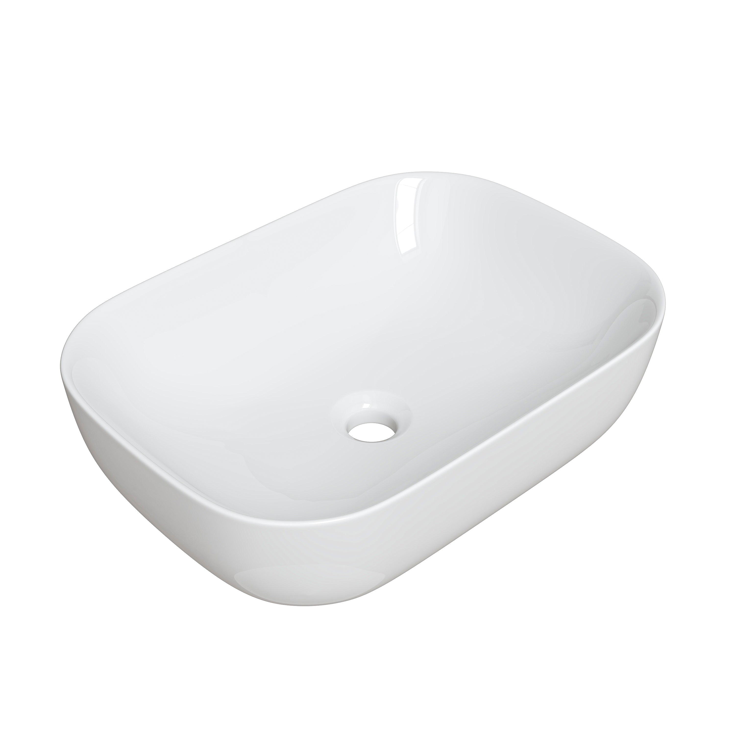 HOROW F12A-T4735 Aufsatzwaschbecken ohne Hahnloch & Überlauf, 47×35 cm Weiß Keramik