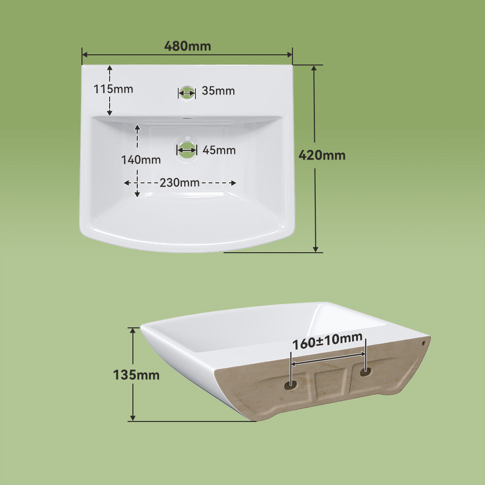 HOROW F08R-S4631W Rechteckiges Keramik Waschbecken 46×30 cm