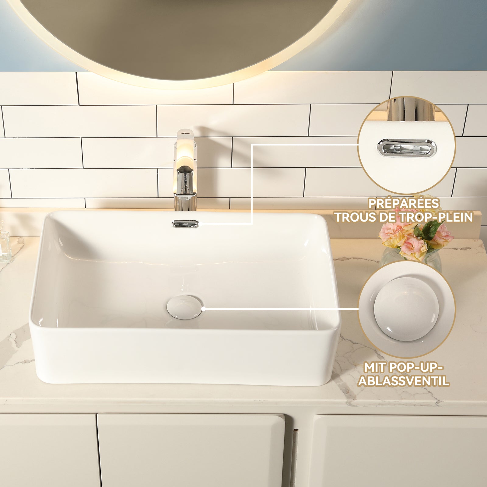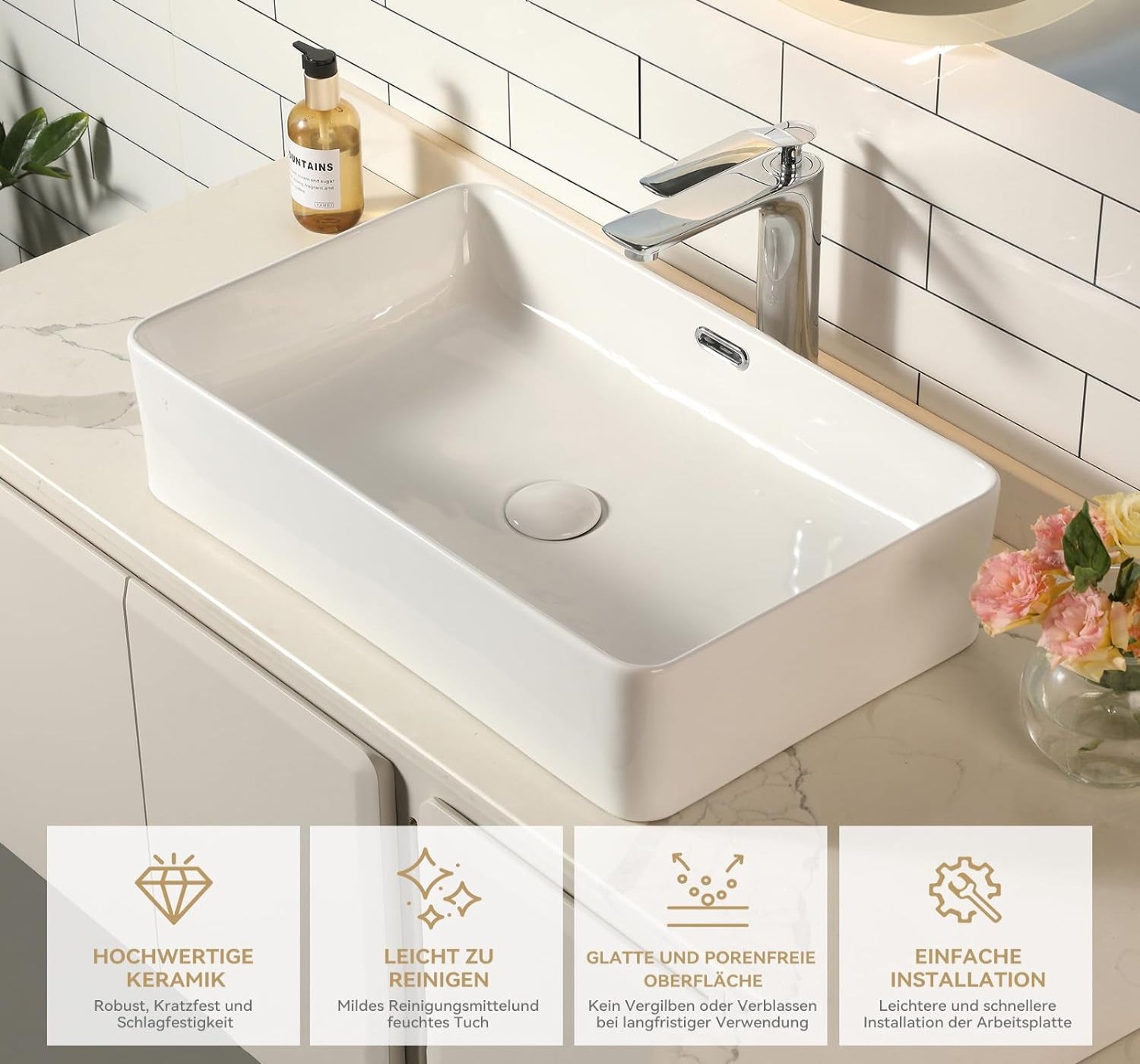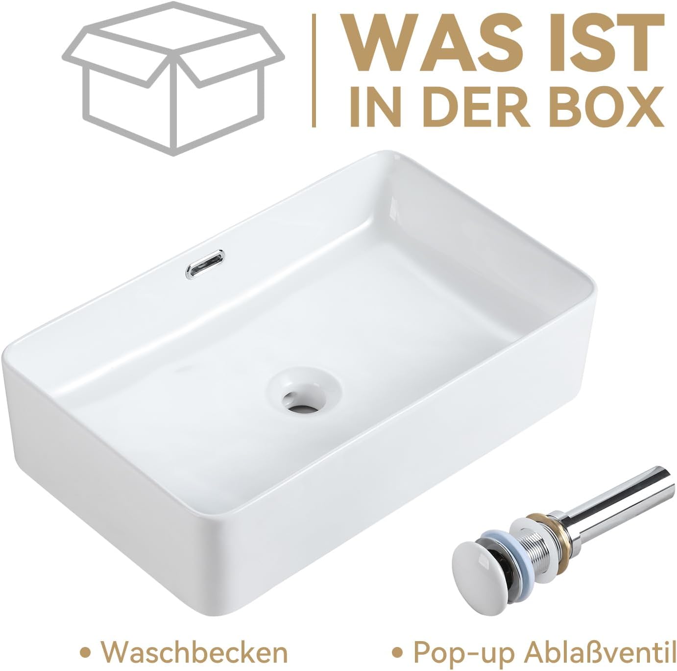 HOROW F12A-S6040 Aufsatzwaschbecken, 60×40 cm, Weiß, Dünnrand, Nano-Beschichtung