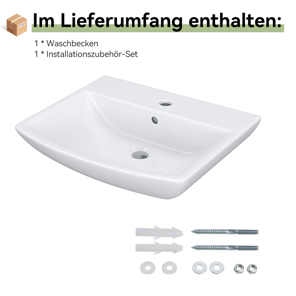 HOROW F10A-6042 Waschbecken 60 cm mit Hahnloch & Überlauf
