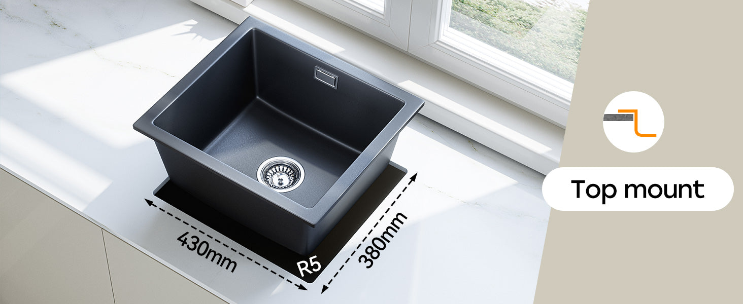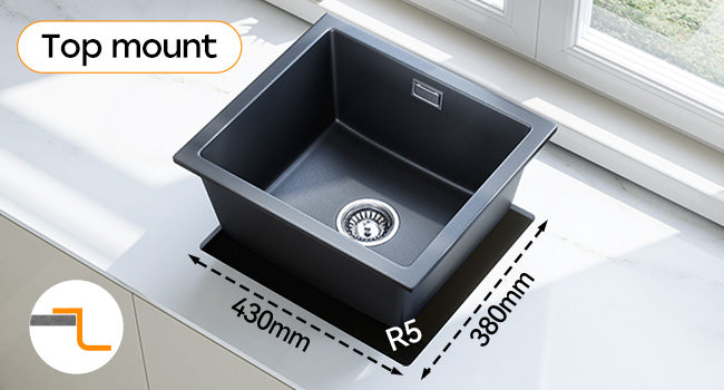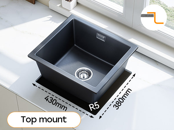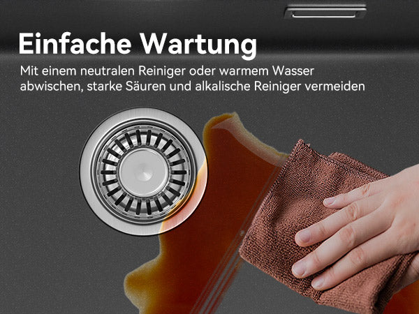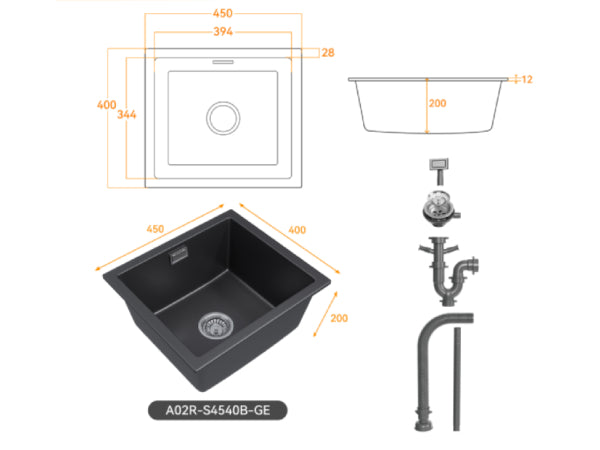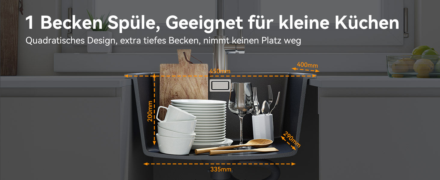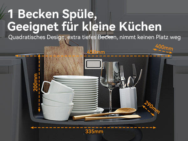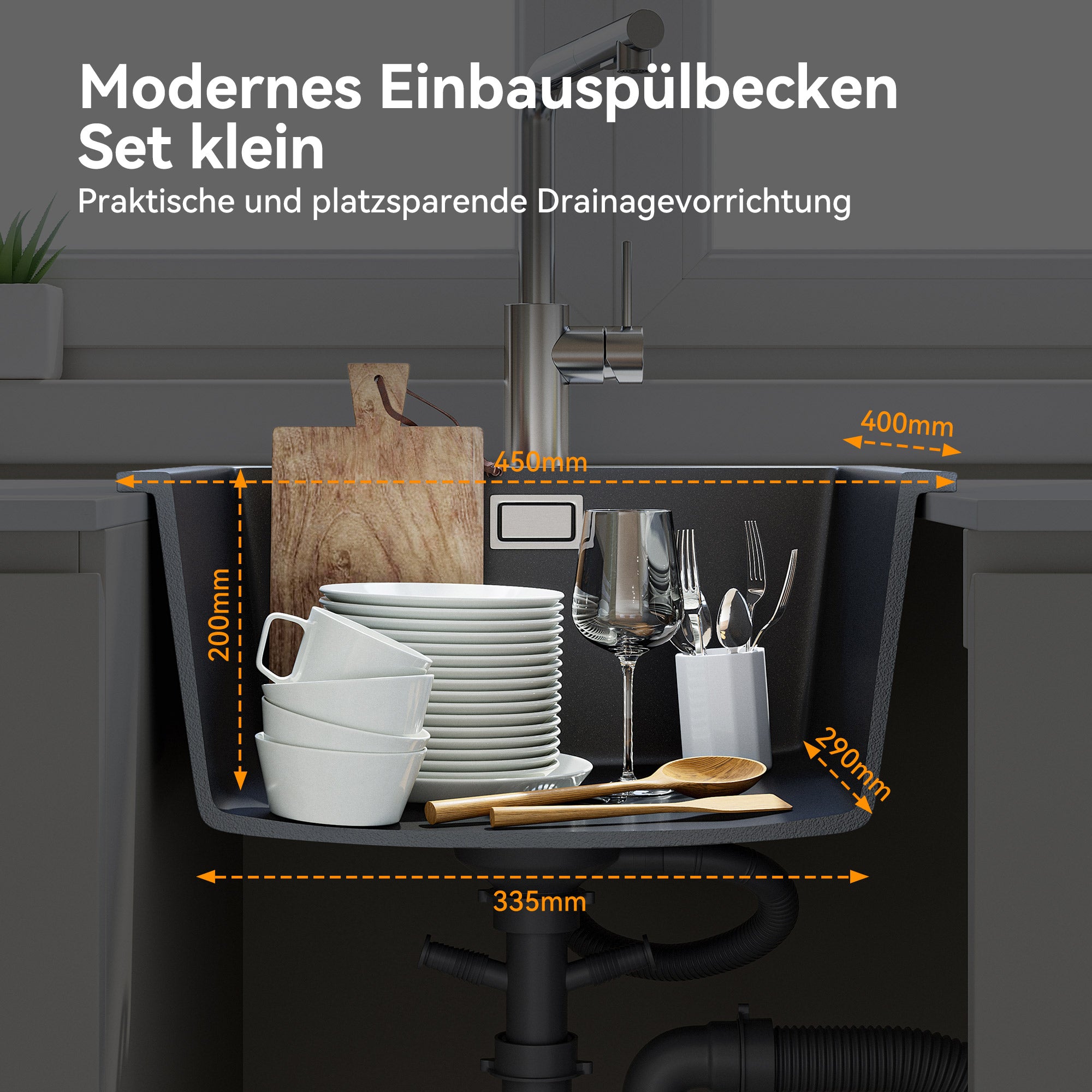 HOROW A02R-S4540B Granit Spüle Schwarz 45×40 cm