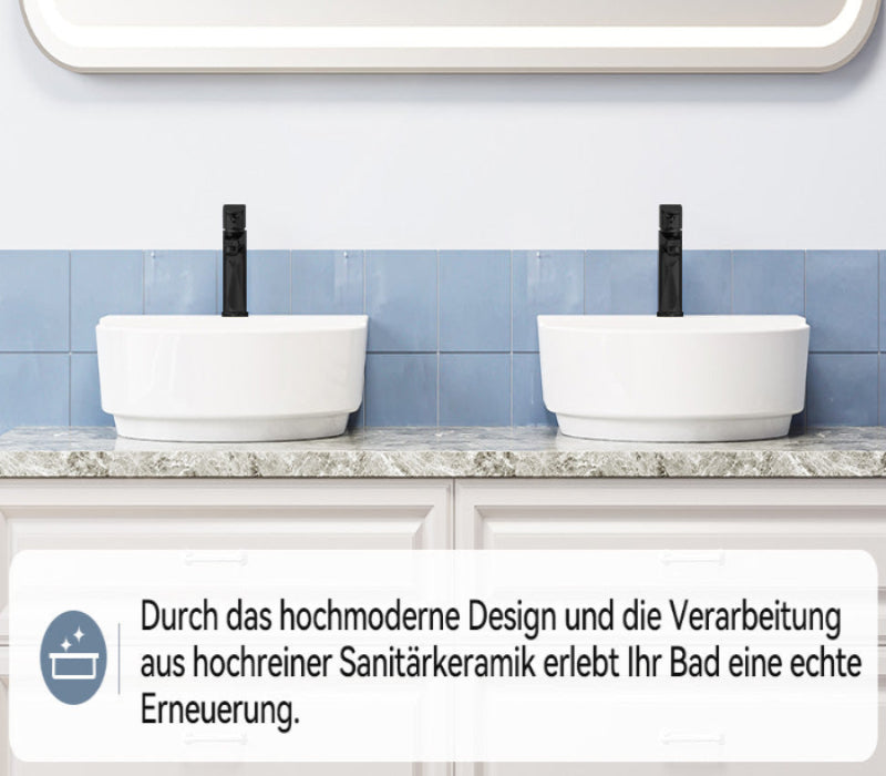 HOROW F12A-S5636 Aufsatzwaschbecken, Hahnloch & Überlauf, 28 cm Lochabstand