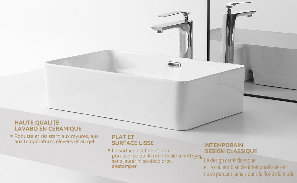 HOROW F08R-S5531W Rechteckiges Waschbecken