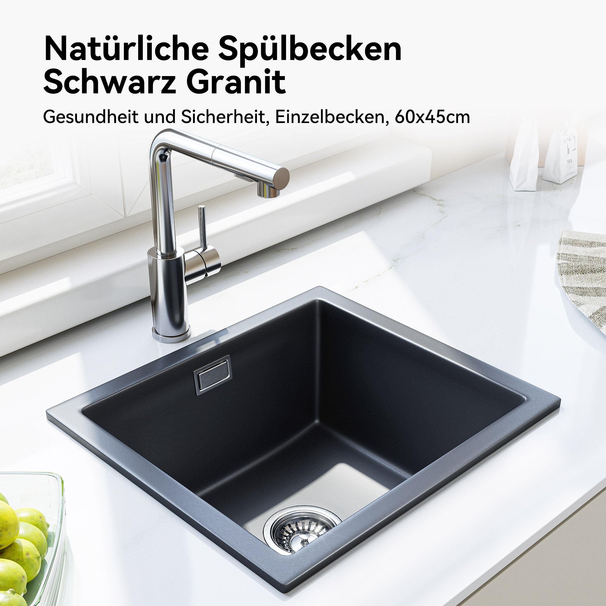 HOROW A09R-S6045B Granit Spülbecken Schwarz 60×45 cm
