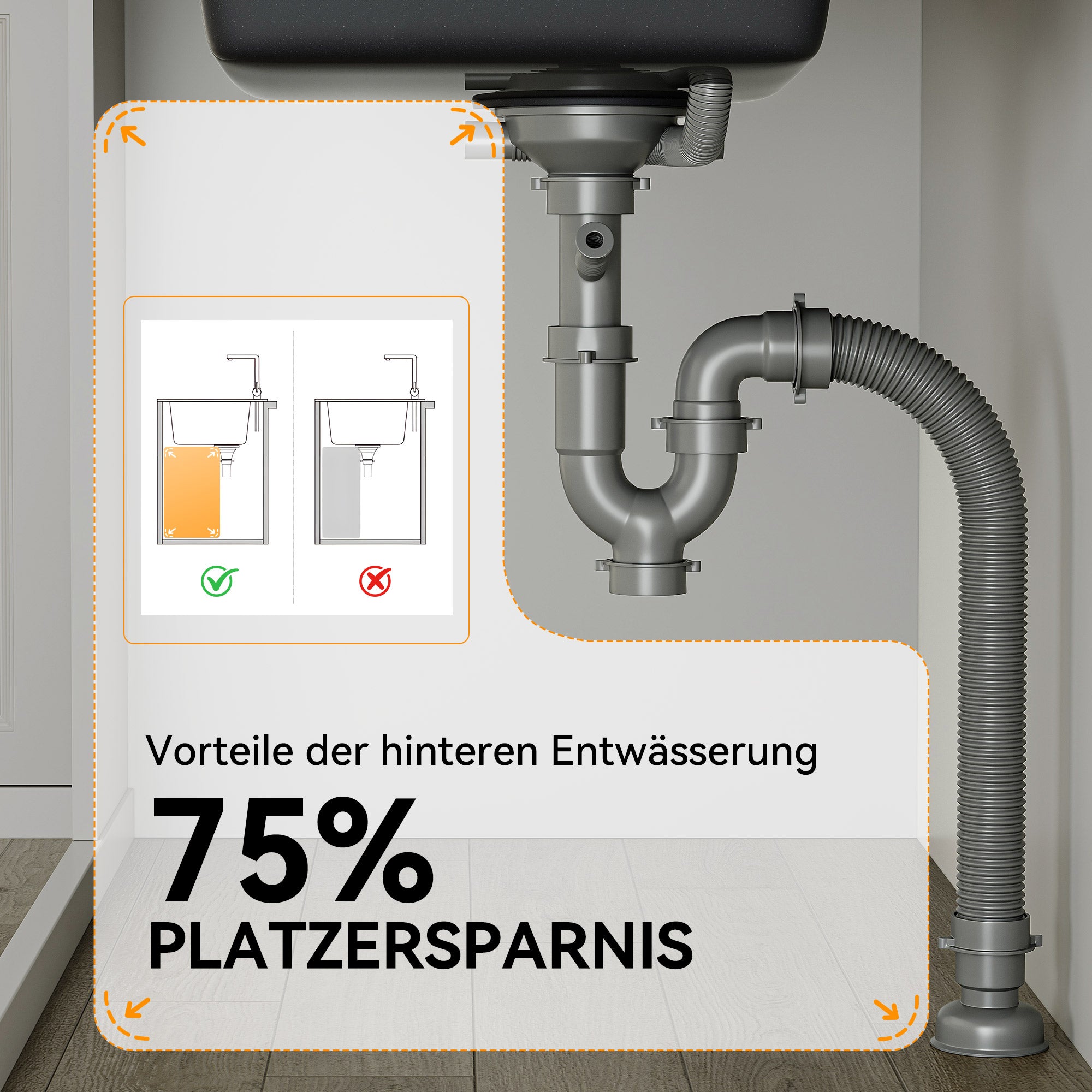 HOROW A09S-S5745B Granitspüle Schwarz 57×45 cm