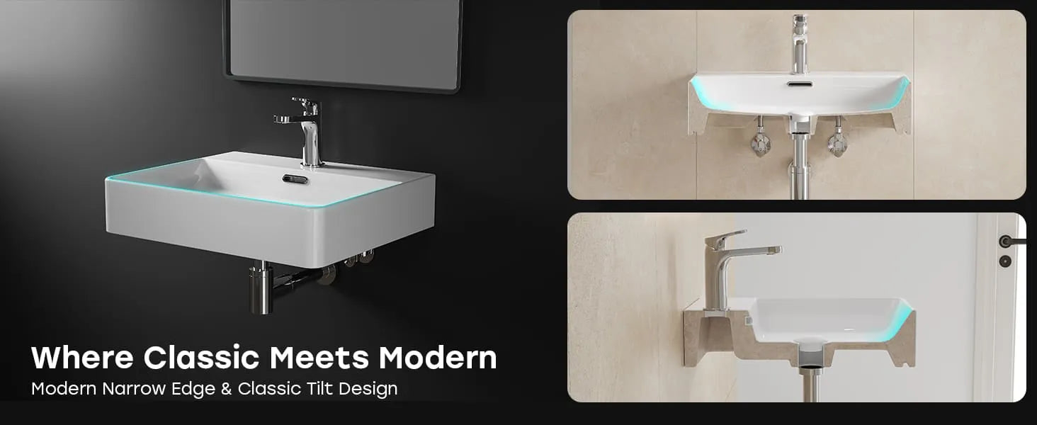 HOROW F11A-S4025L Waschbecken mit Hahnloch & Überlauf, einfache Montage