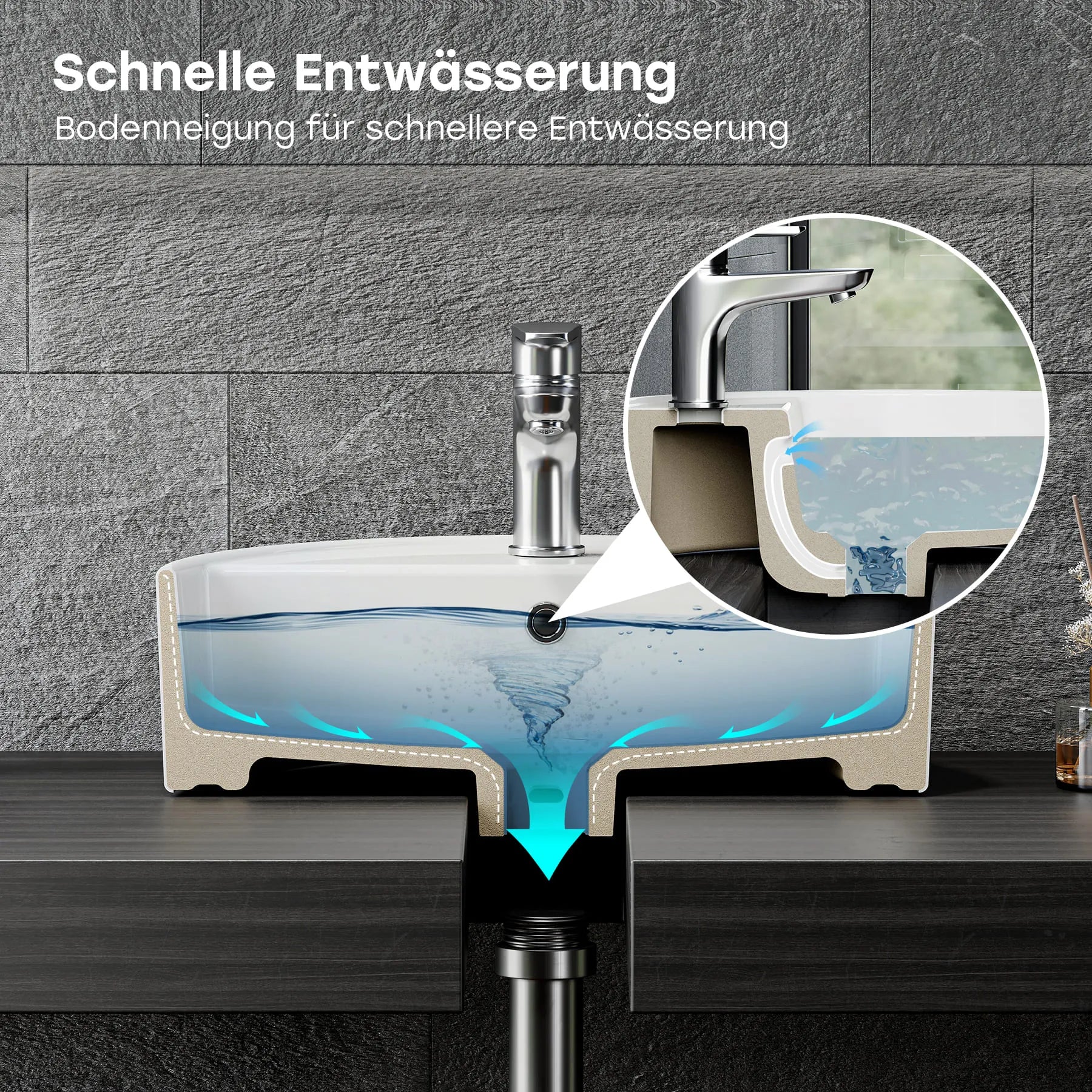 Elegantes Design: Rundes 42-cm-Waschbecken, ideal für Gäste-WC und Badezimmer. Hochwertige Keramik verleiht dem Waschtisch eine moderne, elegante Atmosphäre.