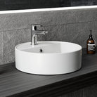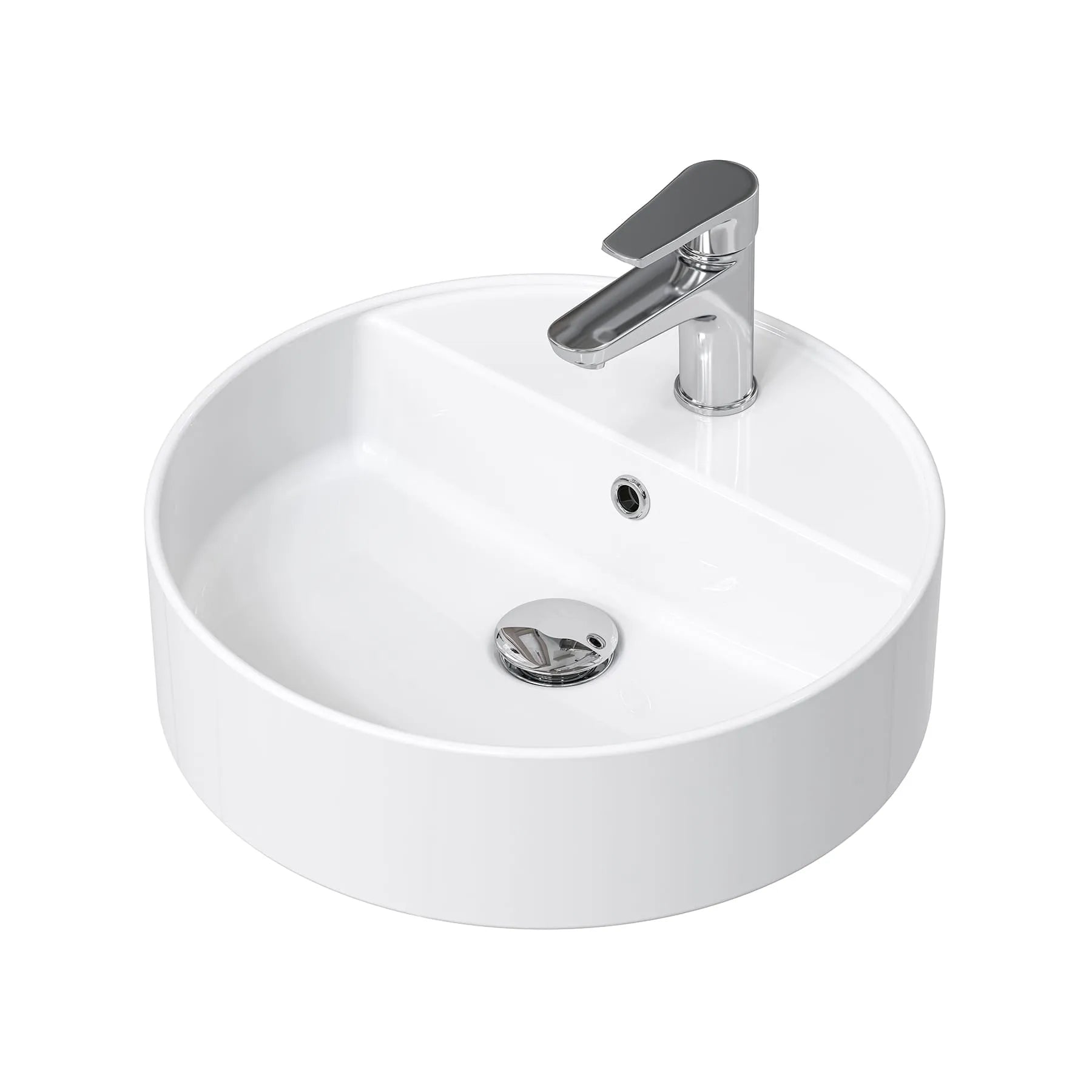 HOROW F12A-R4242 Rundes Aufsatzwaschbecken, 42 cm, Weiß, Hahnloch & Überlauf