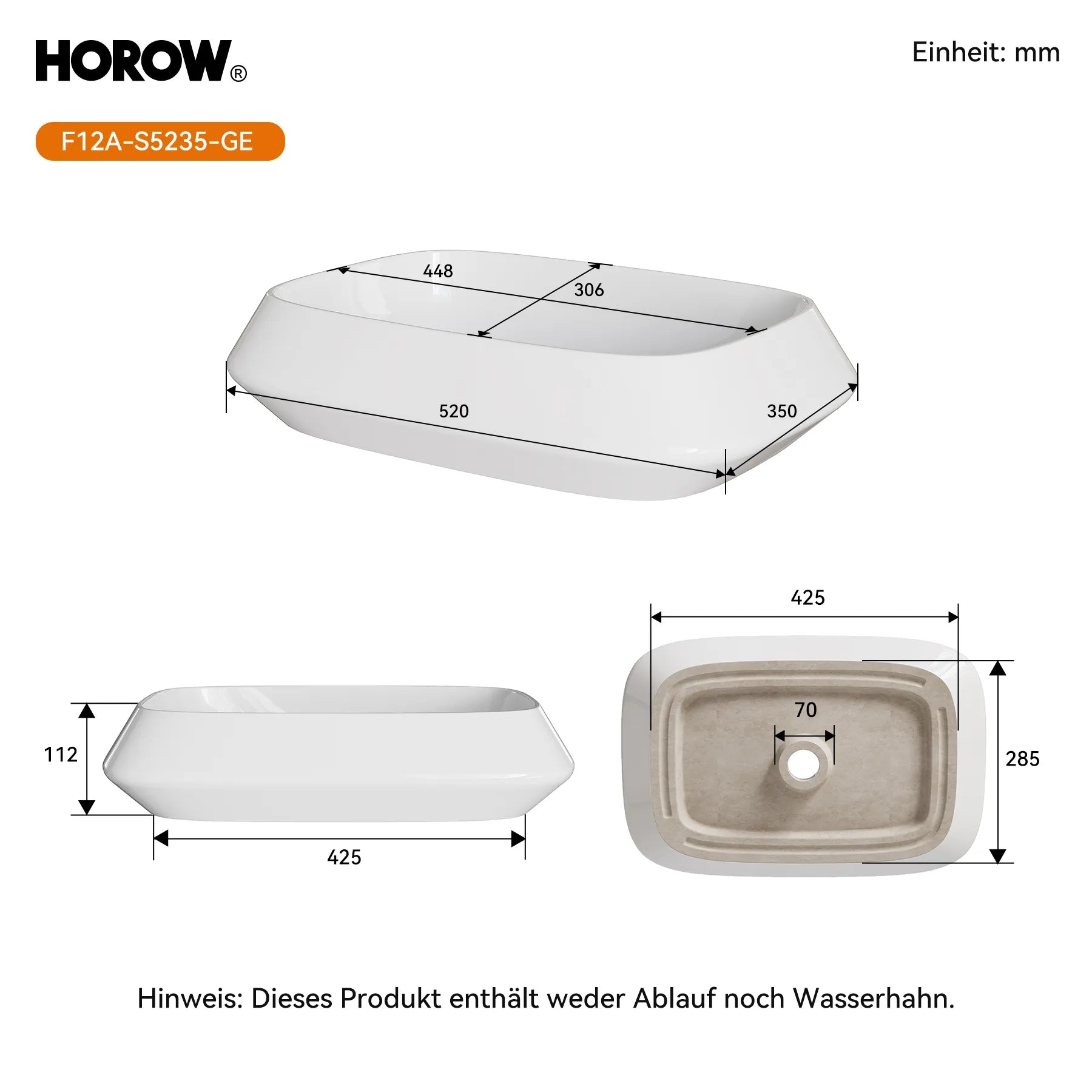 HOROW Aufsatzwaschbecken – Elegantes Keramikdesign für moderne Bäder.