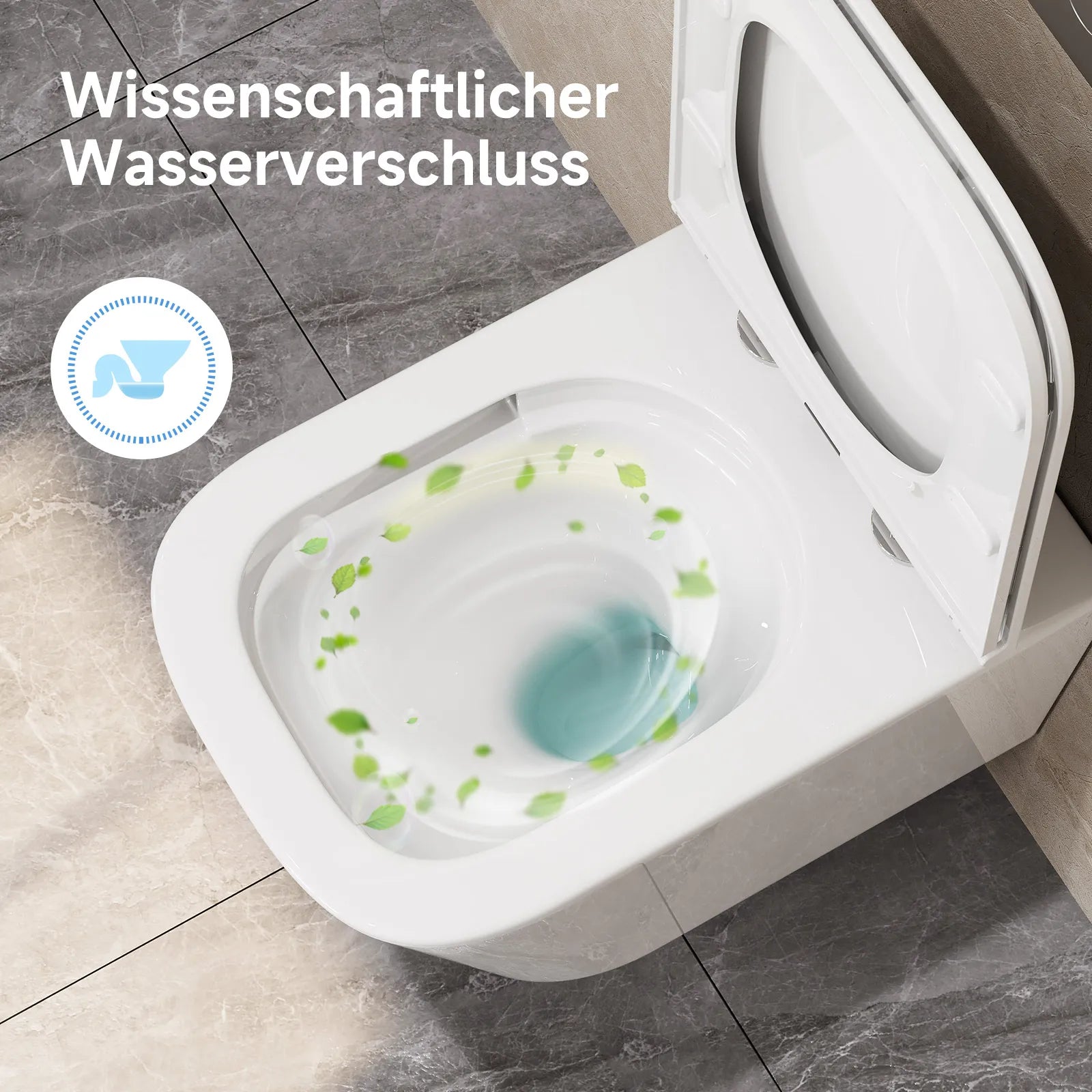 Without a rim, there are no hidden dirt traps – this makes cleaning easier and effectively prevents the spread of germs and bacteria. - Odor control through water sealing system: