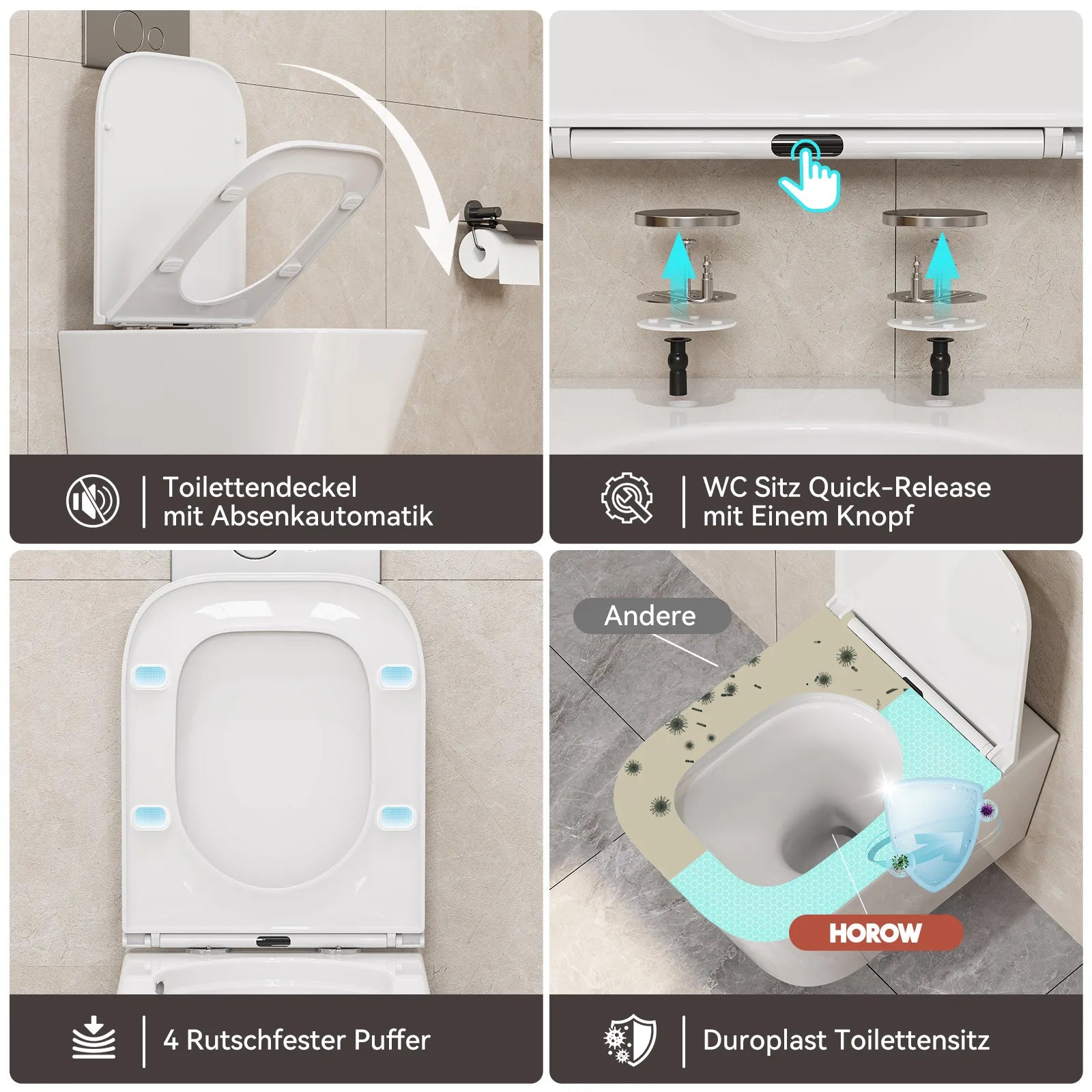 Das randlose Design verhindert effektiv Schmutz- und Keimablagerungen. Ohne schwer zugängliche Ecken lässt sich das Dusch-WC einfach und gründlich reinigen – für maximale Hygiene und Sauberkeit im Bad.