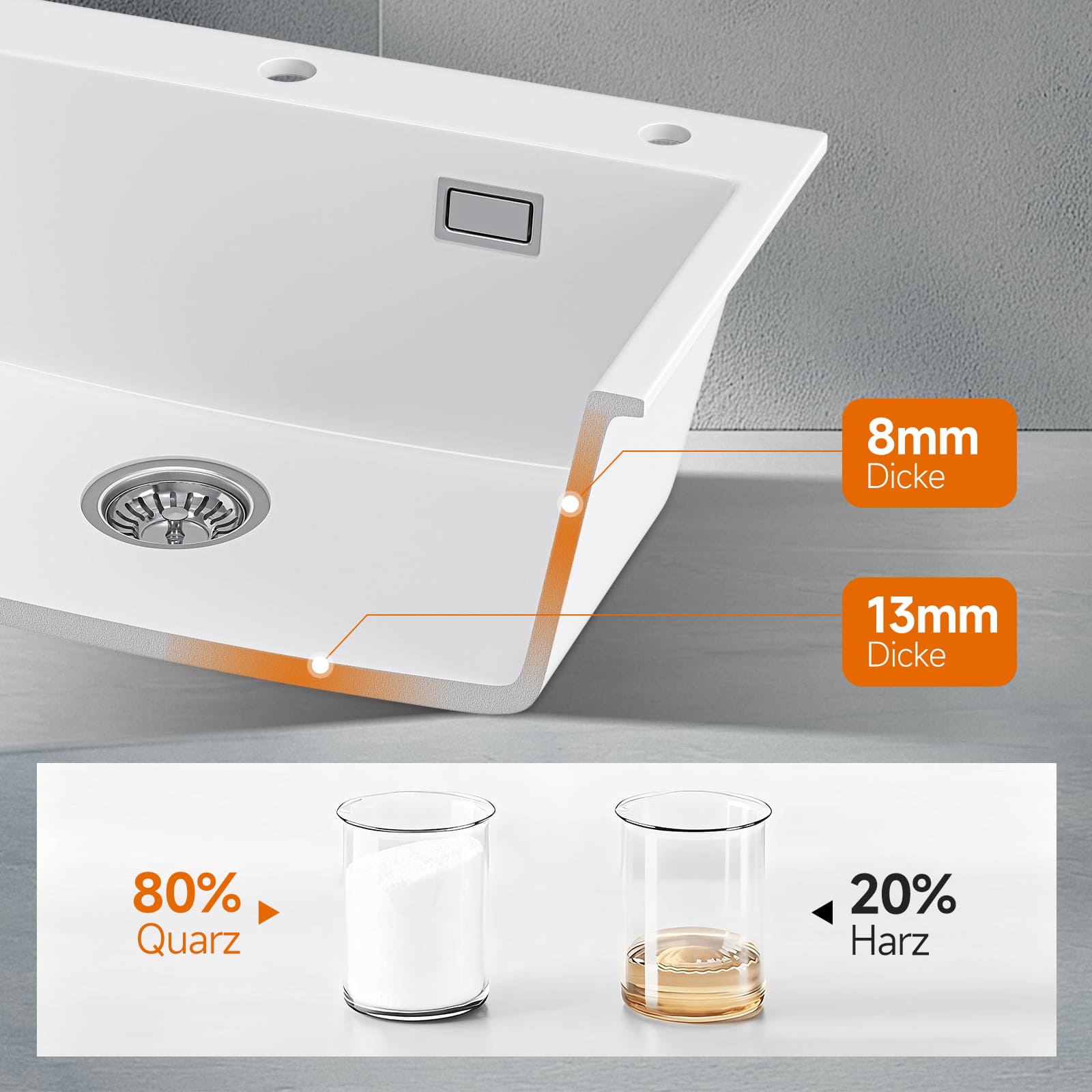 - Schwarze Granitspüle: 80 % Quarz, 20 % Harz, lebensmittelecht