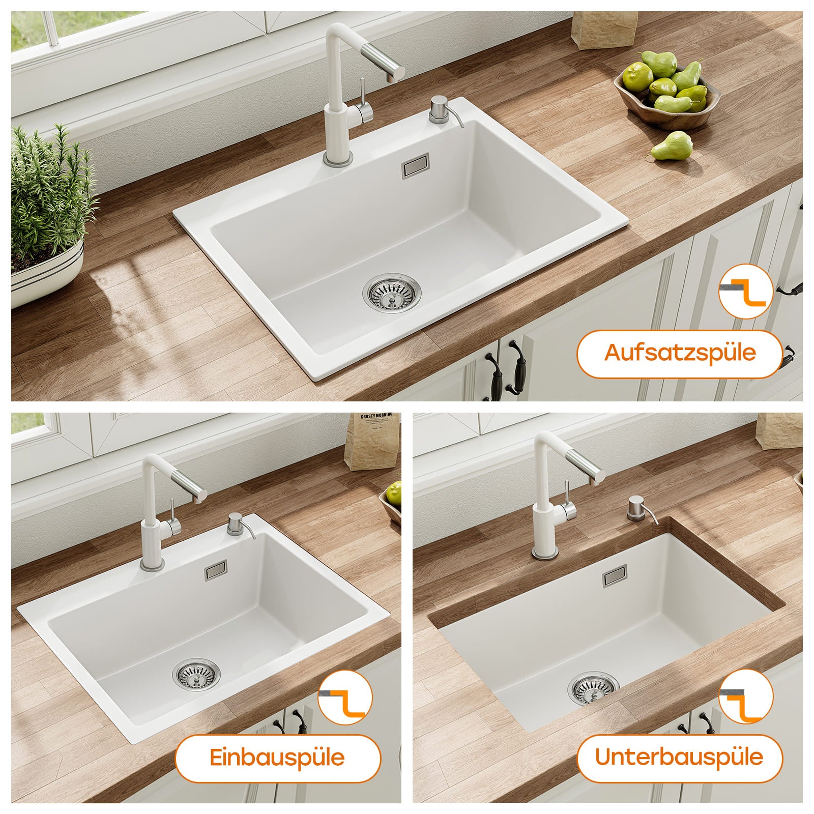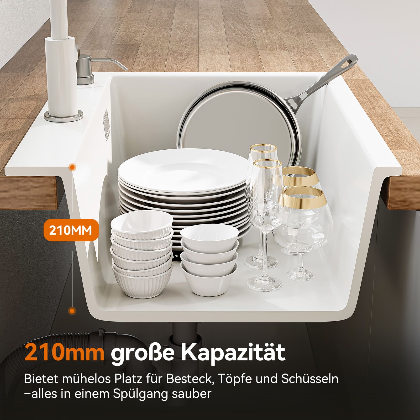 - Flexible Montageoptionen: Auf-, Unter- oder Innenmontage möglich, mit Überlauf für elegantes, sauberes Design – passt in jede Küche.