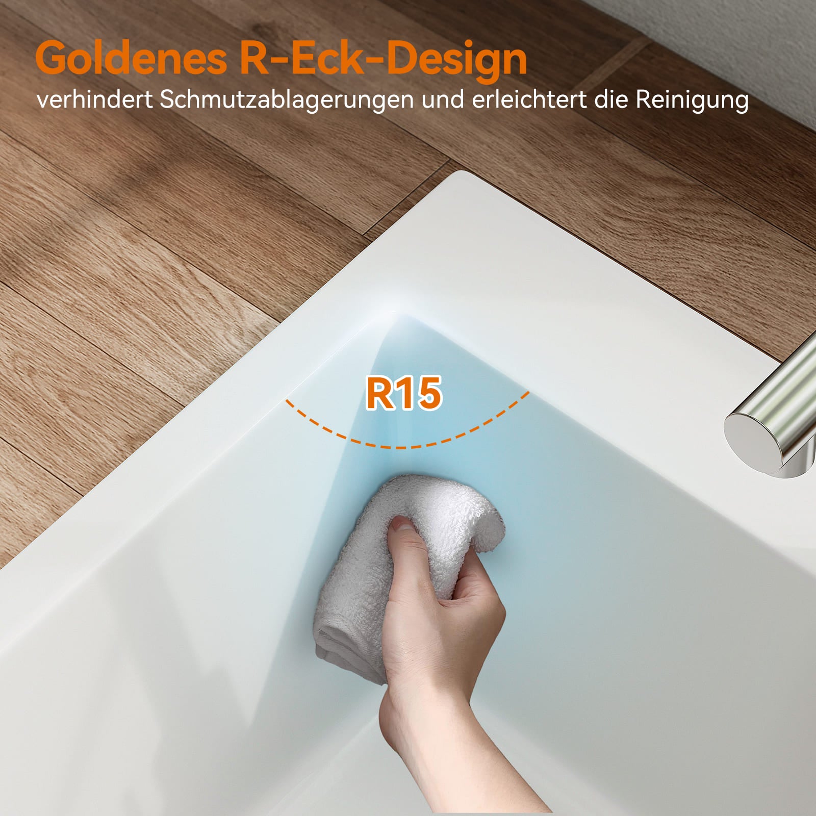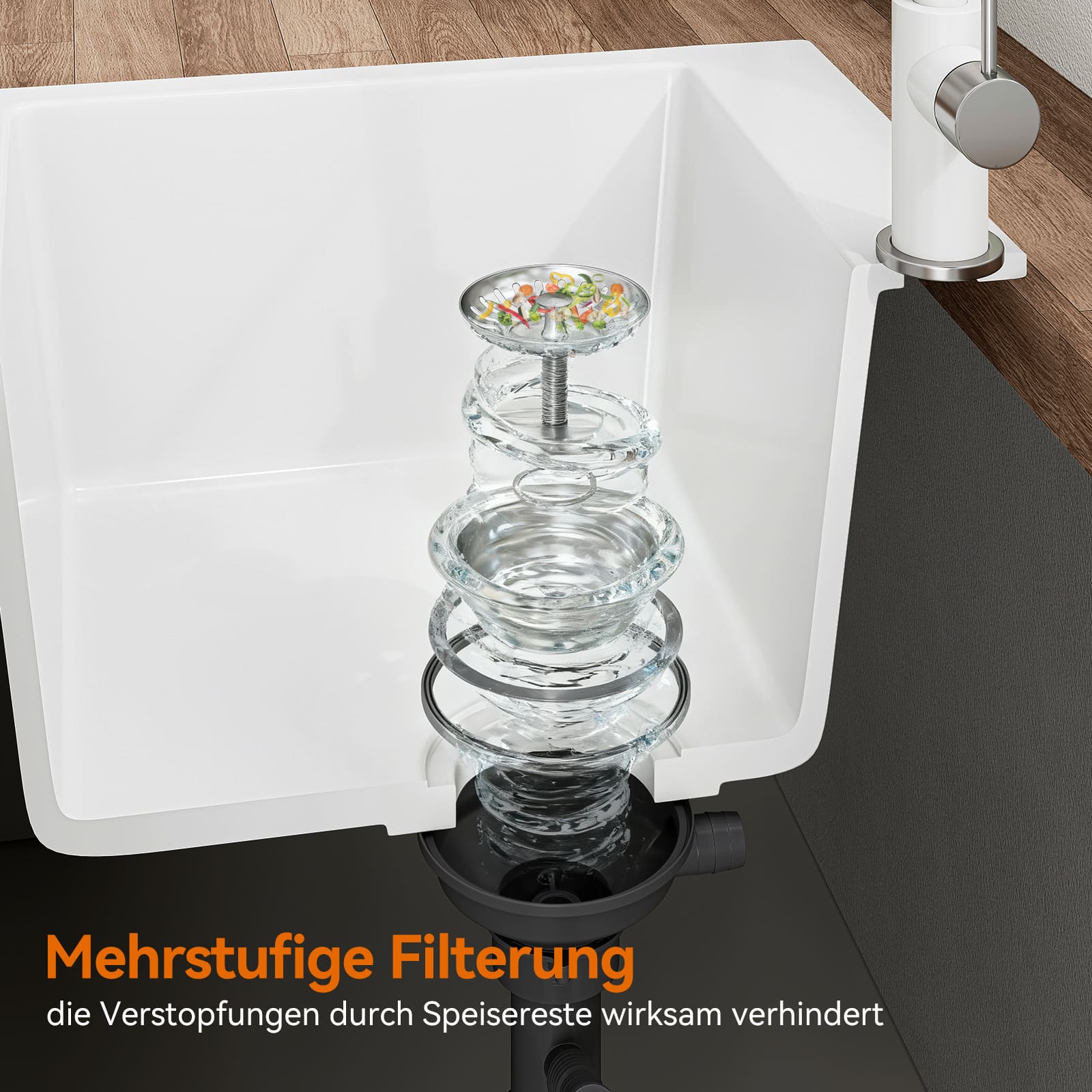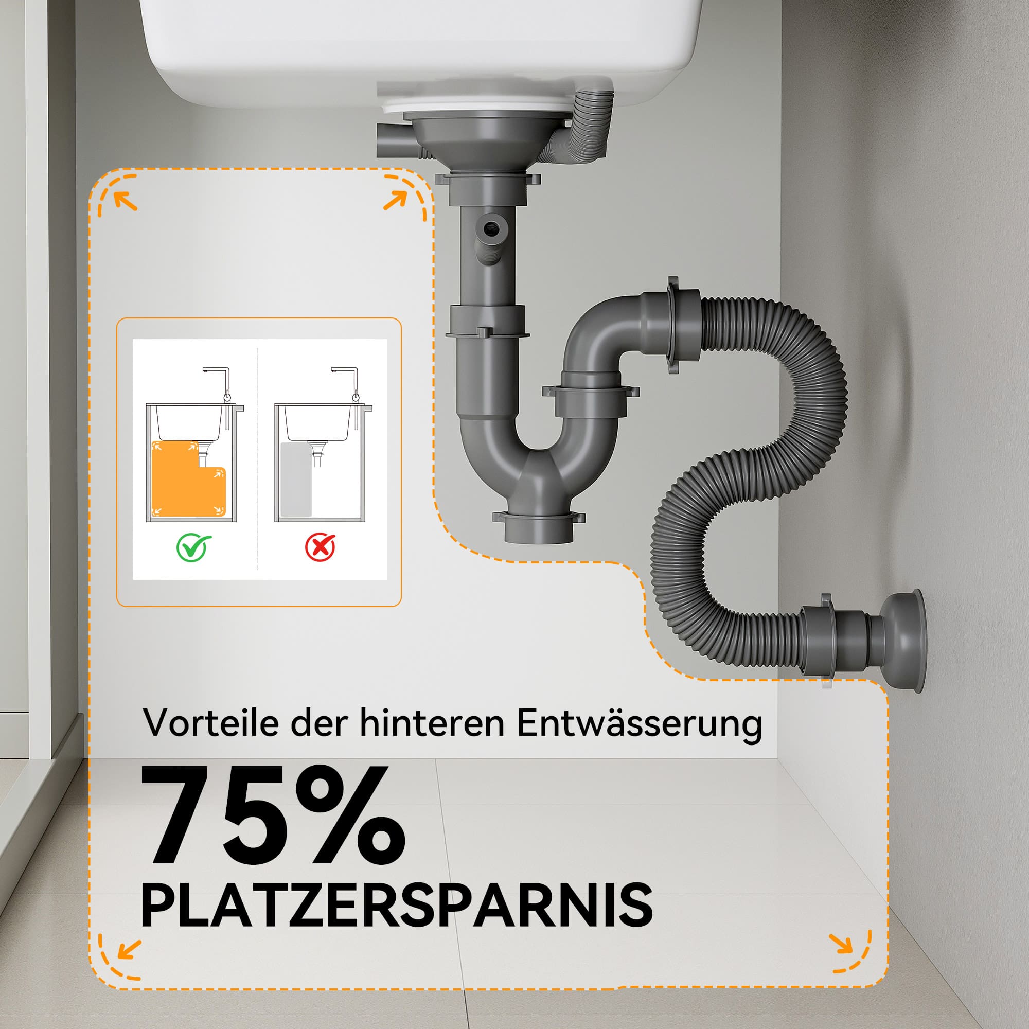 - Perfekte Hygiene & Pflegeleicht: Hitze-, flecken- und säurebeständig, geruchsstopfend, bakterienresistent. U-förmiger Siphon optimiert Platz und verhindert Gerüche.