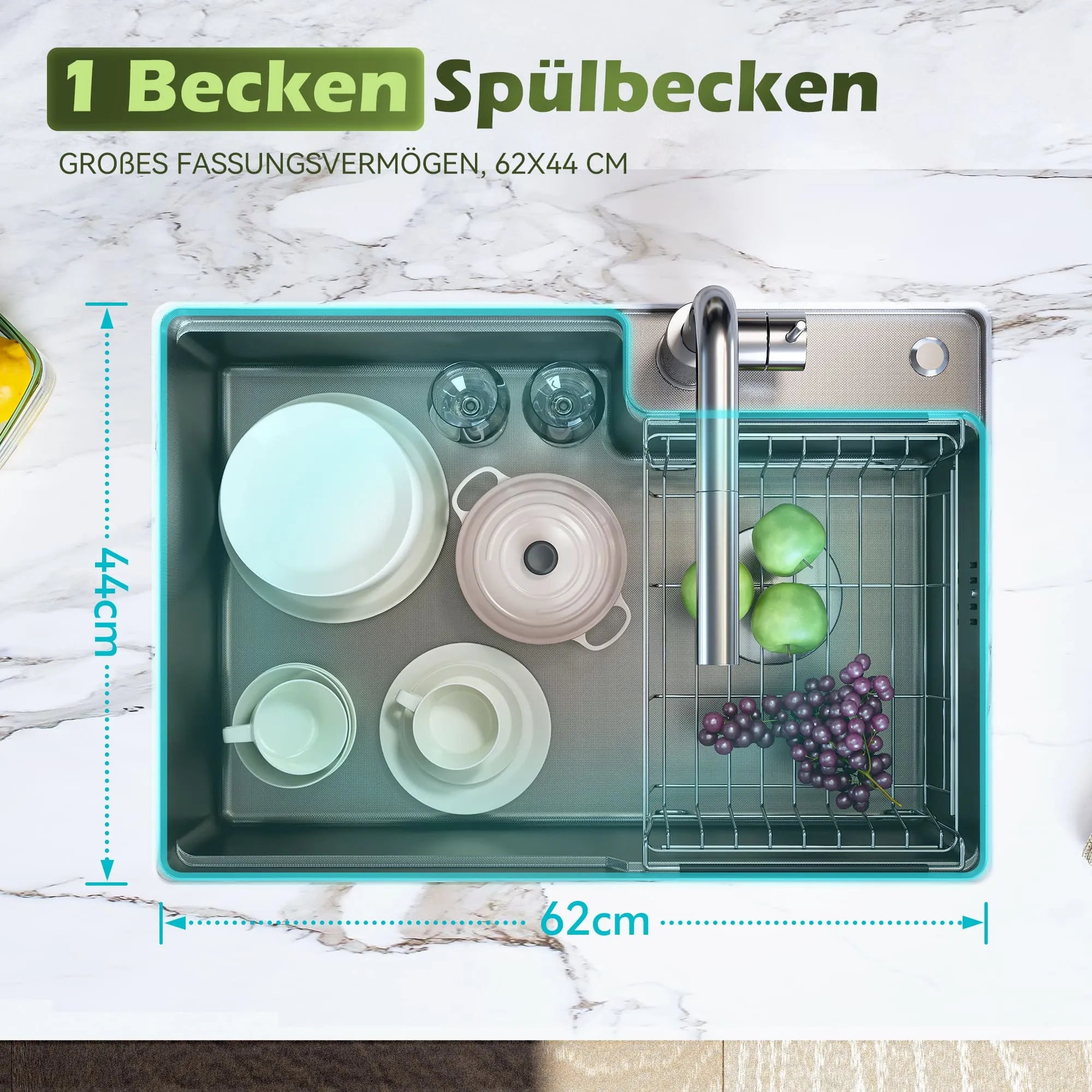 Mit Maßen von 62×44×20 cm und einer Beckentiefe von 19 cm bietet die Spüle viel Platz zum Spülen und Einweichen von großen Pfannen, Töpfen und Backgeschirr. - Hochwertiger 304-Edelstahl: