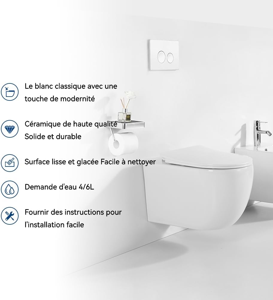 Die antifouling Glasur verhindert Schmutz- und Bakterienablagerungen, während das spülrandlose Design eine einfache Reinigung ermöglicht.