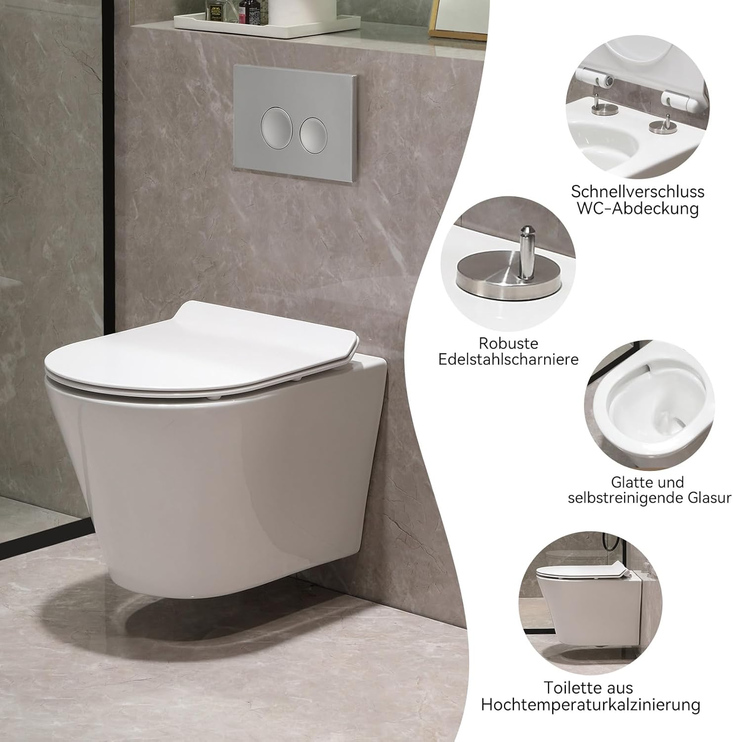 HOROW UG08R Wand-WC aus Keramik mit Soft-Close-Sitz & Nano-Beschichtung