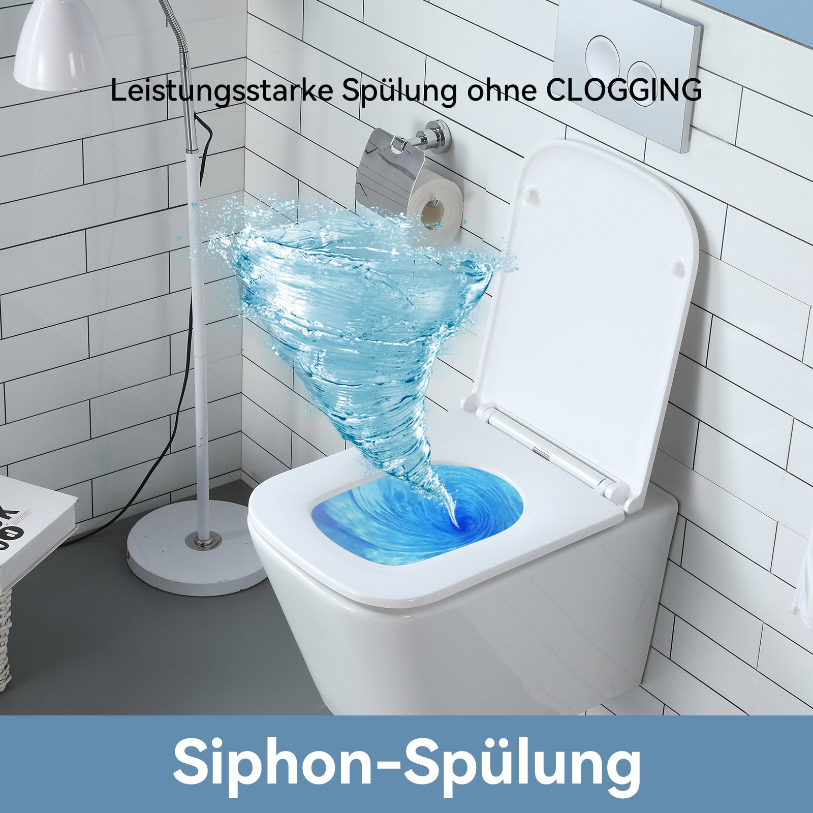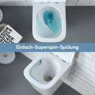 Die vollständig glasierte Innenfläche der Abwasserleitung sorgt für einen schnellen, sauberen Abfluss, reduziert Ablagerungen und verhindert die Entstehung unangenehmer Gerüche. - Kraftvolle Einloch-Superspin-Spülung: