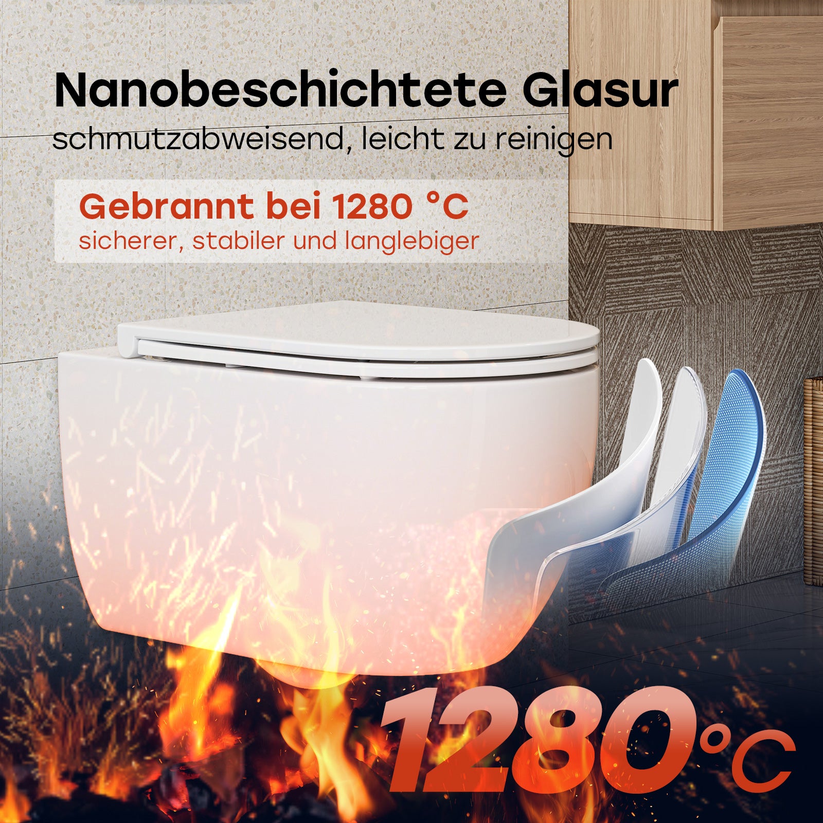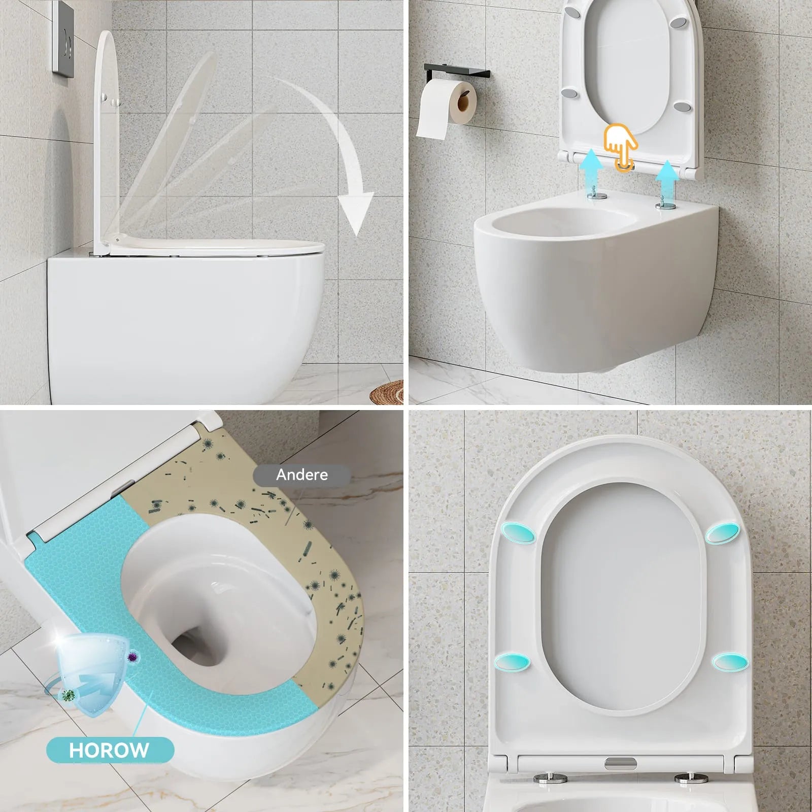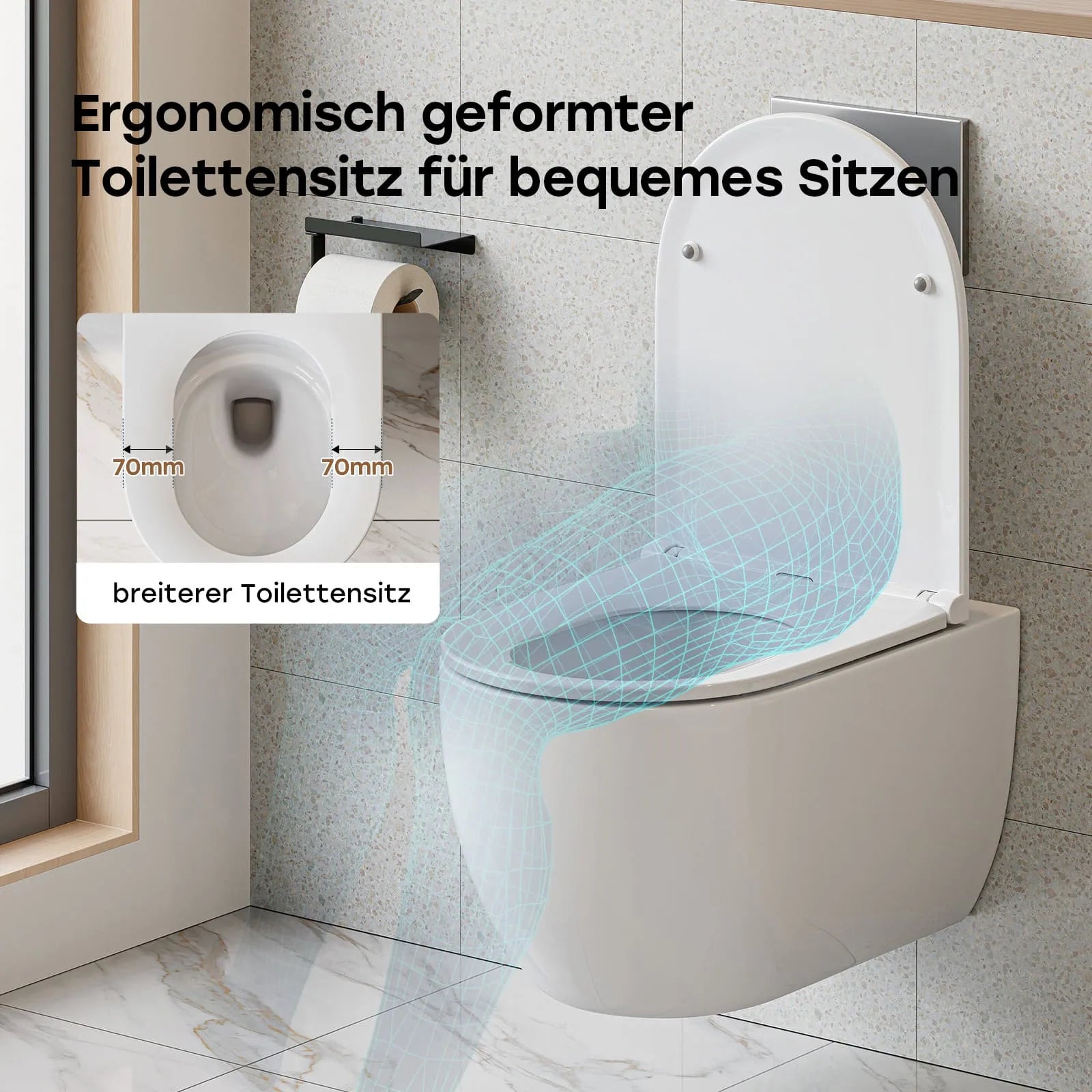 - Soft-Close Toilettendeckel: Sanftes Schließen, geräuscharm, ergonomisch für maximalen Sitzkomfort. Stoßfestes UF-Material, leicht zu reinigen.