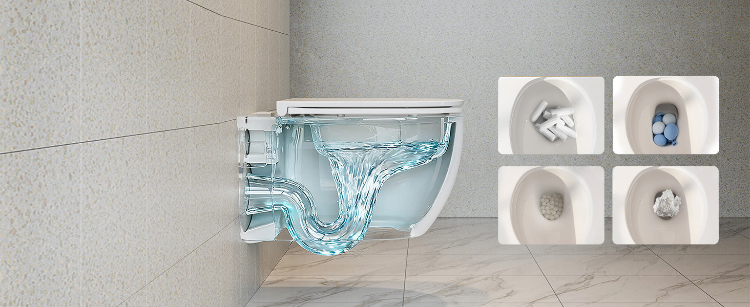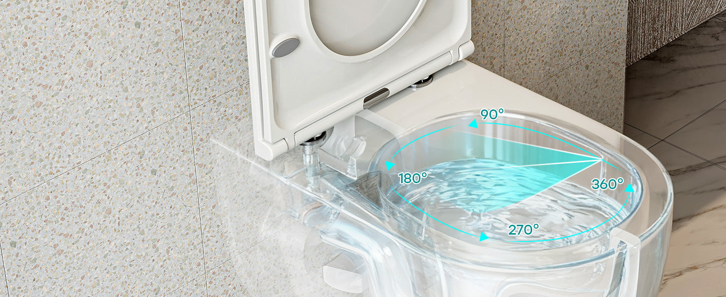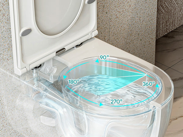 Die innovative 360°-Wirbelspülung reinigt das gesamte Becken kraftvoll und gleichmäßig. Ablagerungen und Schmutz werden vollständig entfernt, sodass die Toilette nach jedem Spülvorgang hygienisch sauber bleibt.