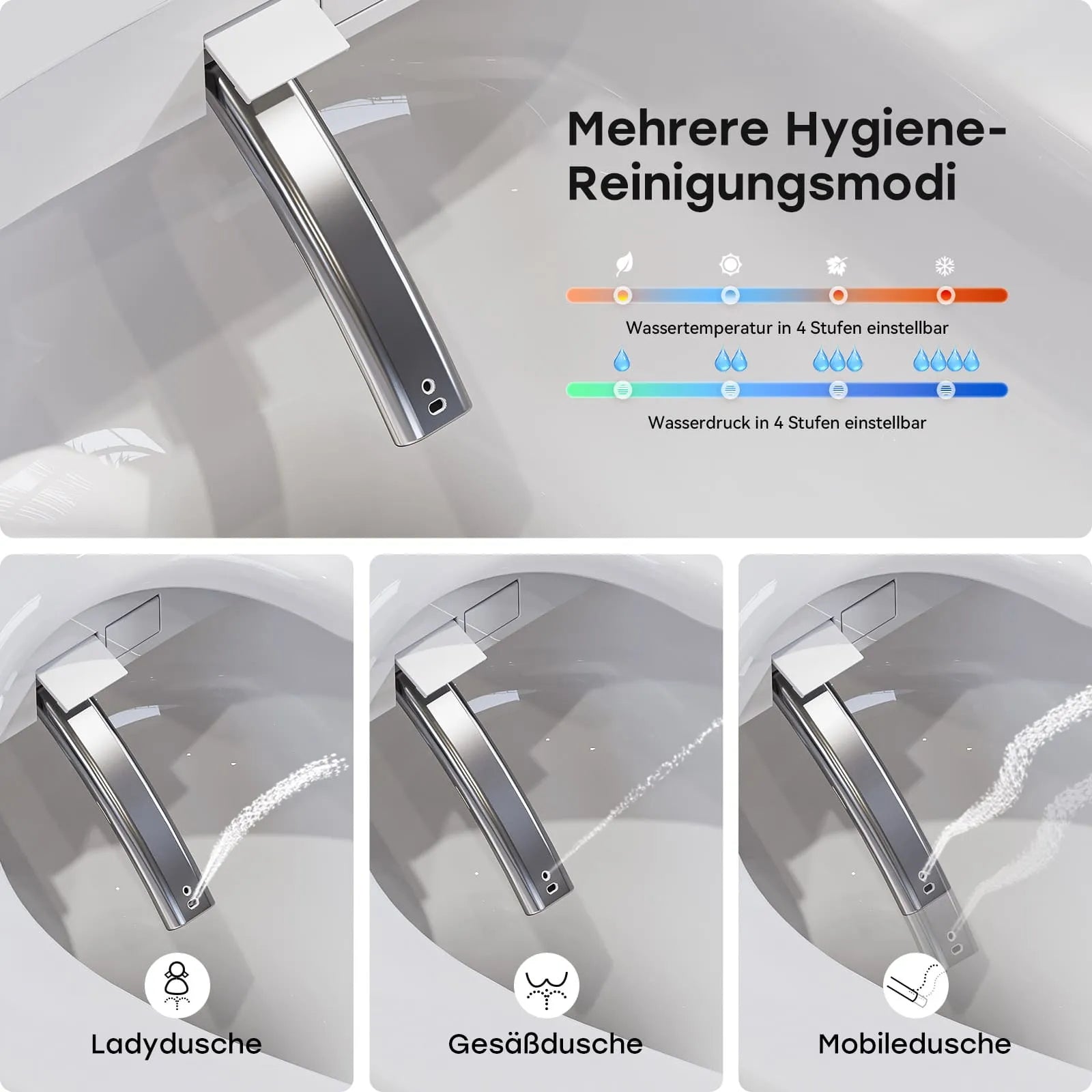 Professional cleansing experience : Gentle, precise rinsing specifically for women and universally suitable for all users. Adjustable nozzle technology for temperature, water pressure, and position – thorough cleaning without blind spots.