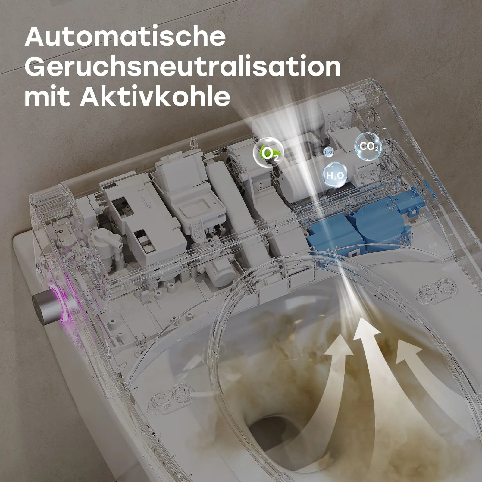The integrated deodorization system reduces unpleasant odors and ensures a fresh atmosphere in the bathroom.