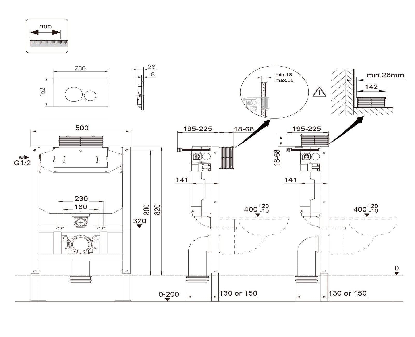 HOROW UWT04L Vorwandelement WC,Unterputz Spülkasten Toilette WC 82×50×14 cm