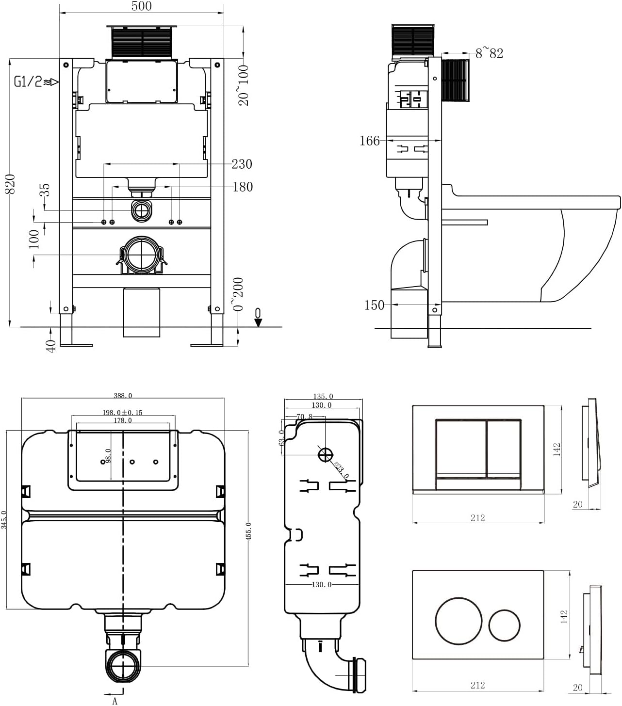 HOROW T02L WC-Vorwandelement mit Unterputz 50×12×82 cm