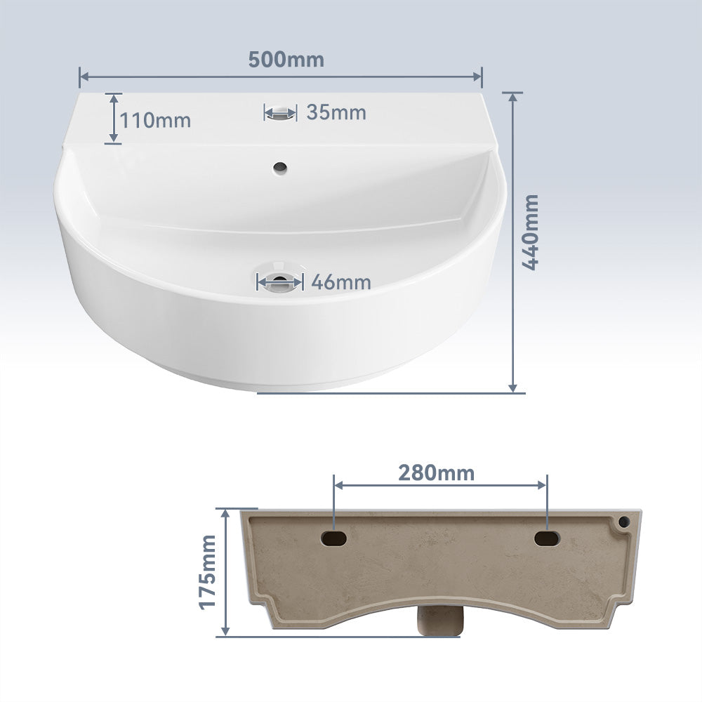 HOROW F08R-R5044W Keramik Waschbecken 50 cm Oval