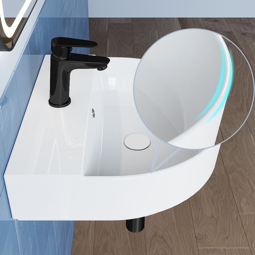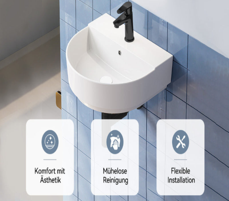 Das hängende Handwaschbecken überzeugt durch seine elegante Form und einfache Reinigung. - Effiziente Wasserführung: