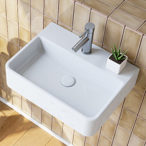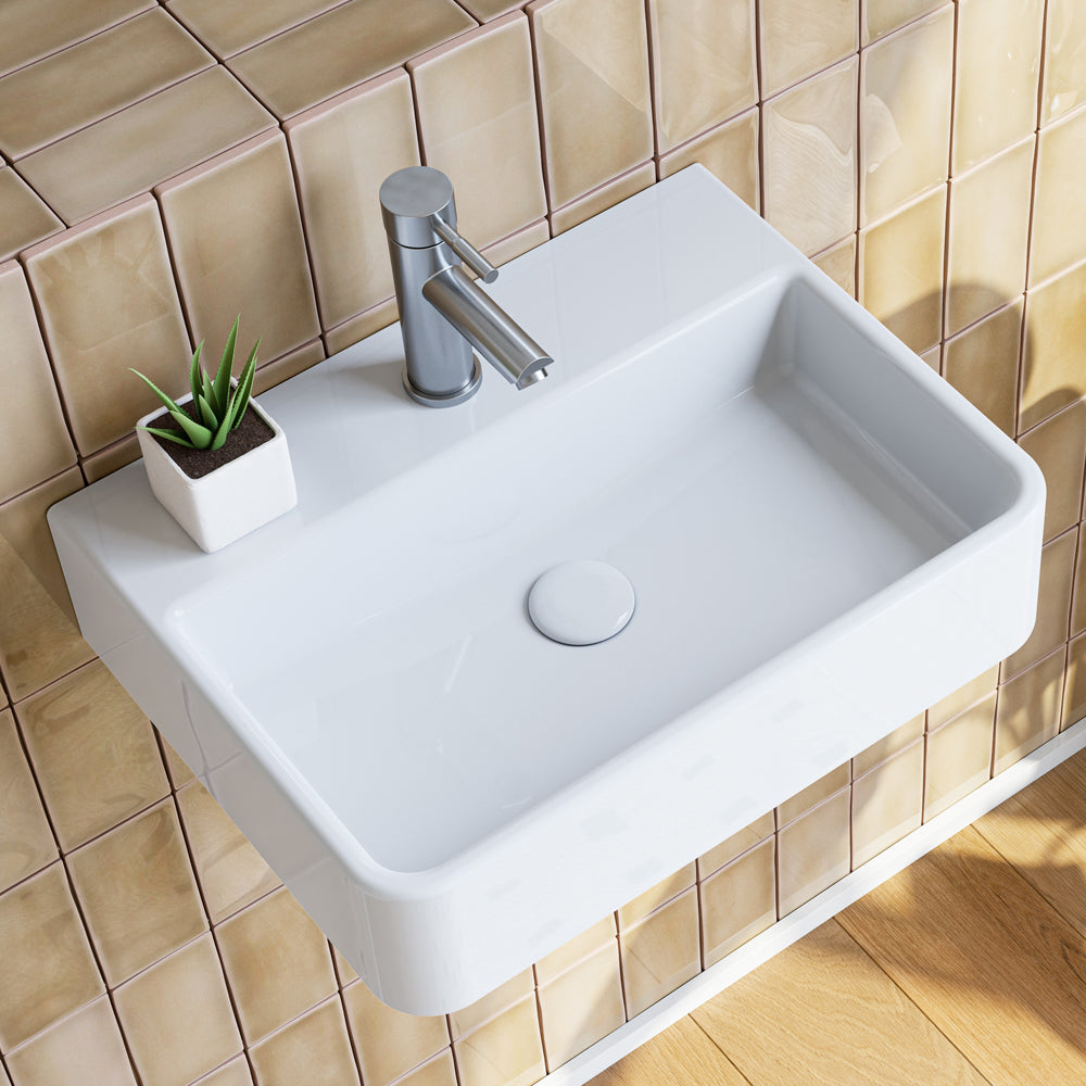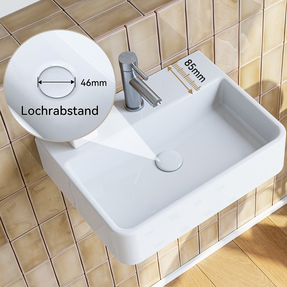 Zur Wandmontage oder als Aufsatzwaschtisch nutzbar. DIN-Hahnloch (Ø 35 mm) passend für alle gängigen Armaturen und Siphons. - Modern & Stilvoll: