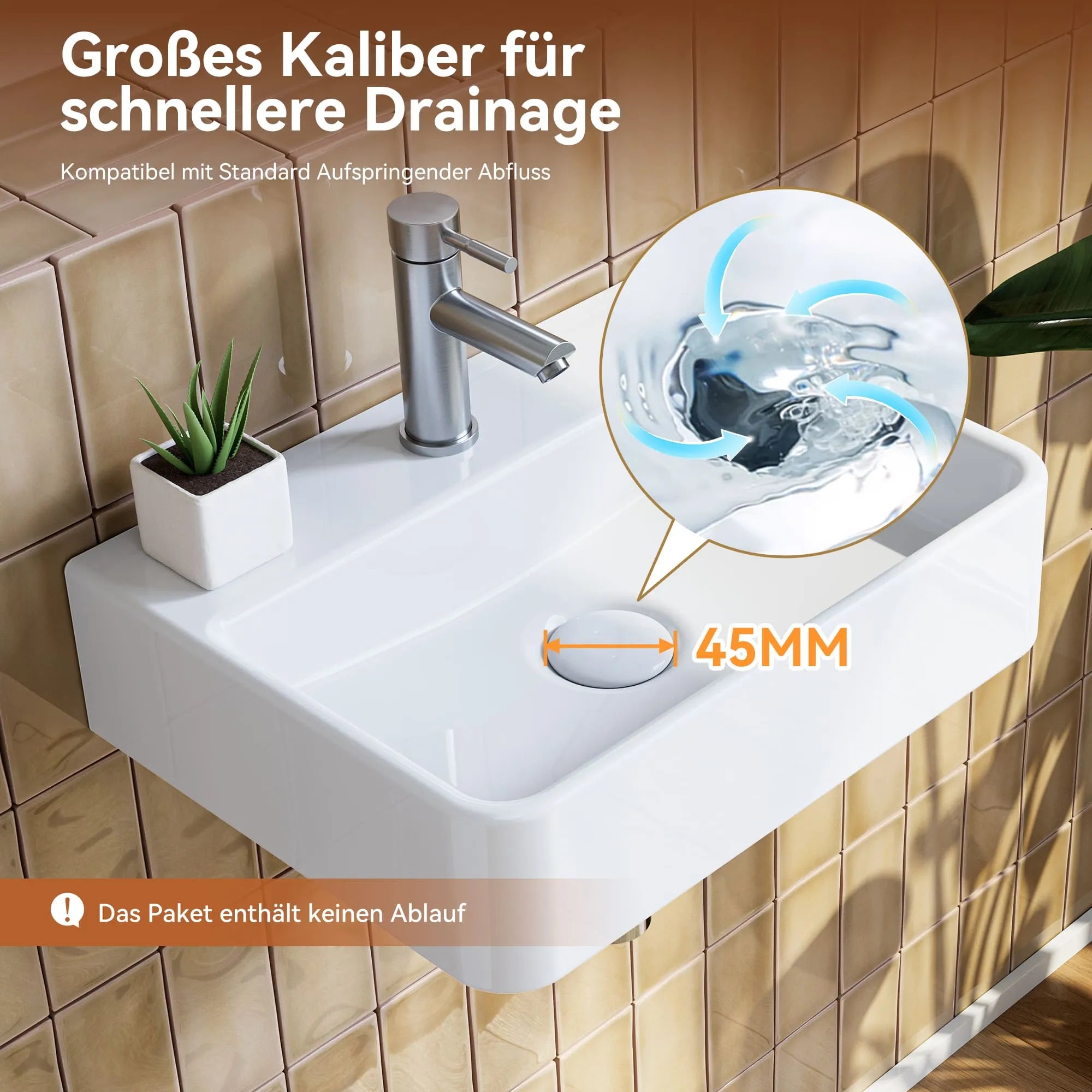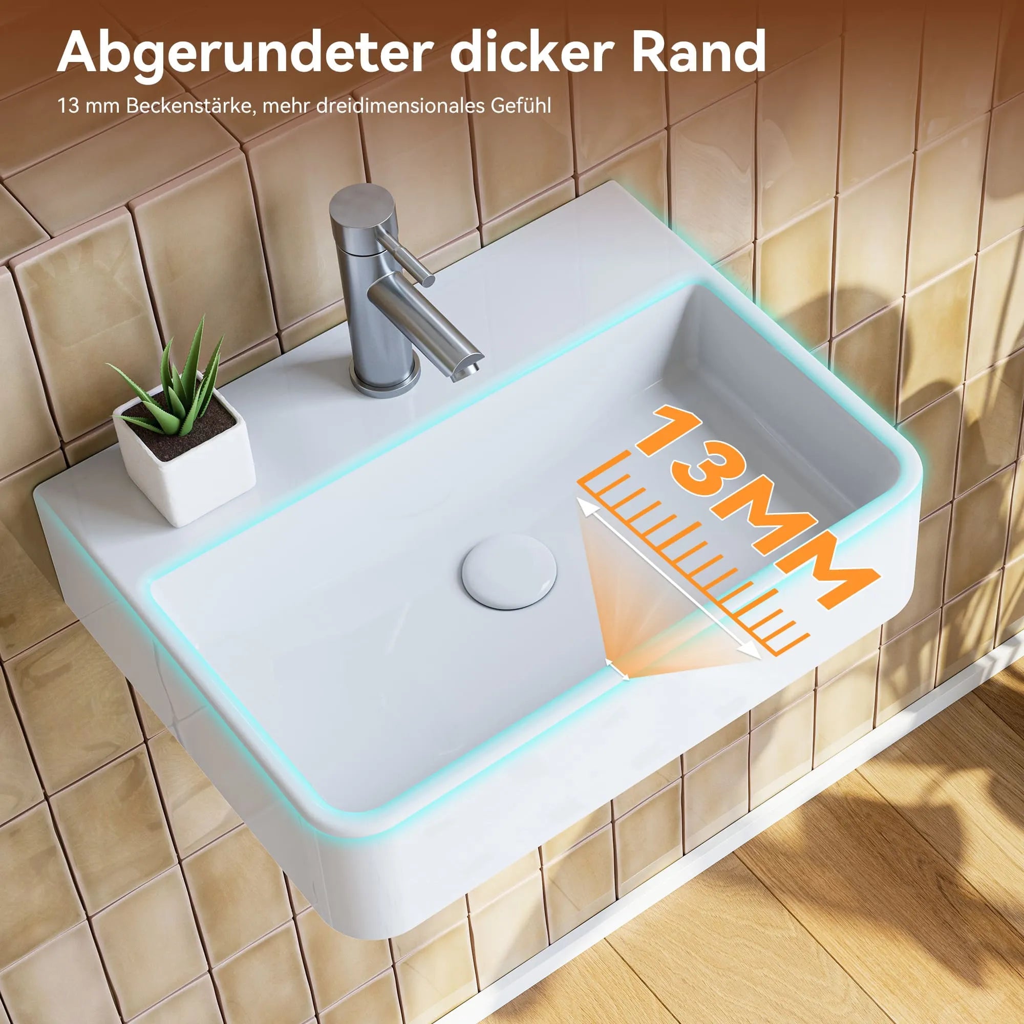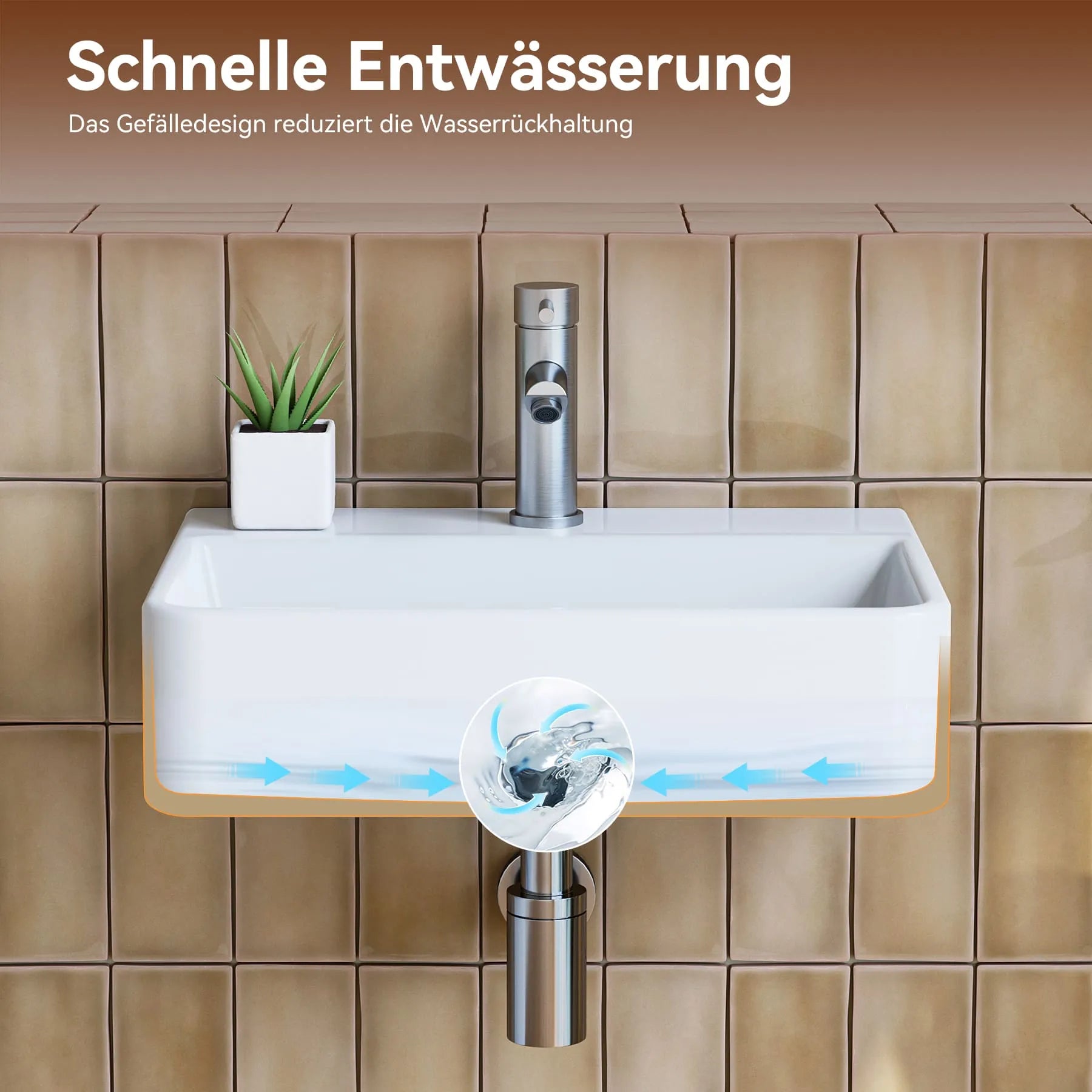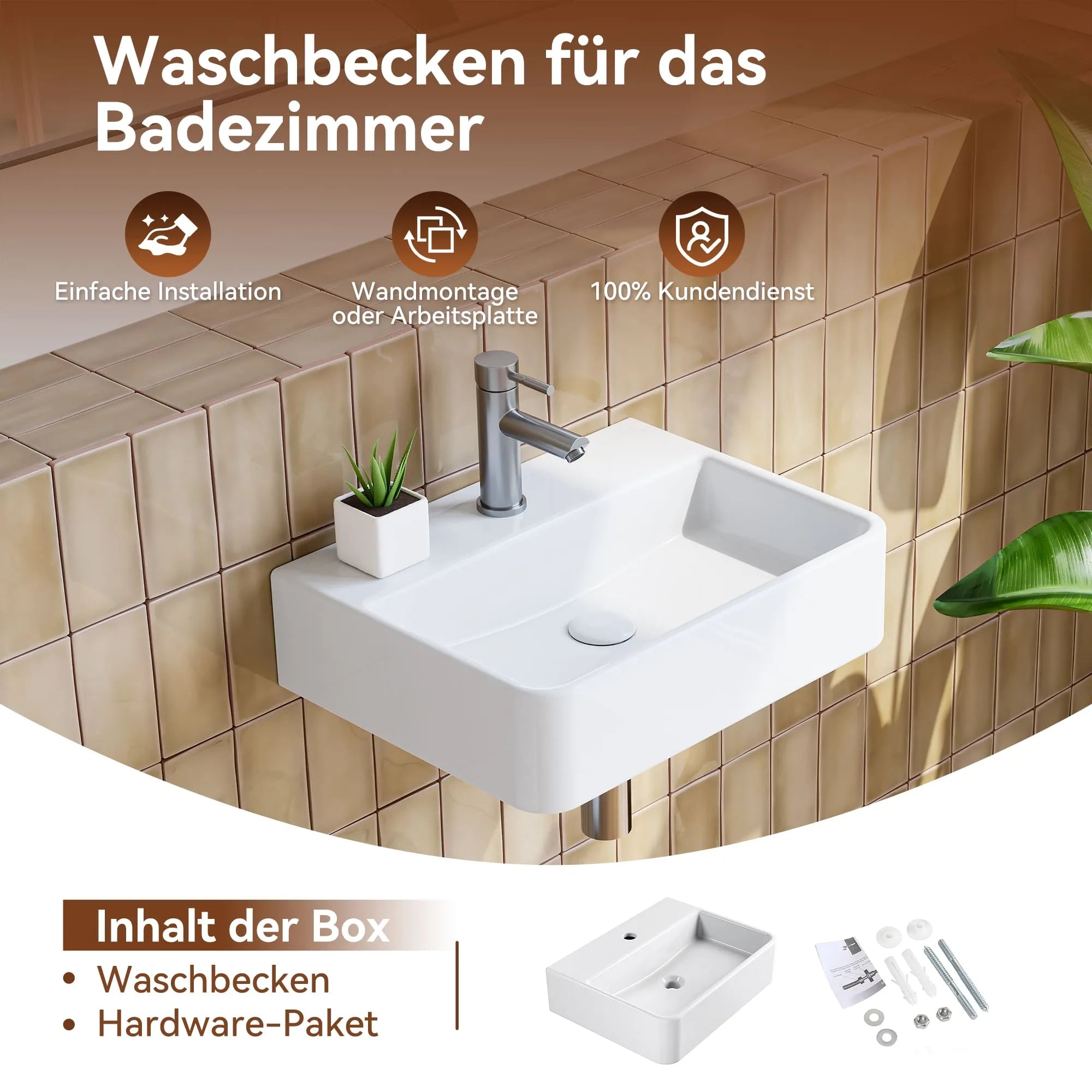 Mit 38×26×9 cm ideal als Mini-Waschbecken für Gäste-WCs, kleine Bäder, Tiny Houses usw. - Flexible Montageoptionen: